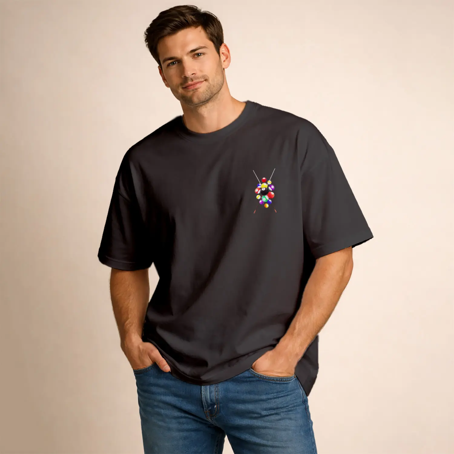 Bilardo Topları ve Istakası Baskılı Erkek Tişört