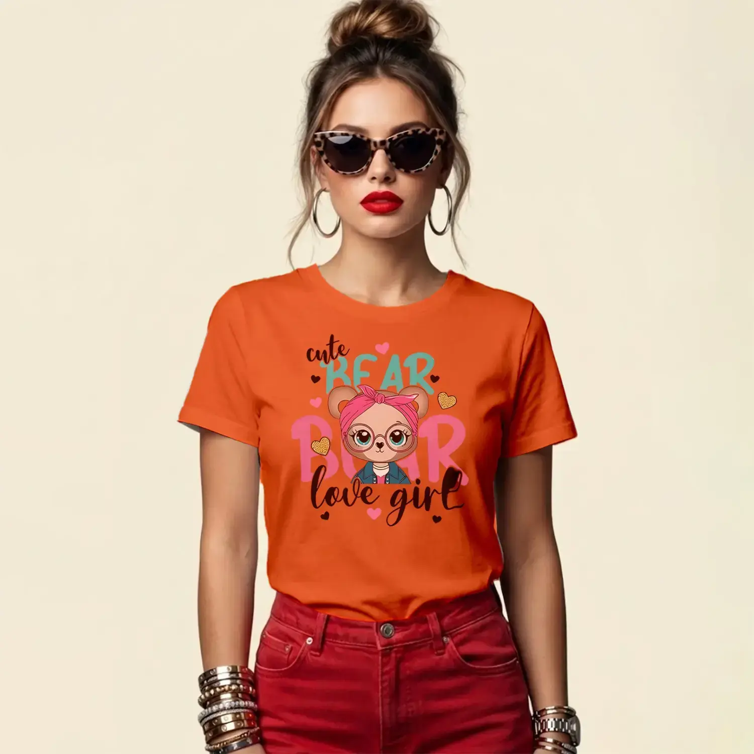 Cute Bear Love Girl Baskılı Kadın Tişörtü