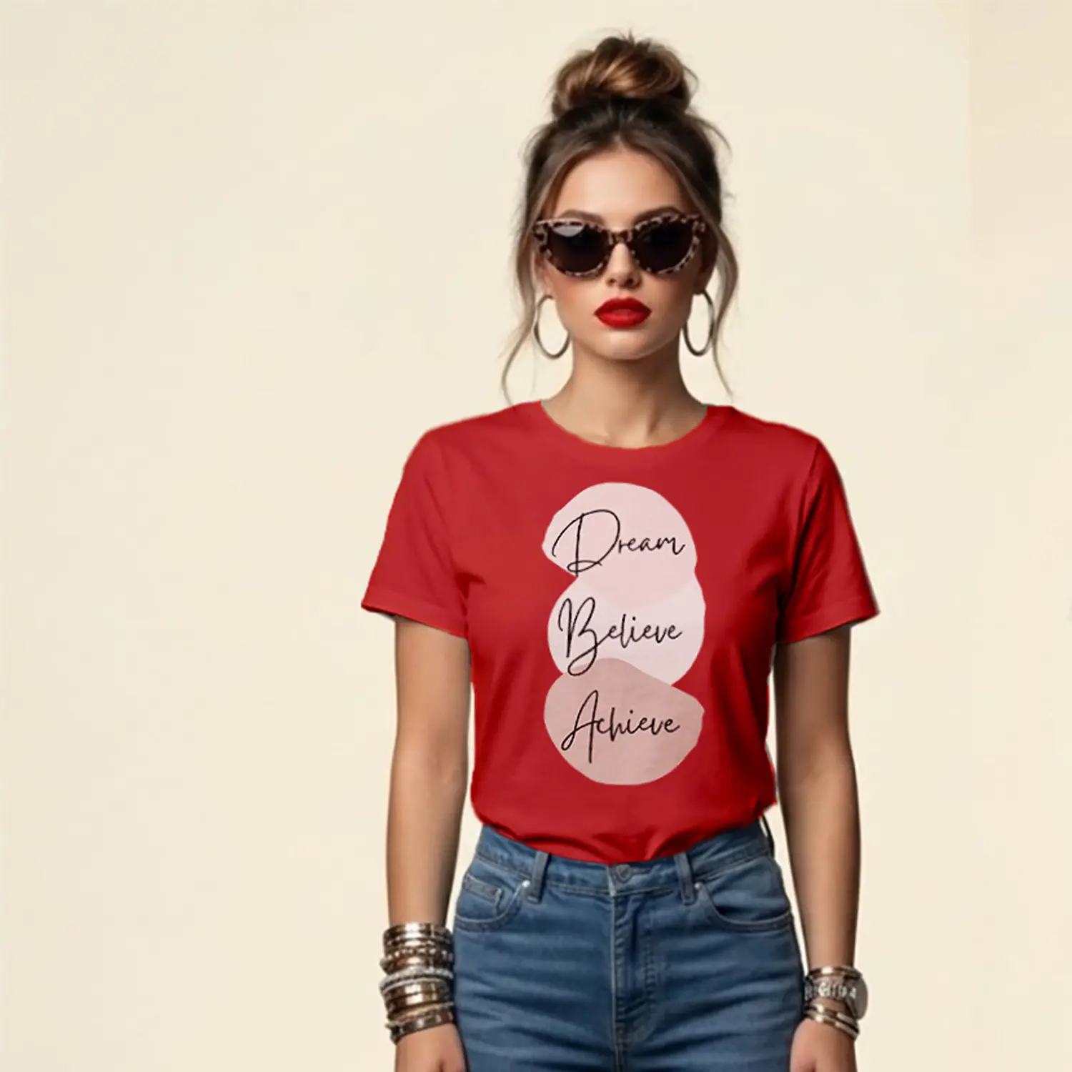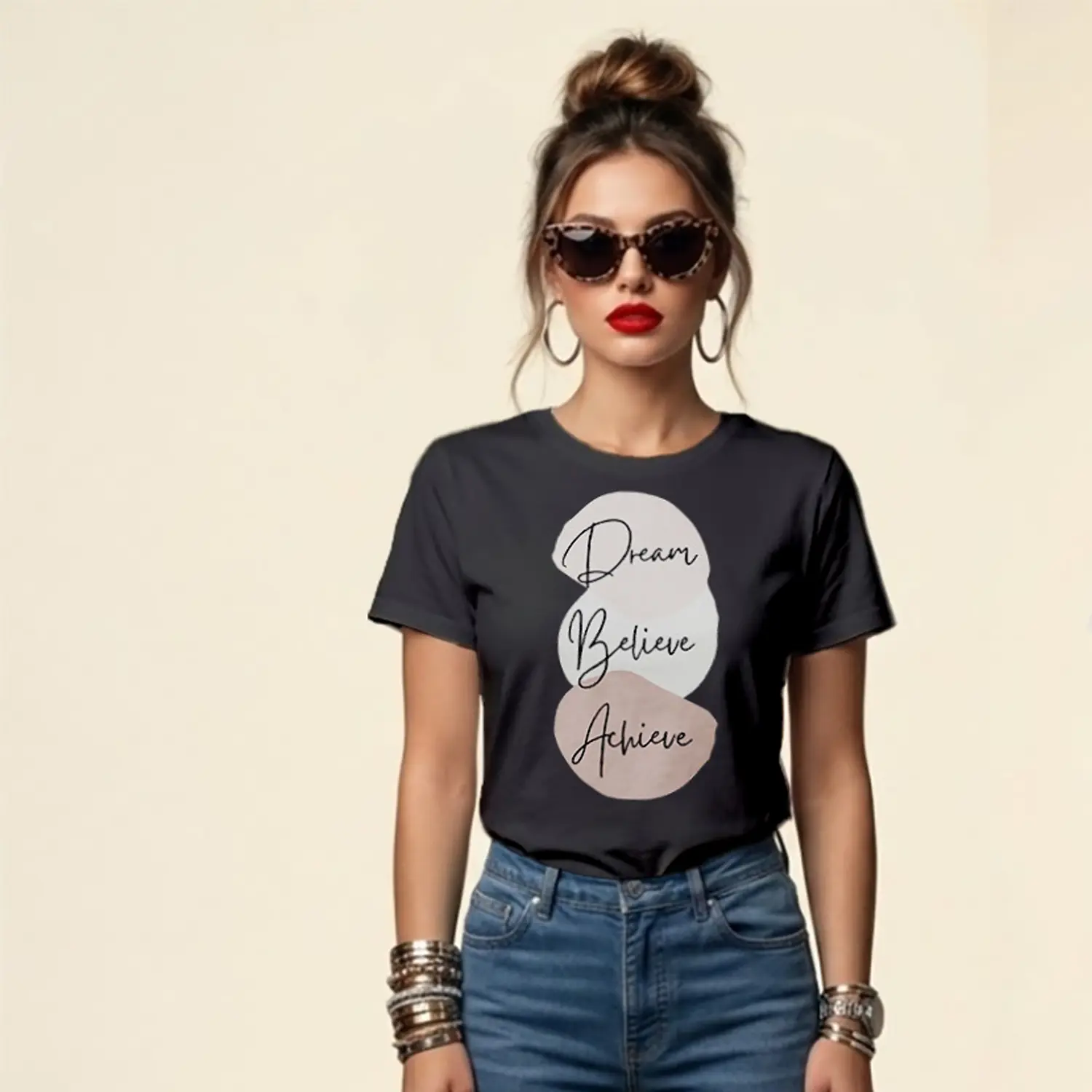 Dream Believe Achieve Yazılı Baskılı Kadın Tişört