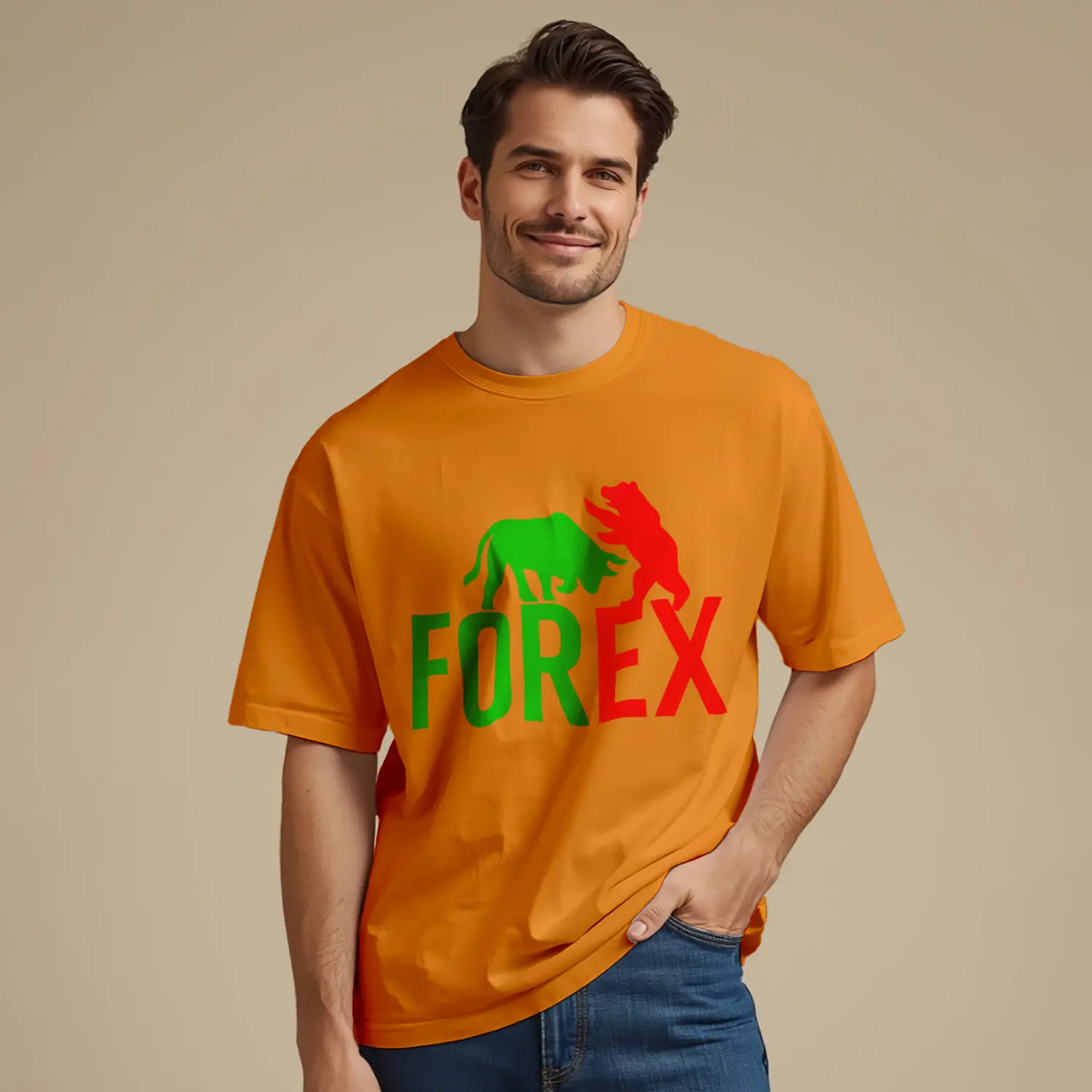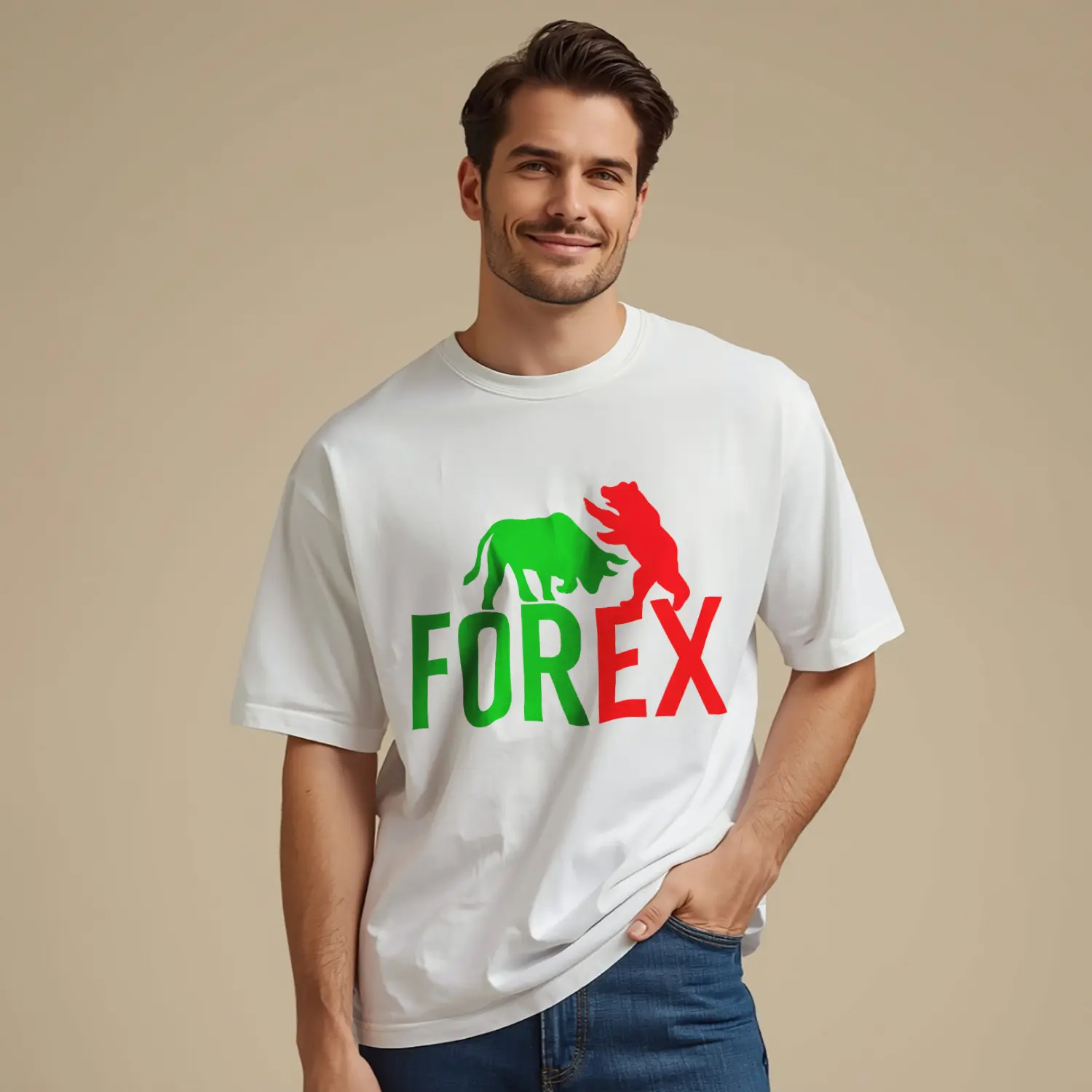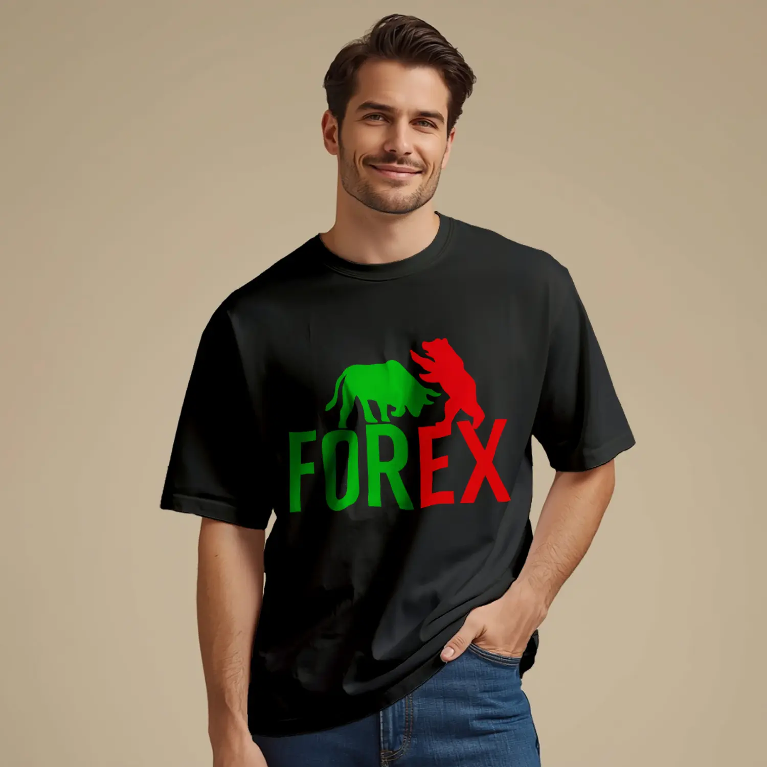Forex Boğa Ayı Temalı Baskılı Erkek Tişört