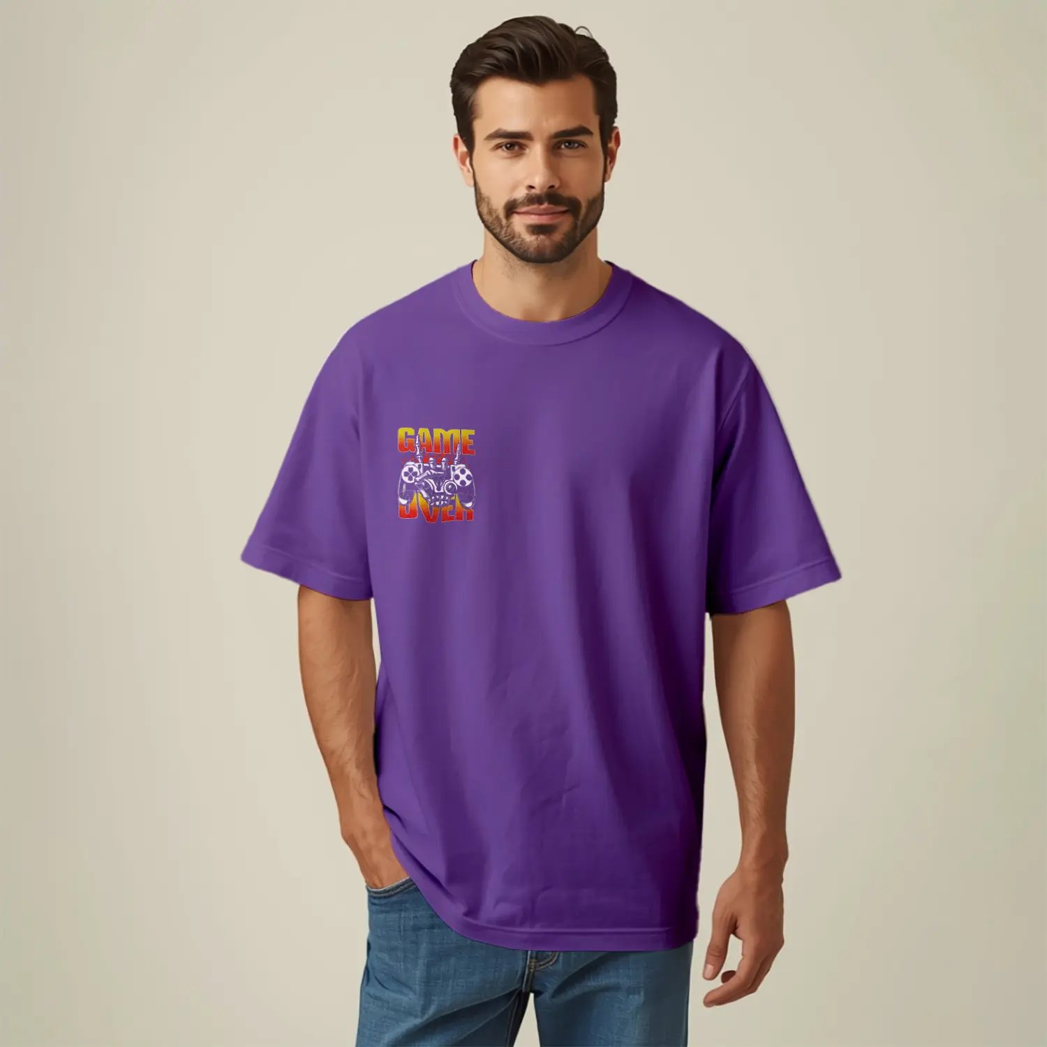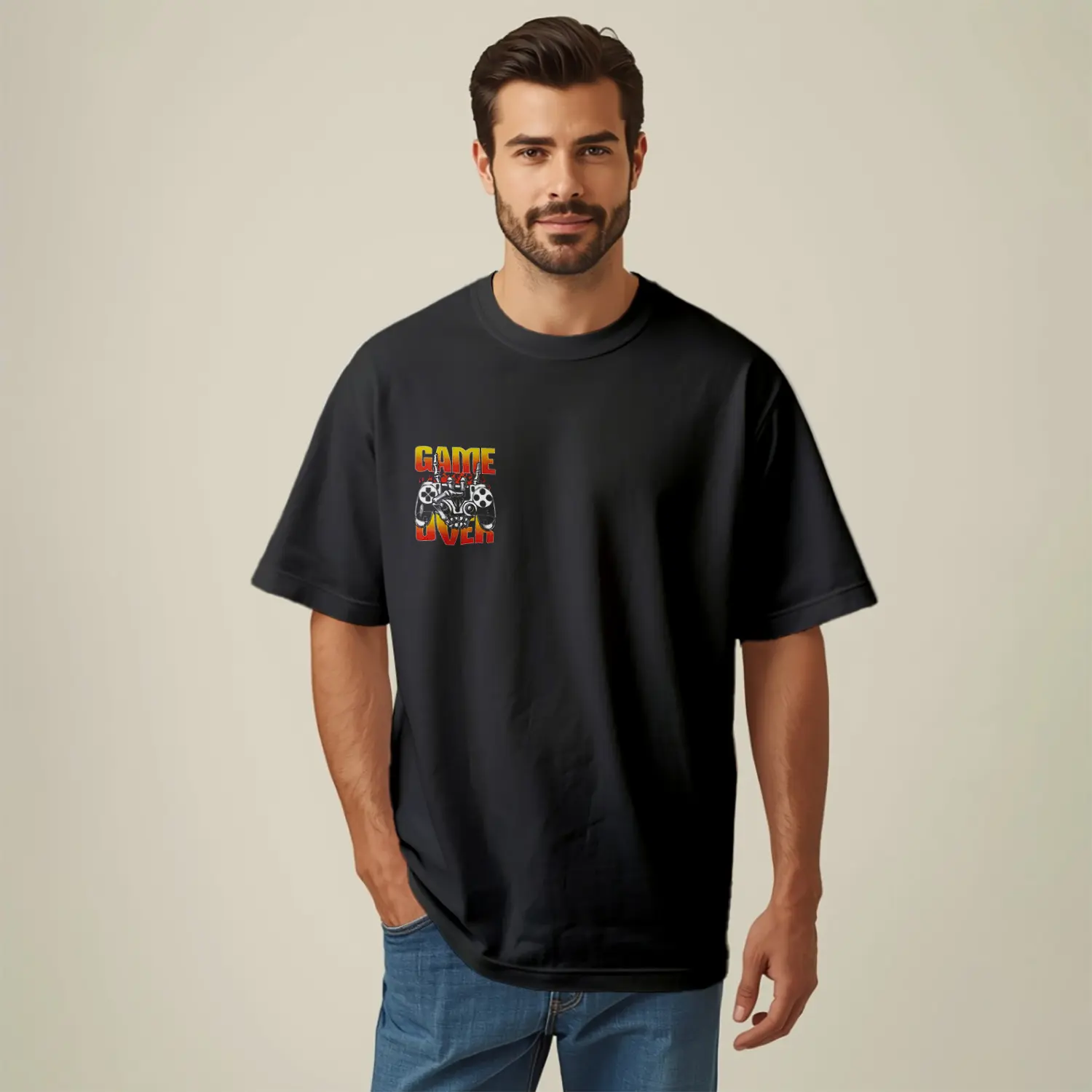 Game Over Tasarımlı Baskılı Erkek Tişört