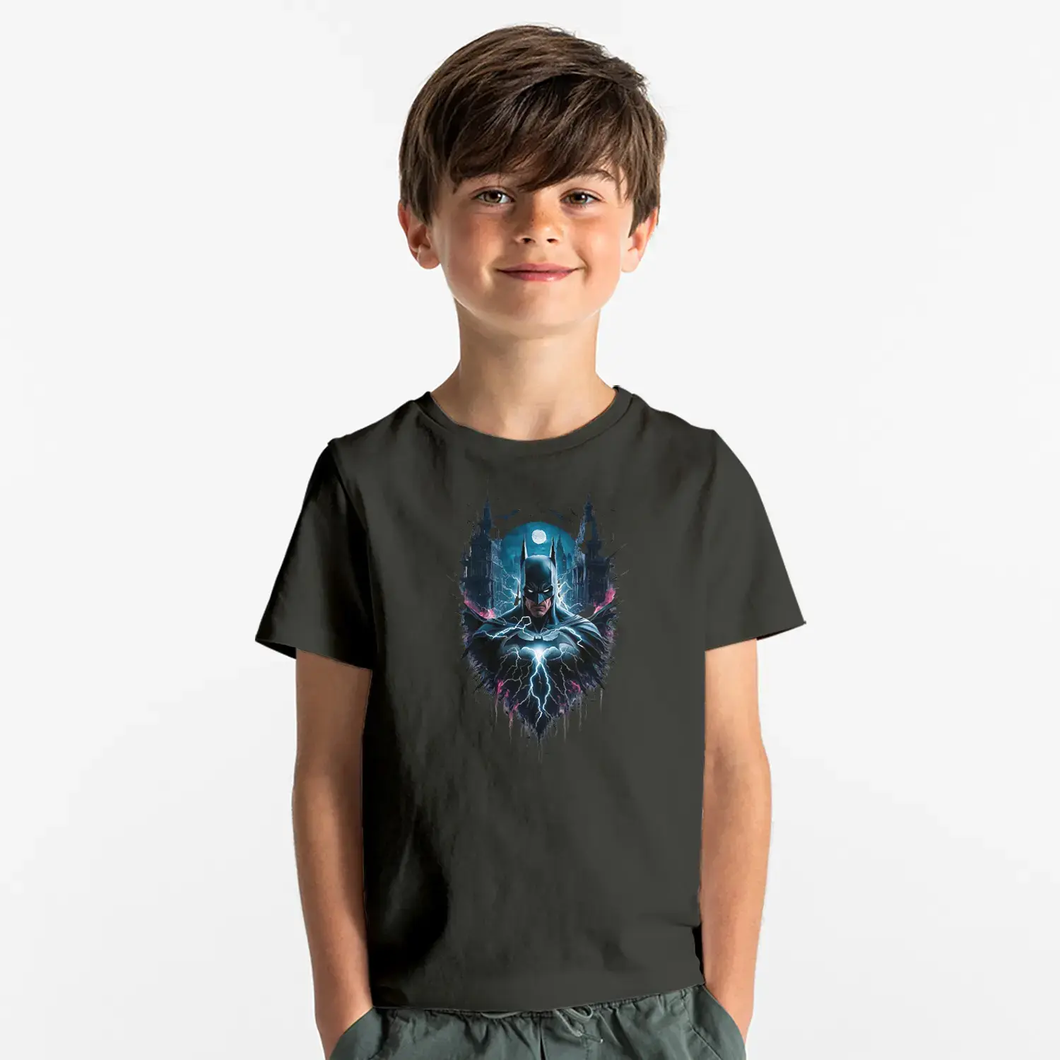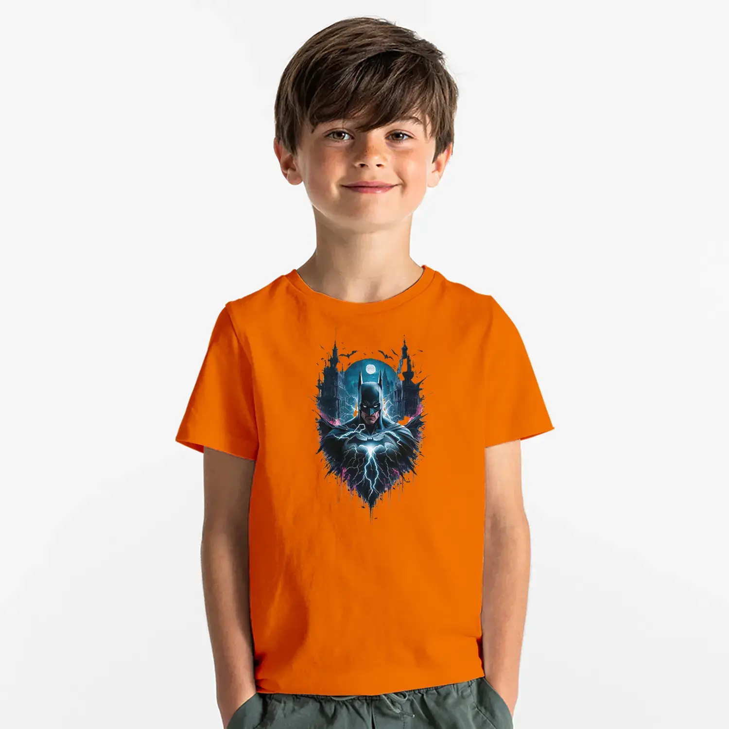 Gece Sehirli Maskeli Kahraman Baskılı Erkek Çocuk Tişörtü