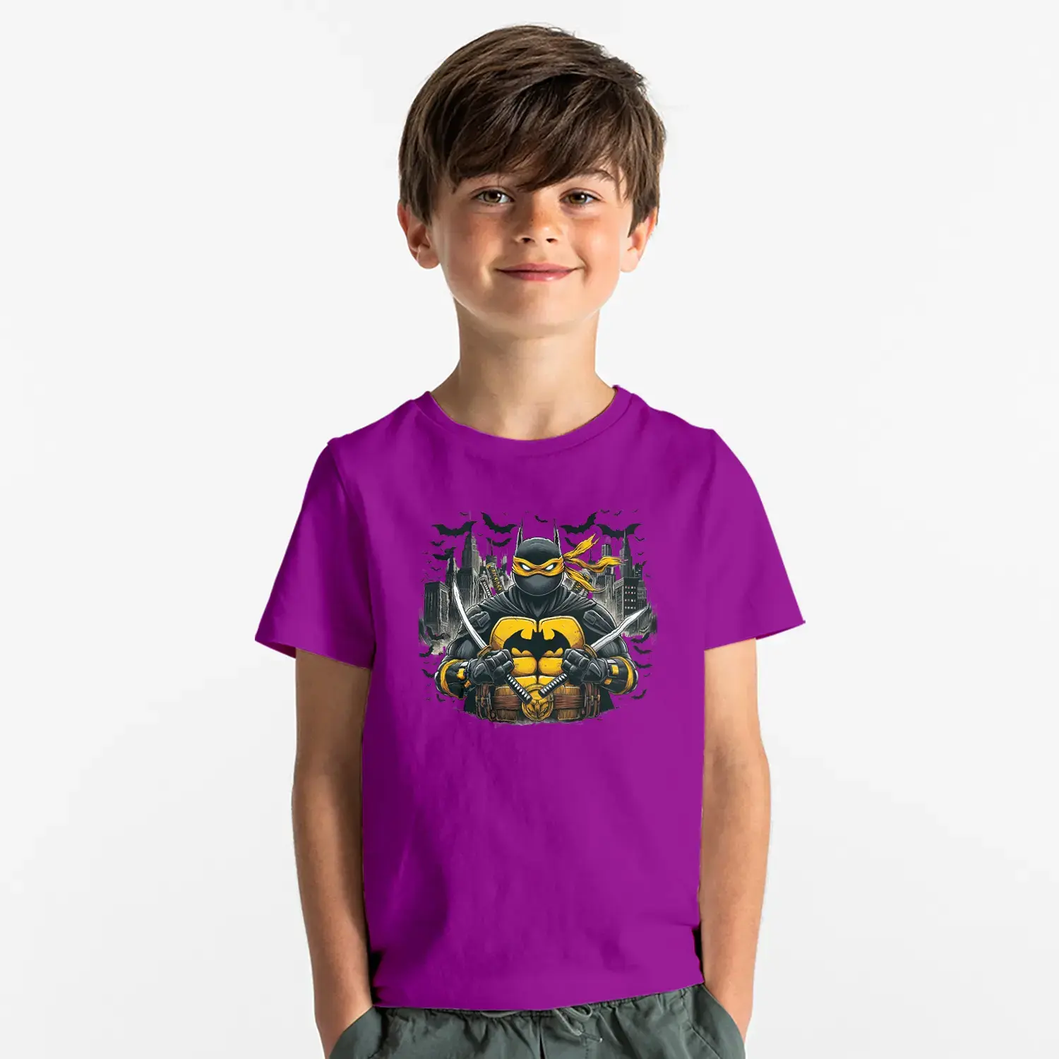 Golgeler Sehri Ninja Kahraman Baskılı Erkek Çocuk Tişörtü