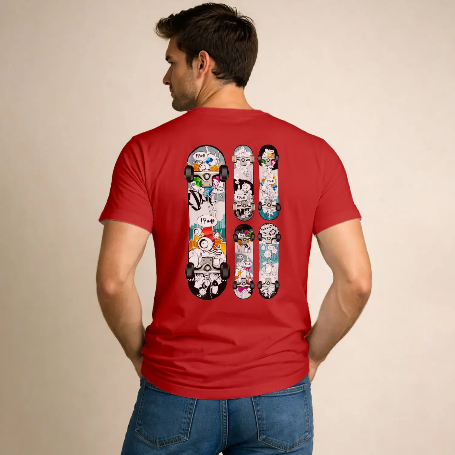 Grafiti Kaykaylı Kırmızı Baskılı Erkek Tişört