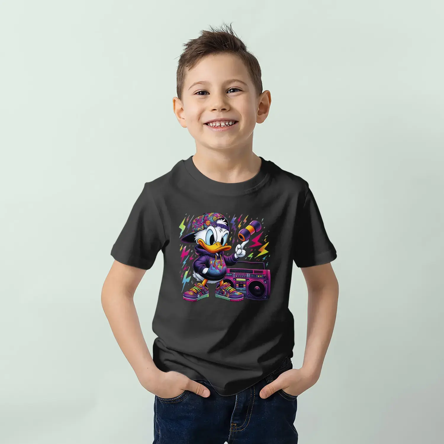 Grafiti Tarz Ordek Baskılı Erkek Çocuk Tişörtü
