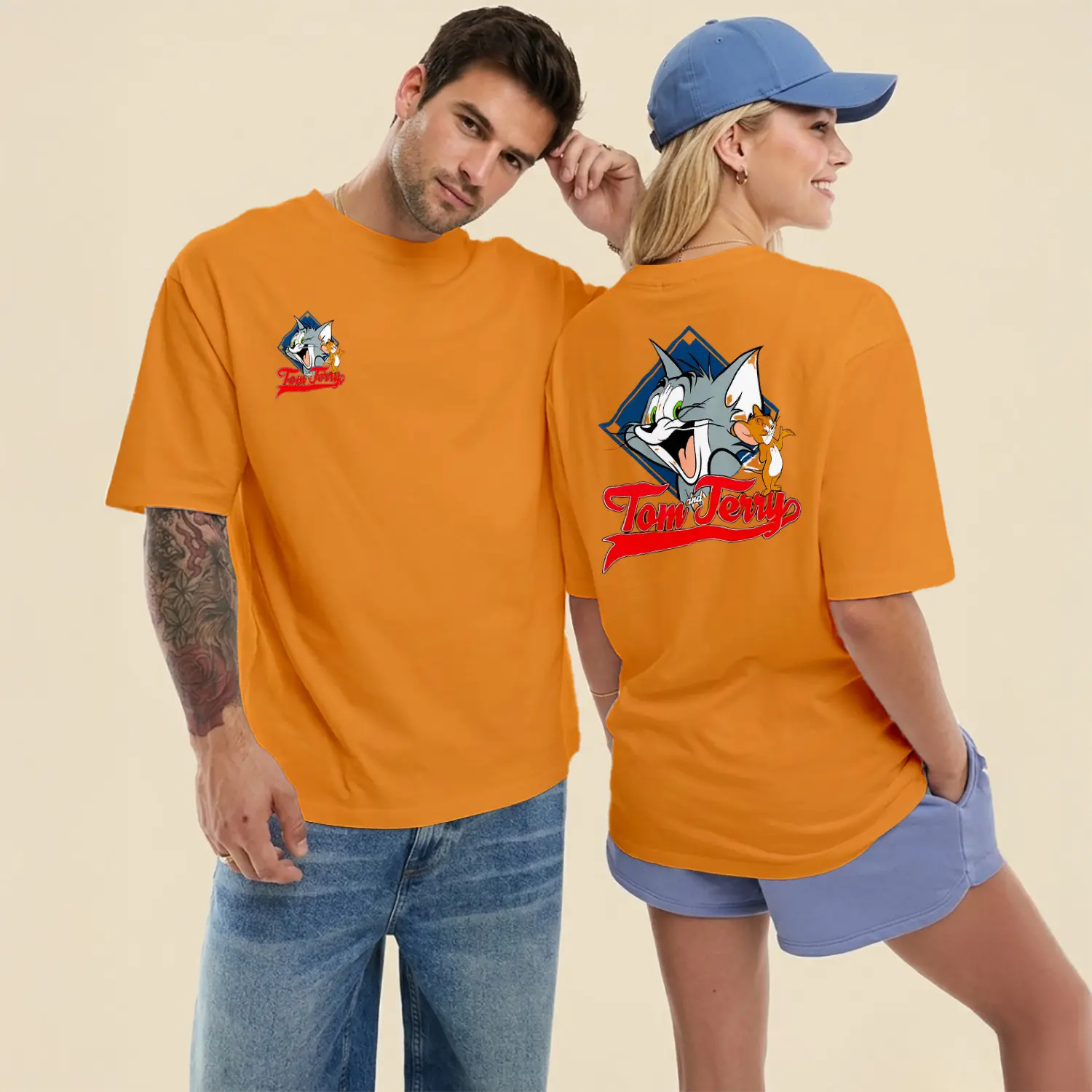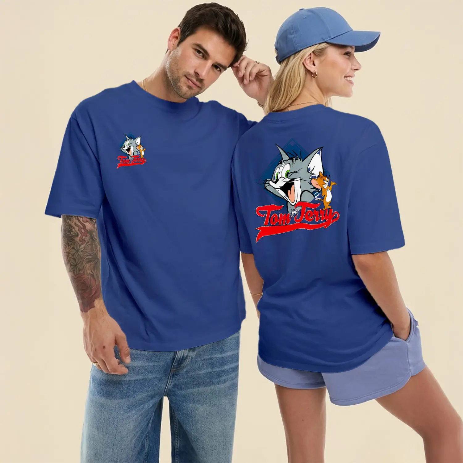 Gulen Kedi Ve Fare Karikatur Figürlü On Arka Baskılı Unisex Tişörtü