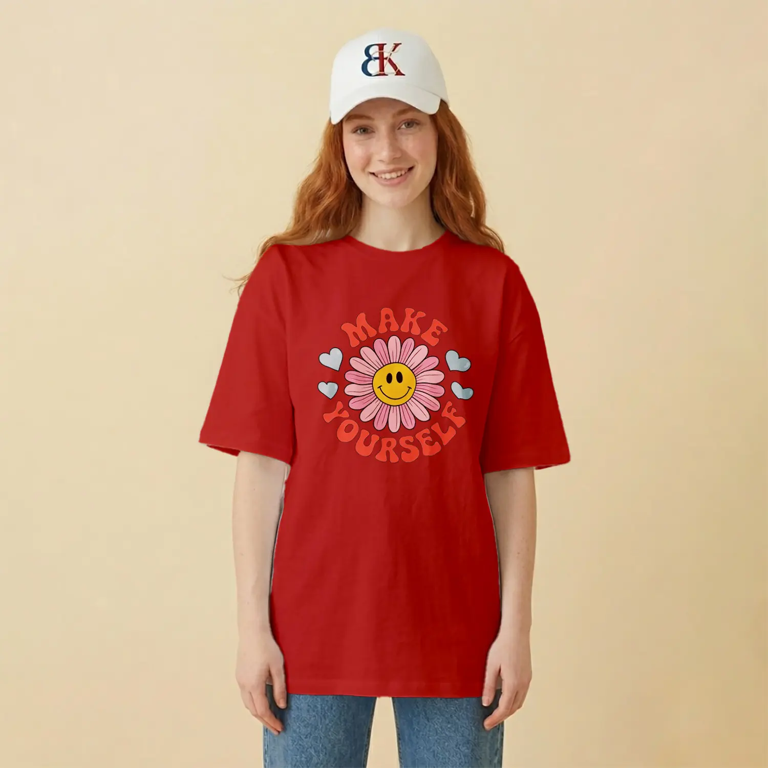 “Gülümseyen Papatya ve Kalpler Baskılı Kadın Tişört” için yorum yapan ilk kişi siz olun