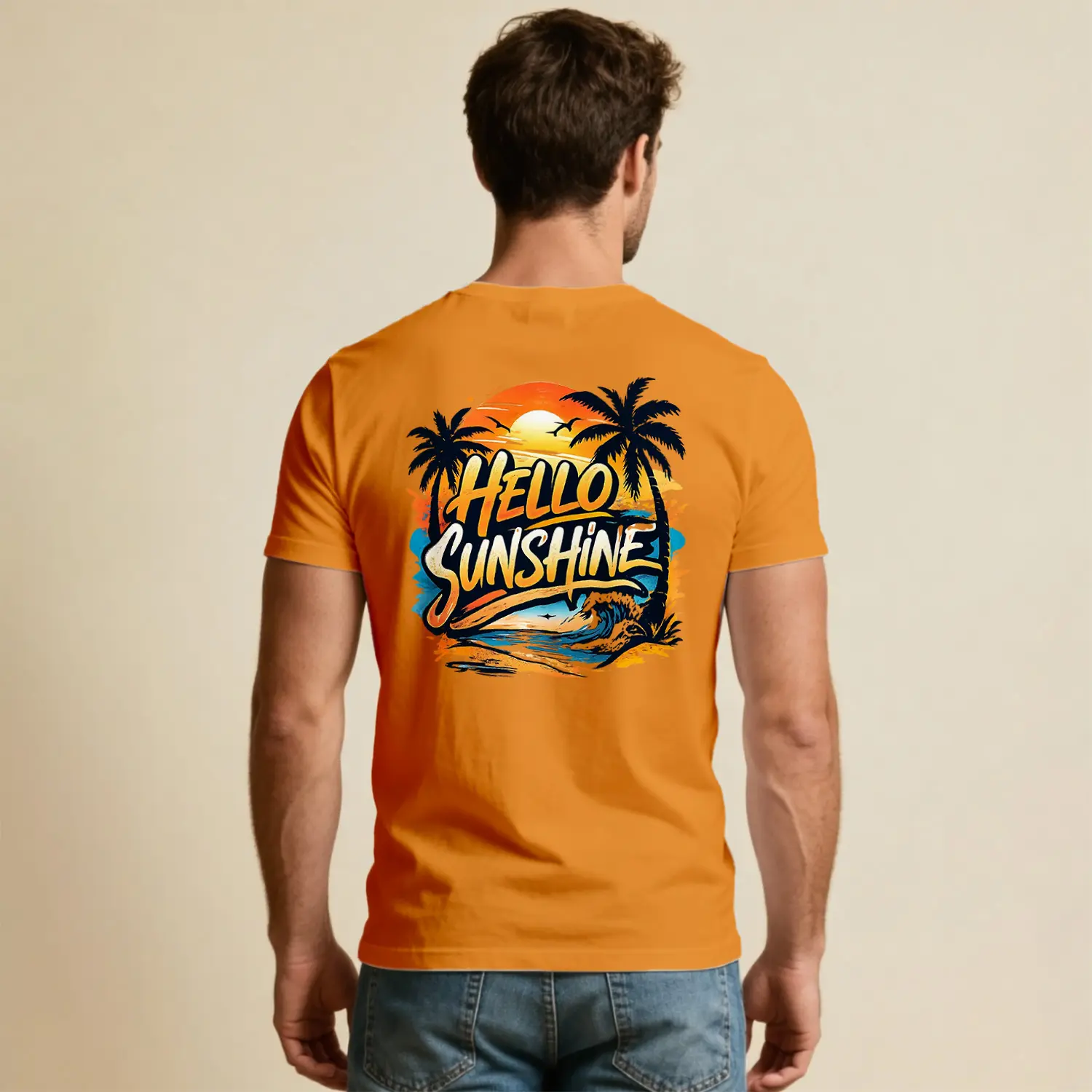 Hello Sunshine Tropikal Plaj Baskılı Erkek Tişörtü