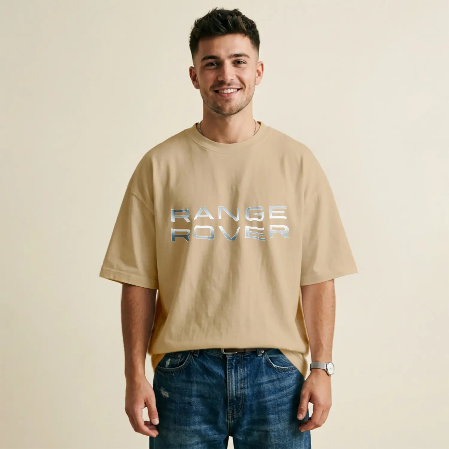 Kahverengi Oversize Yazı Baskılı Erkek Tişört