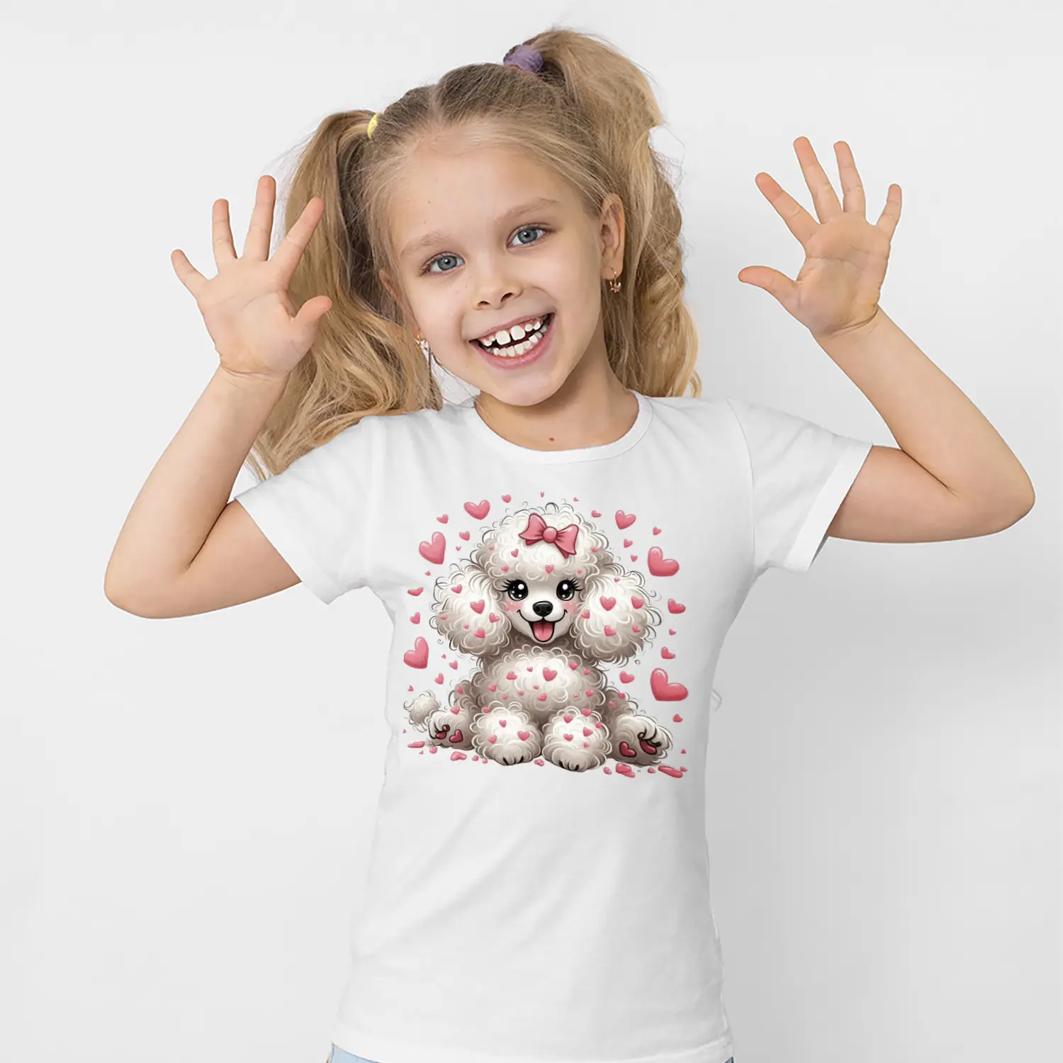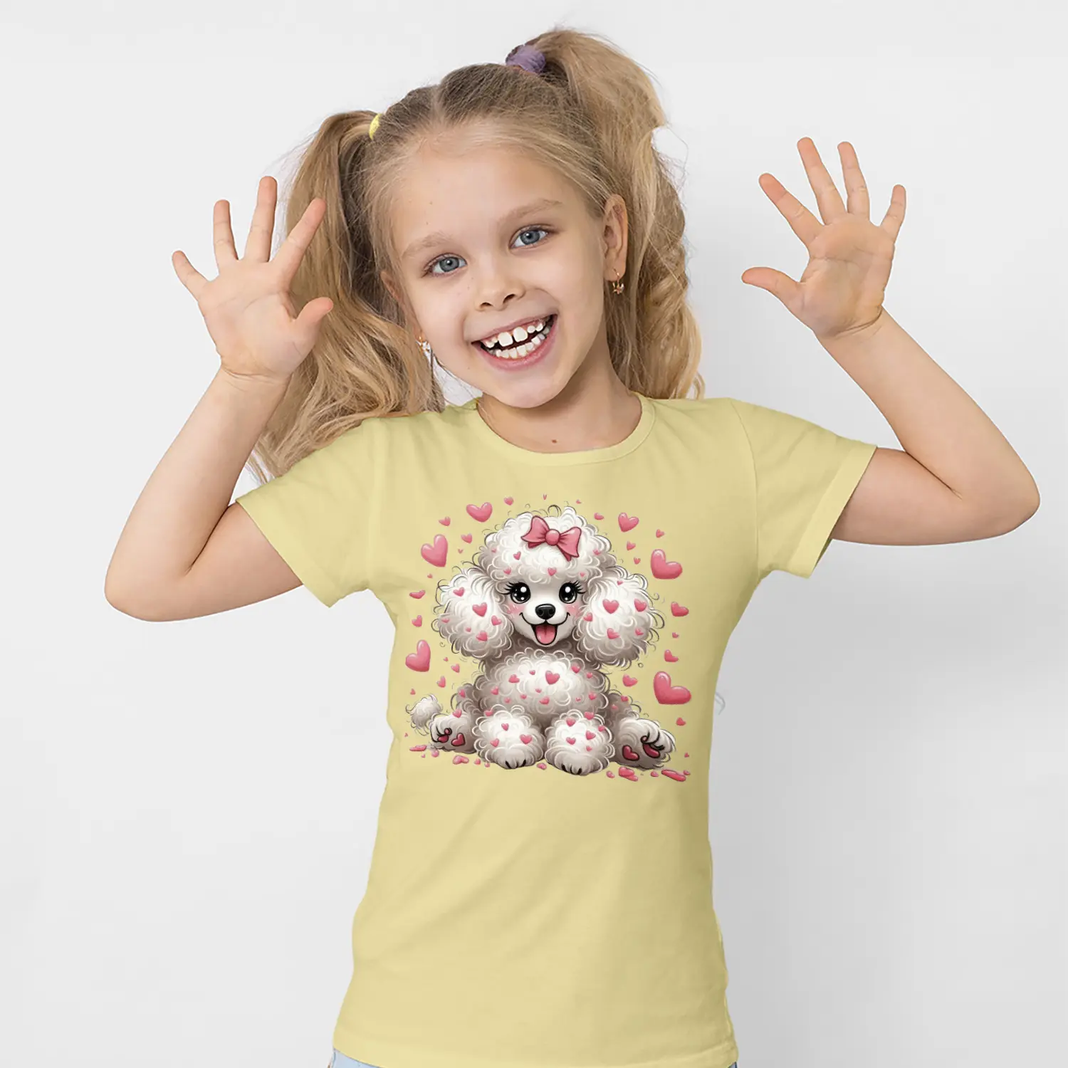Kalpli Sevimli Kivircik Kopek Figürlü Baskılı Kiz Çocuk Tisortu Tişörtü