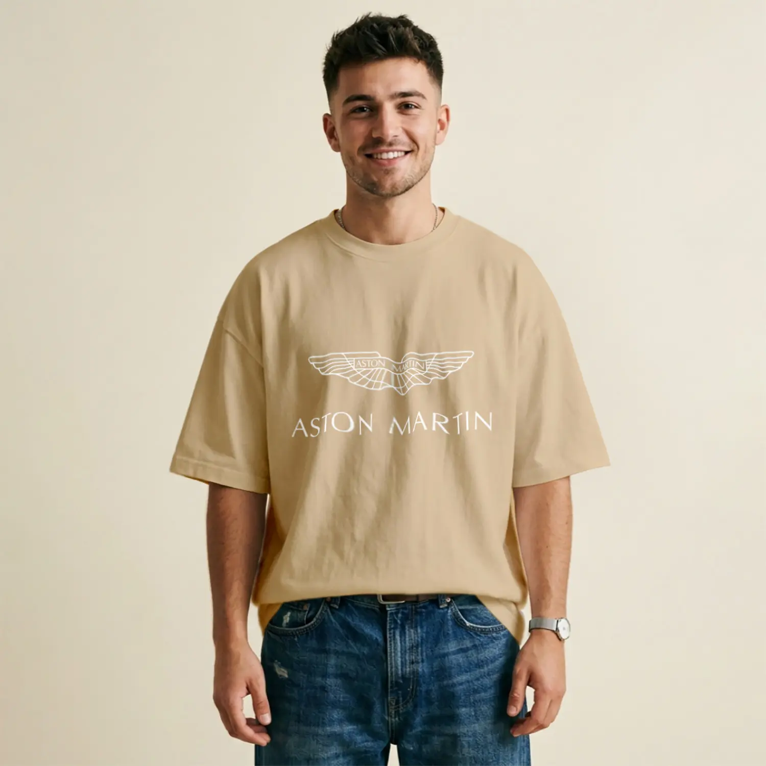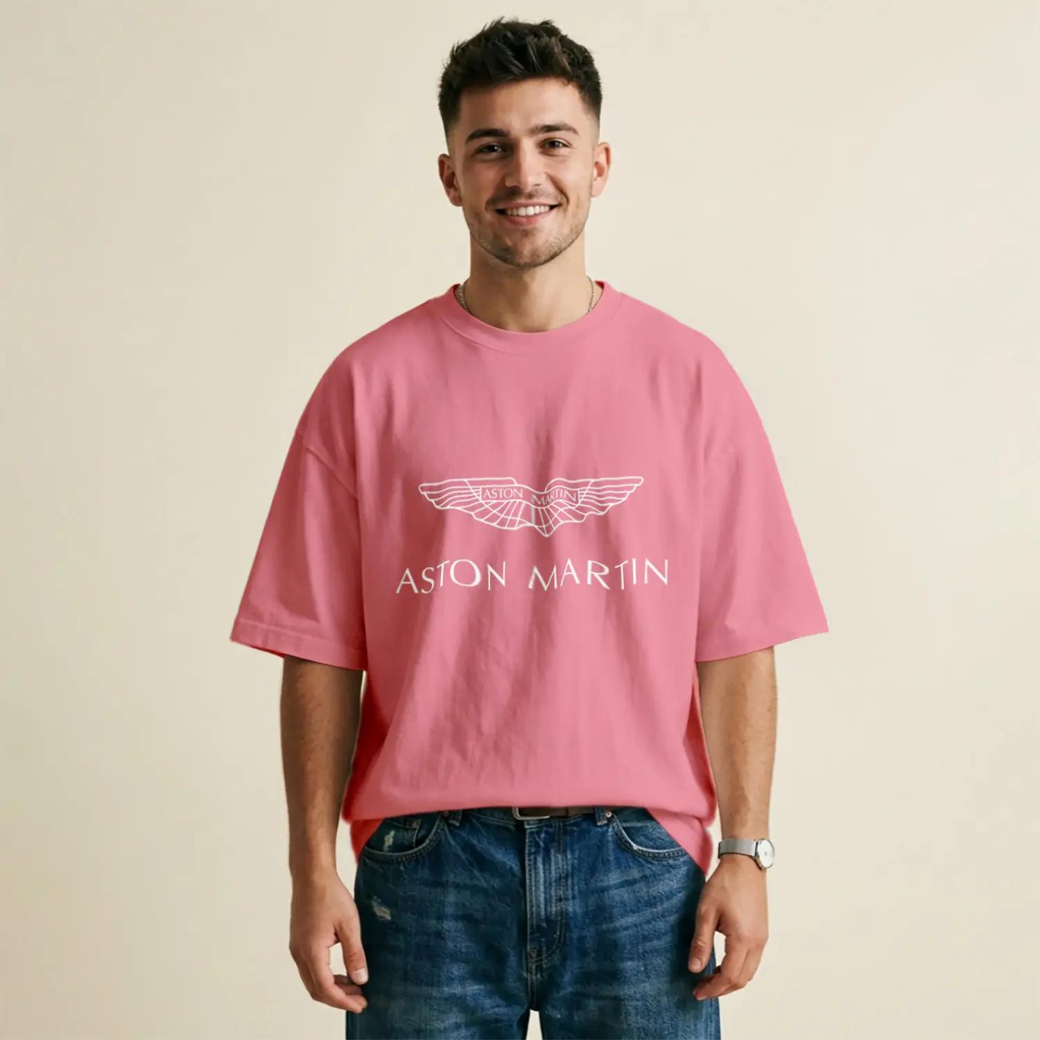 Kanat Baskılı Pudra Rengi Oversize Baskılı Erkek Tişört