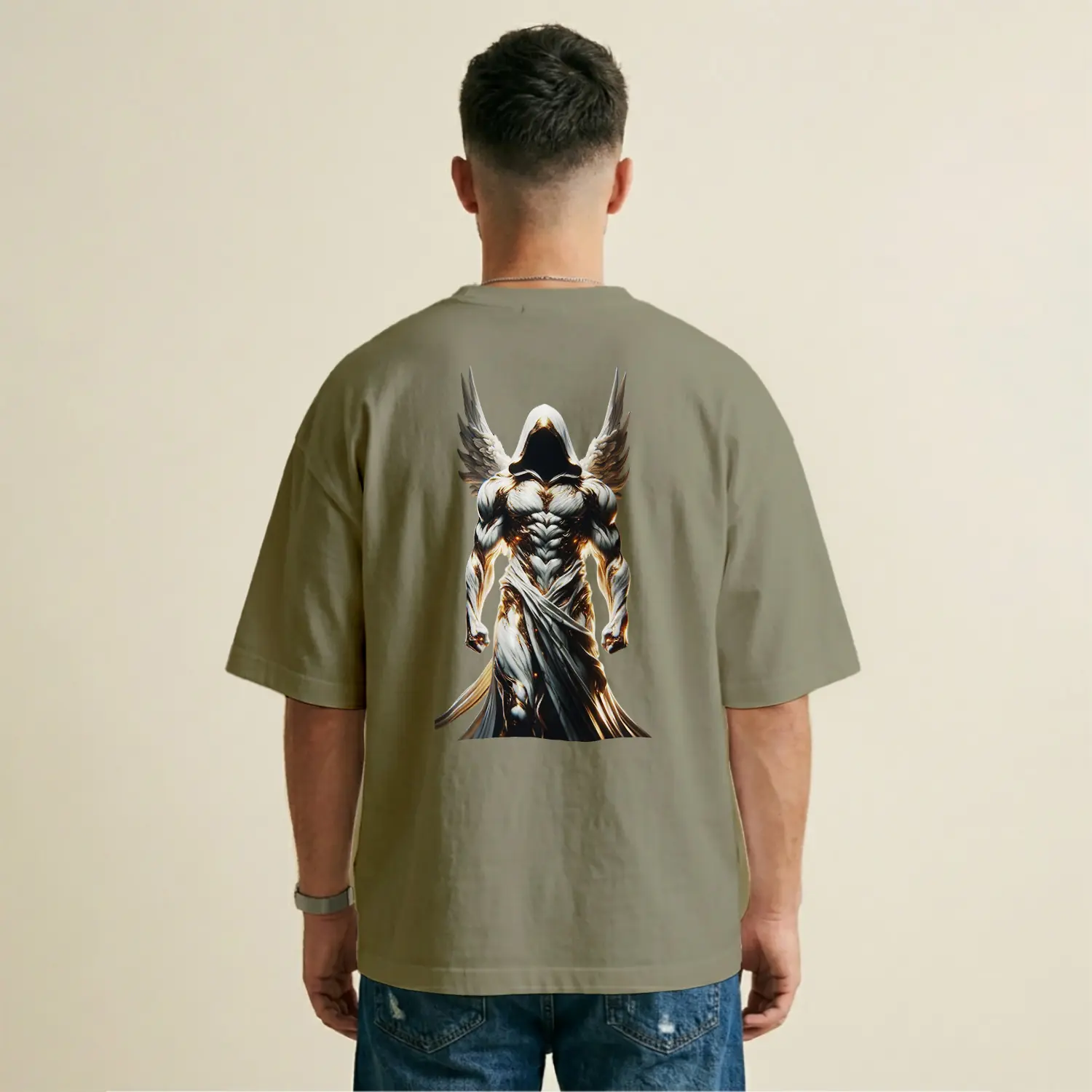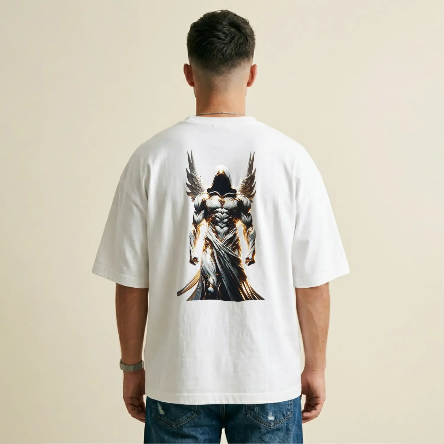 Kanatlı Kılıçlı Melek Baskılı Erkek Tişört