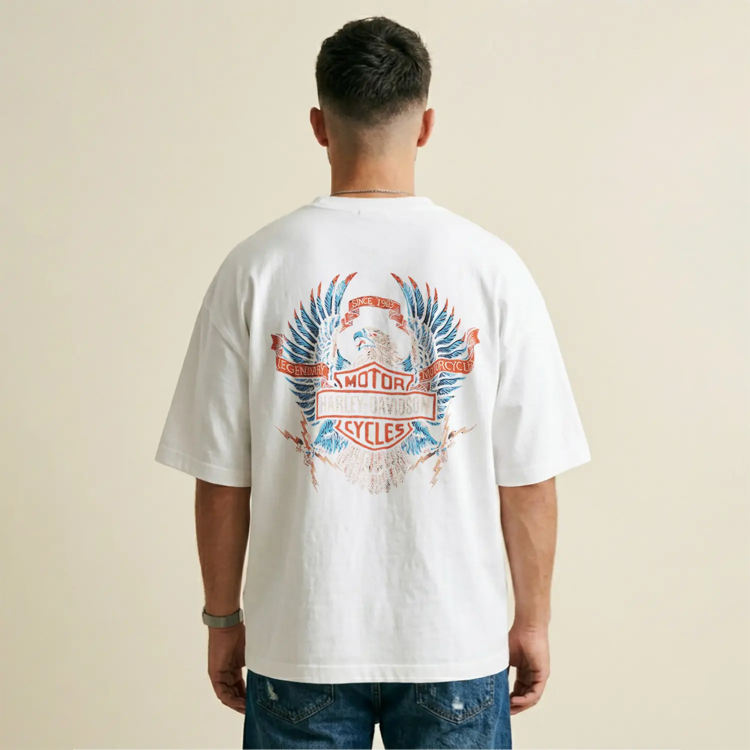 Kartal ve Yıldırım Desenli Baskılı Erkek Tişört