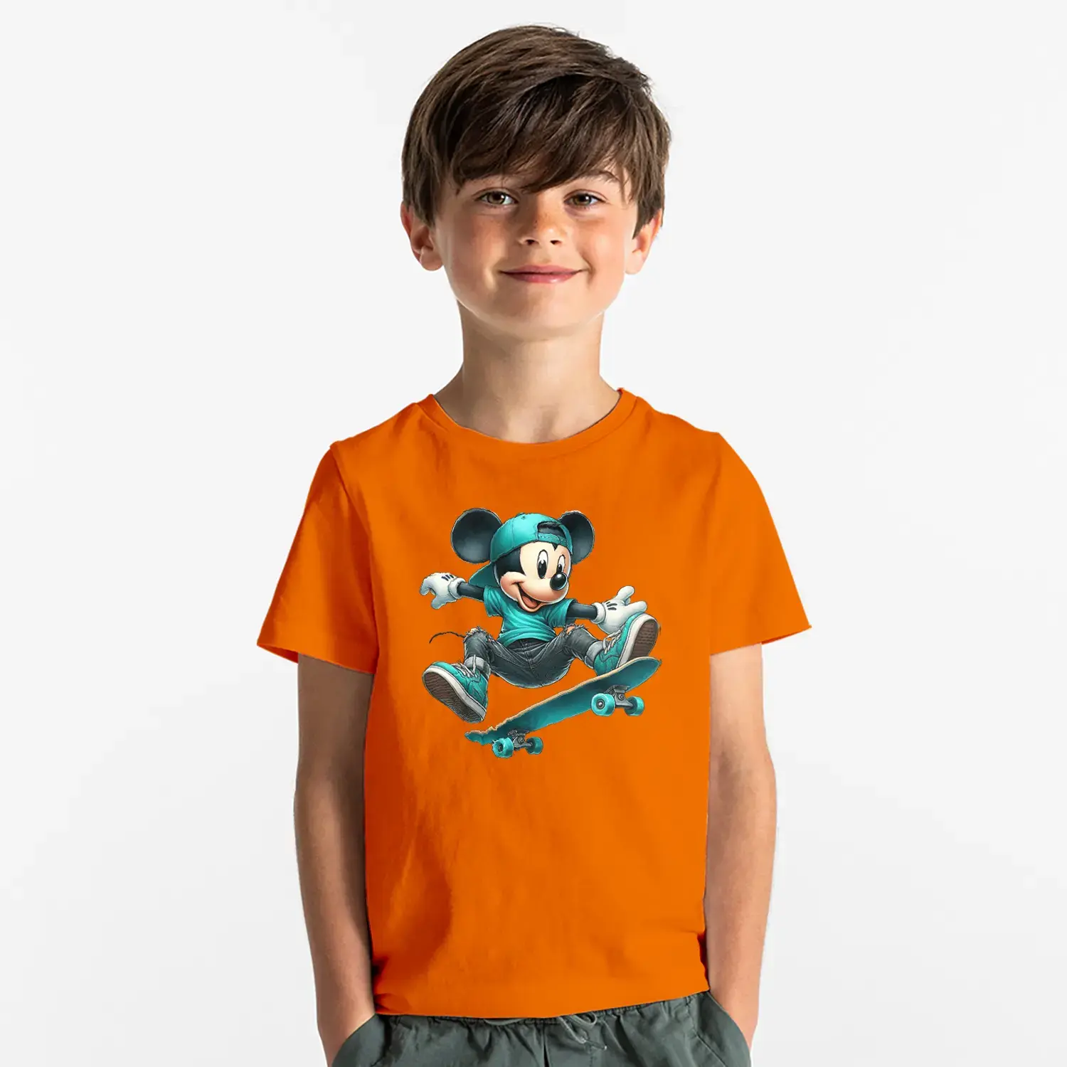 Kaykayci Sevimli Fare Baskılı Erkek Çocuk Tişörtü