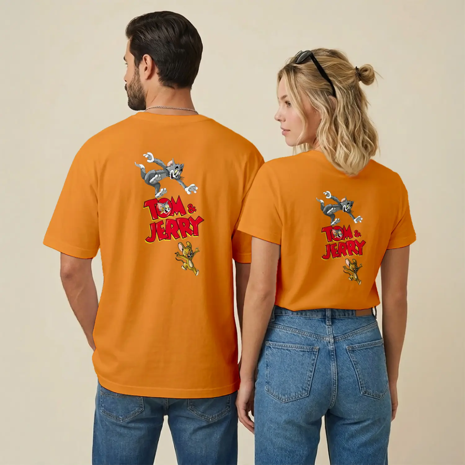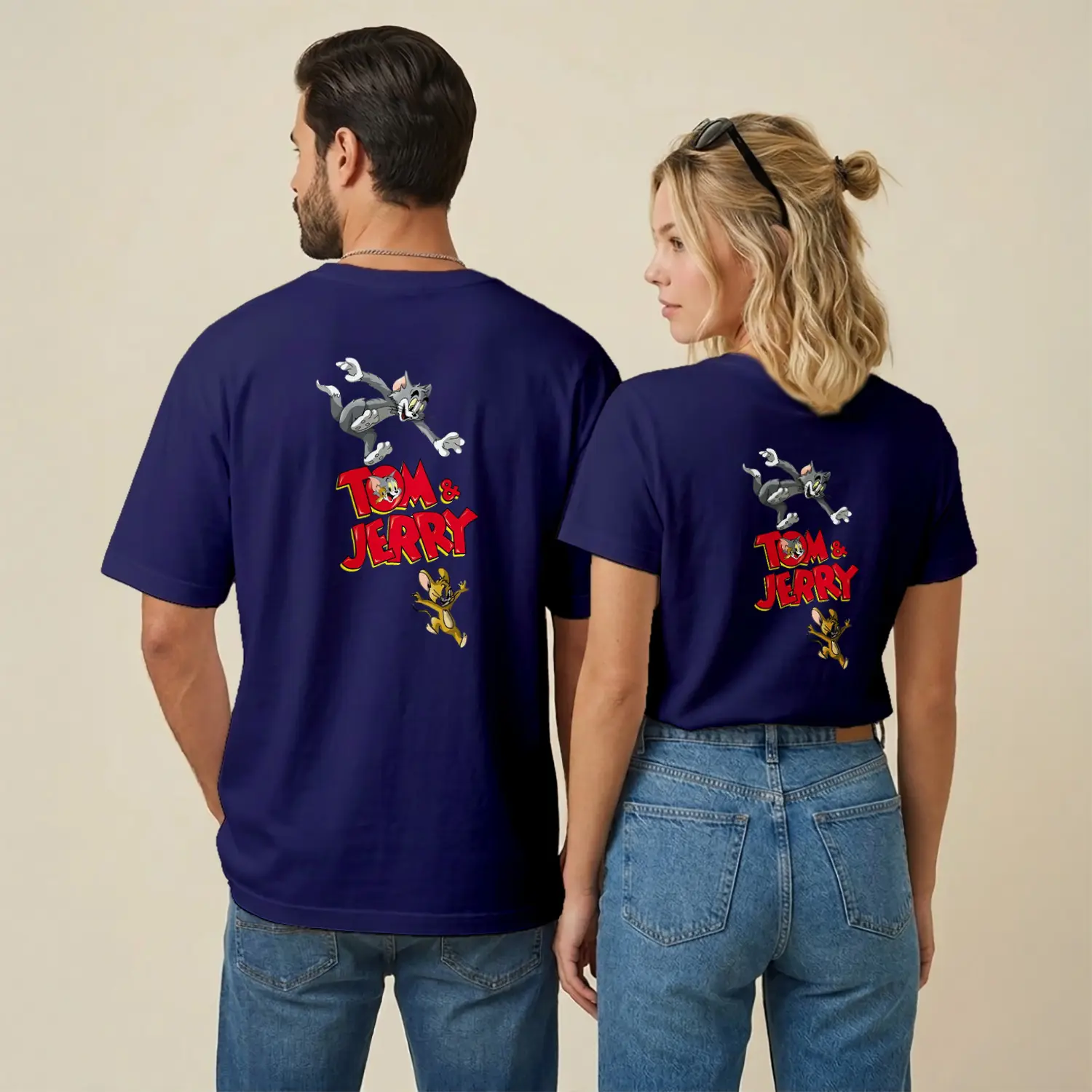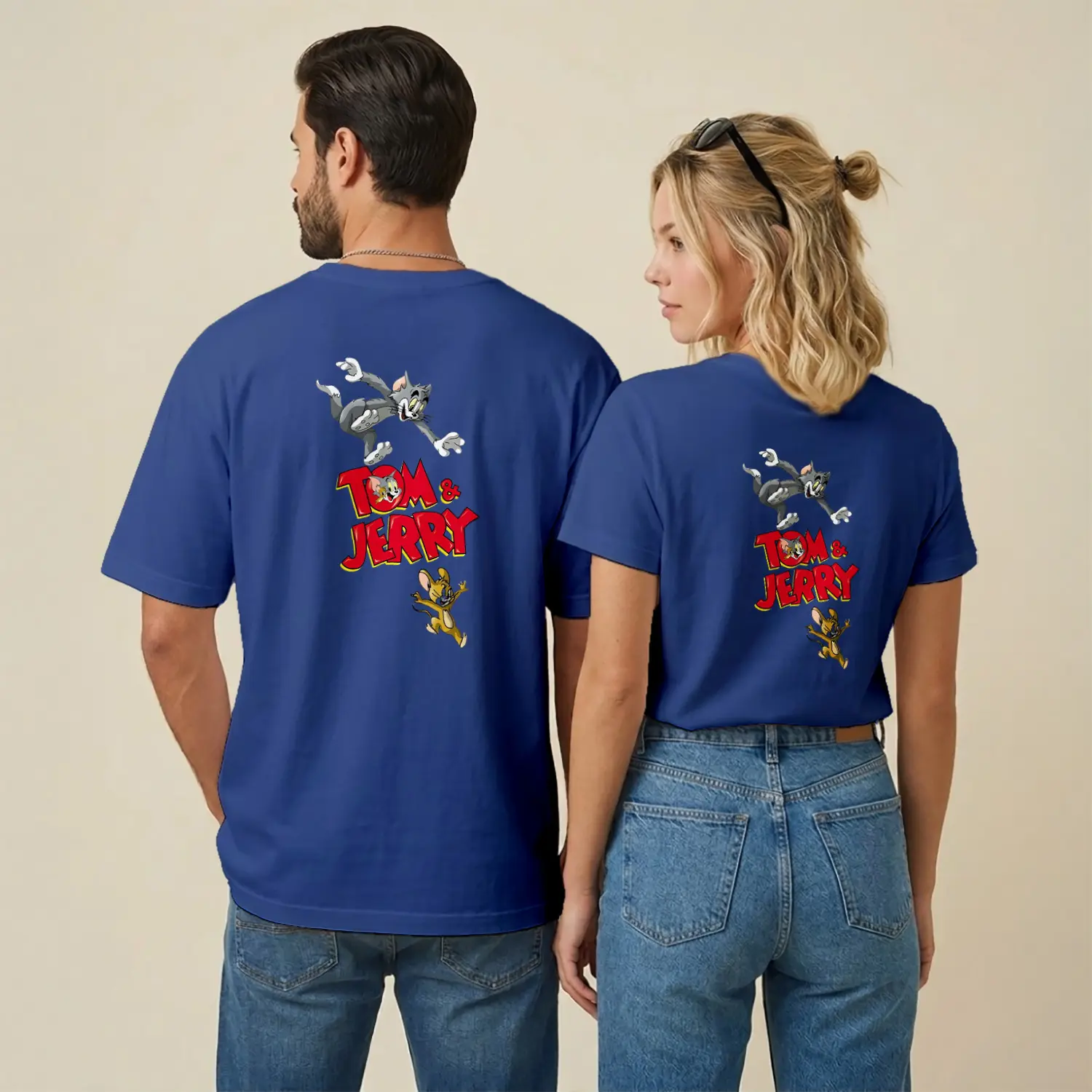 Kedi Ve Fare Cizgi Film Ikili Kovalamaca Baskılı Unisex Tişörtü
