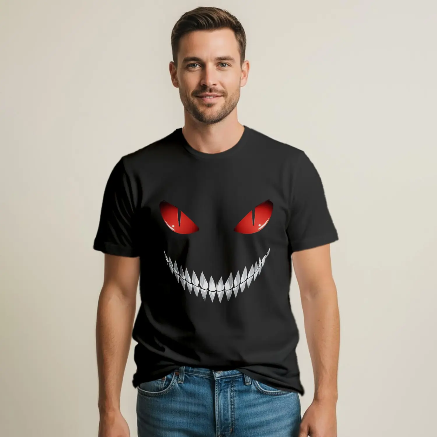 Kırmızı Gozlu Karanlik Yuz Baskılı Erkek Tişörtü