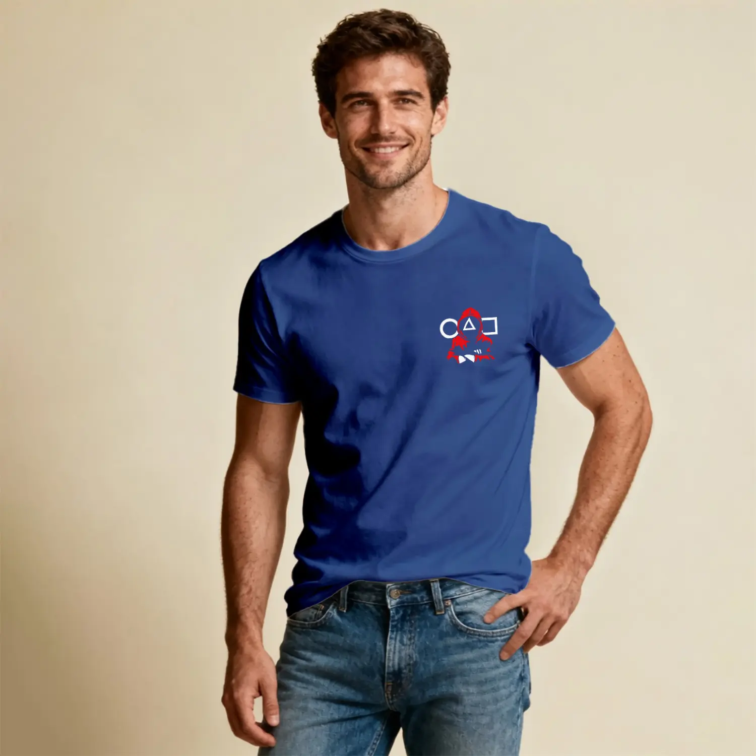 Kırmızı Maskeli Figure Geometrik Sembol Baskılı Erkek Tişörtü