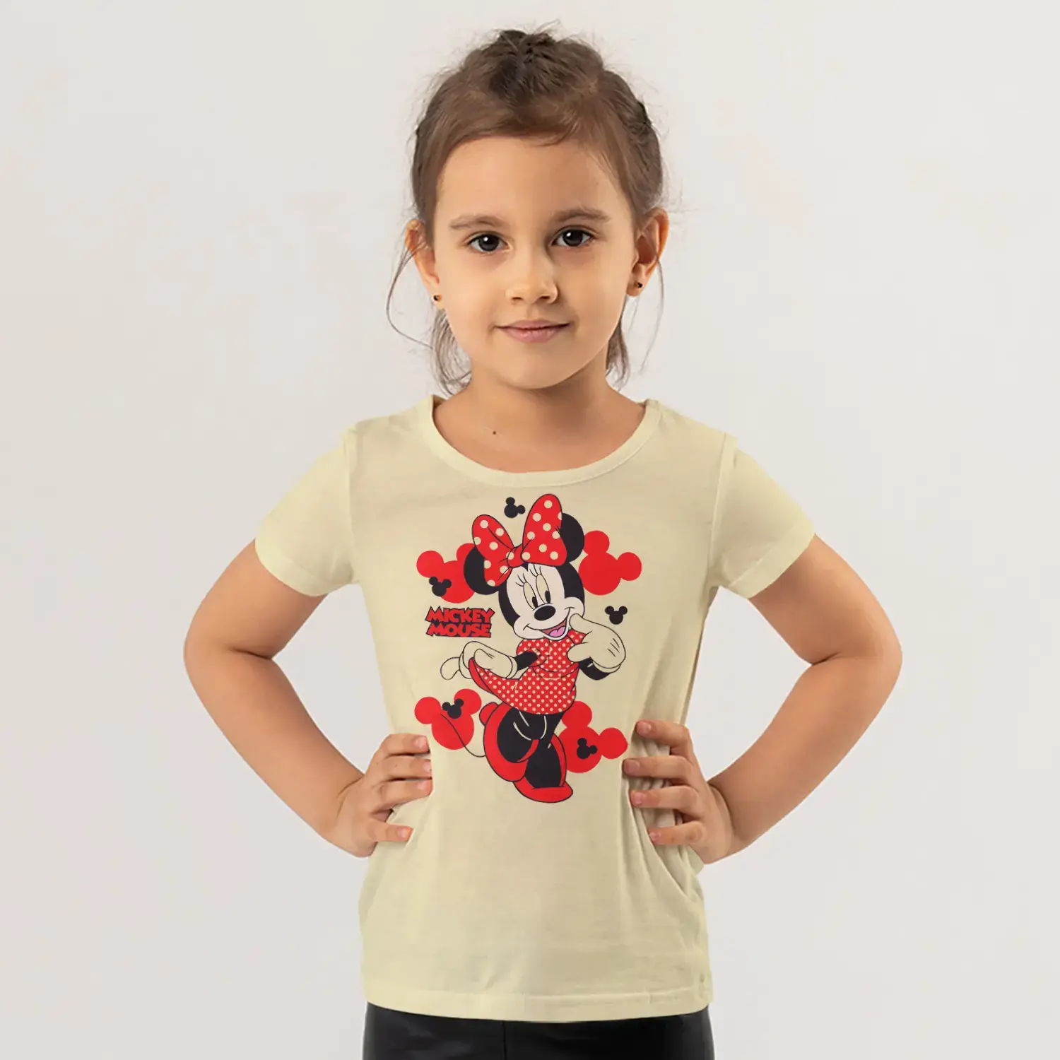 Kırmızı Puantiyeli Fiyonklu Fare Kiz Kırmızı Siluet Baskılı Kiz Çocuk Tisortu Tişörtü