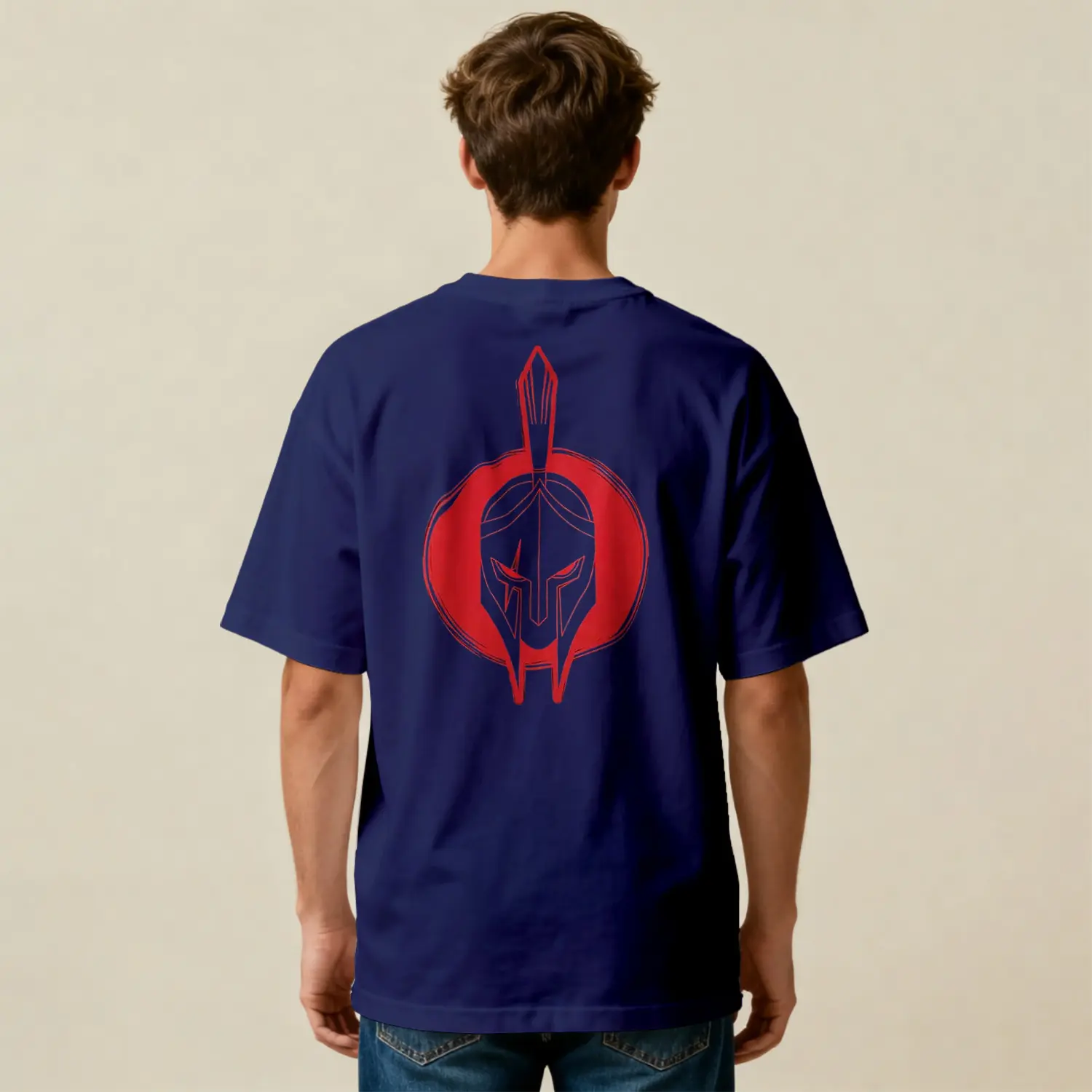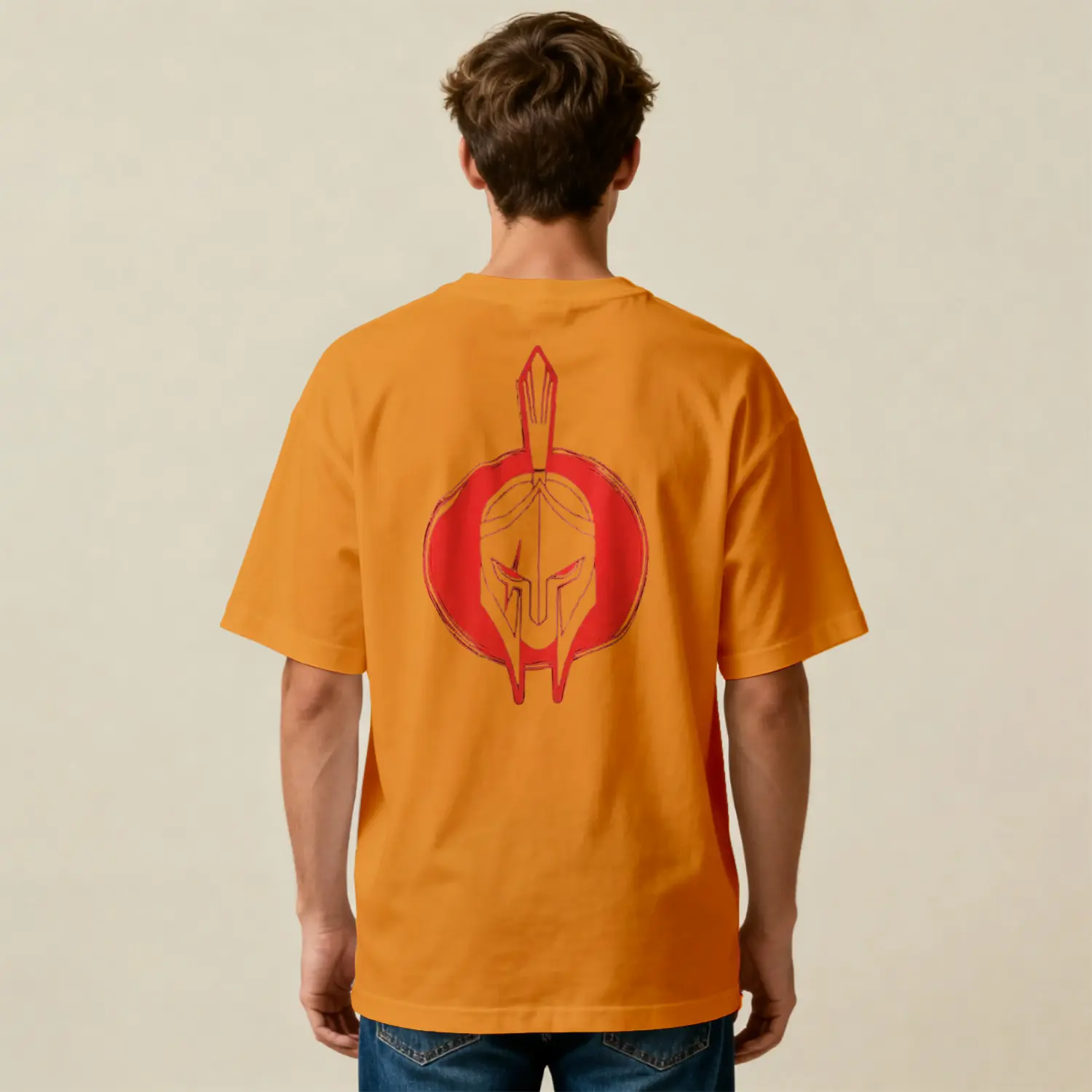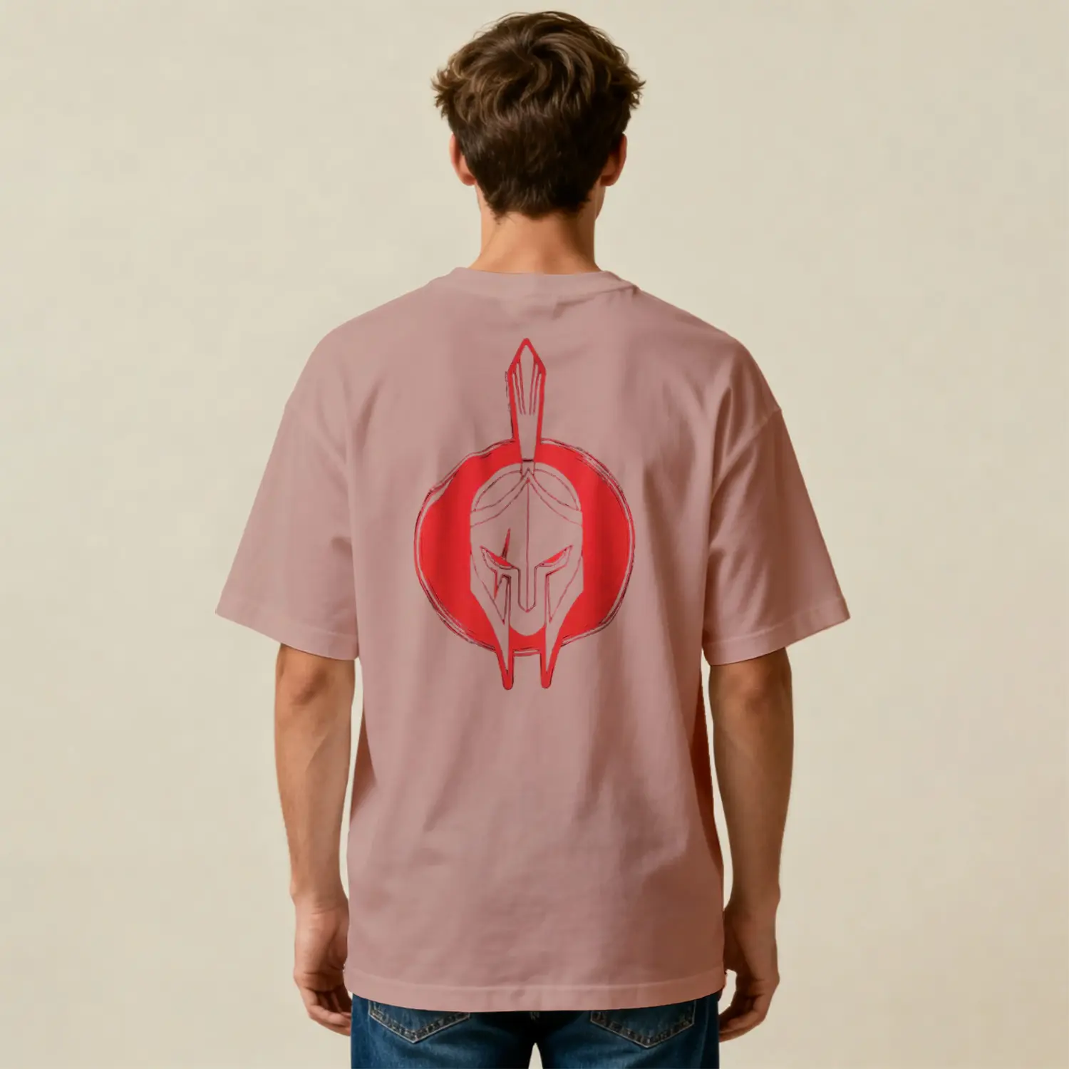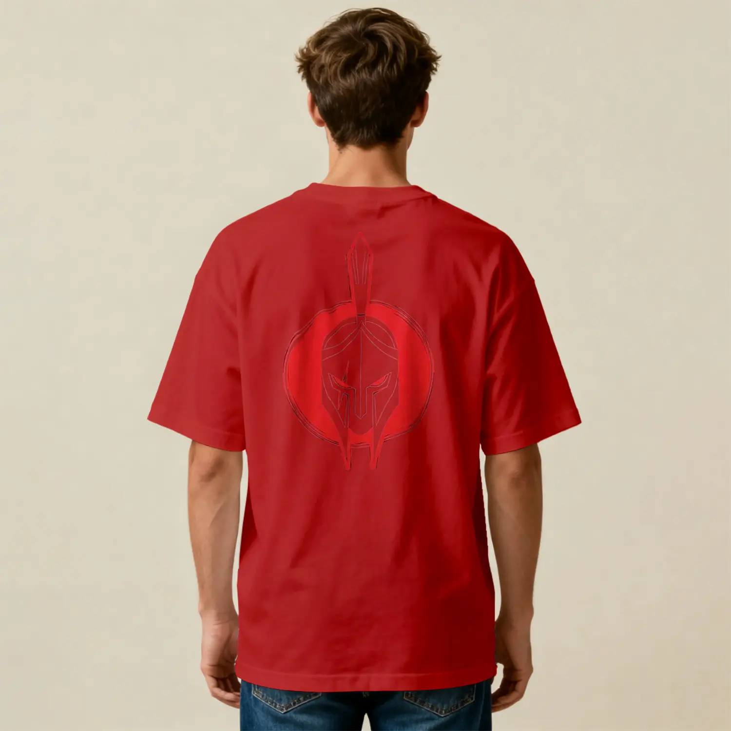 Kırmızı Stilize Migfer Desenli Baskılı Erkek Tişörtü