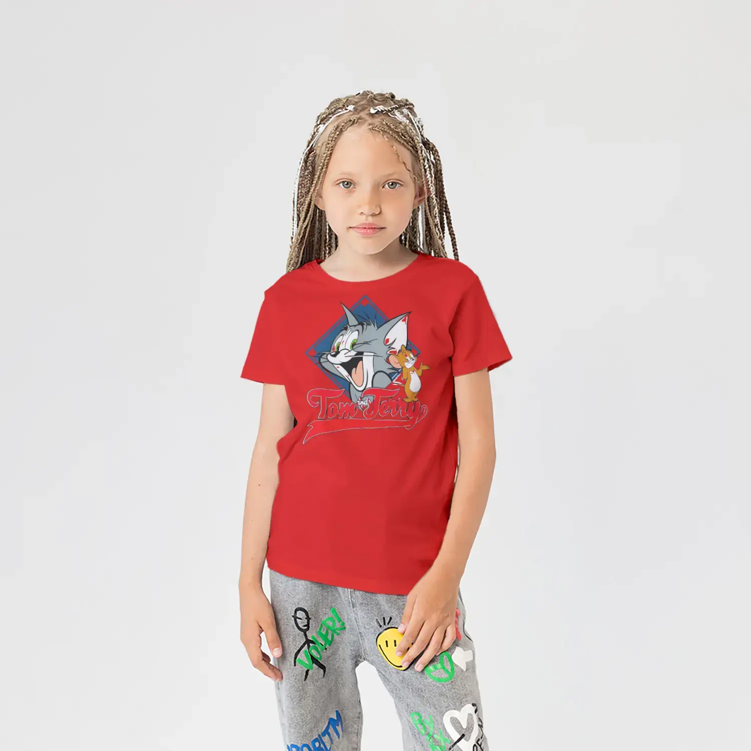 Komik Kedi Ve Fare Ikili Karikatur Baskılı Kiz Çocuk Tisortu Tişörtü