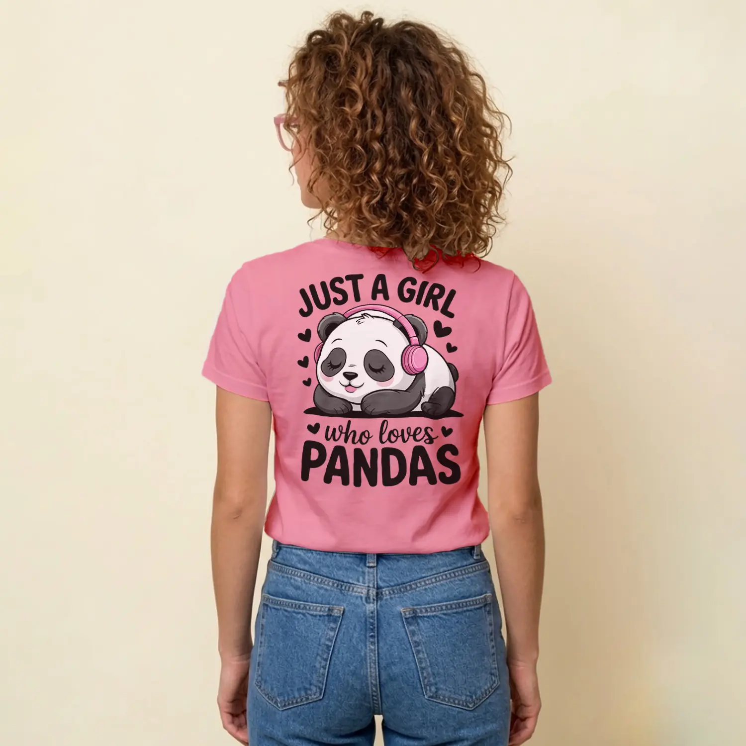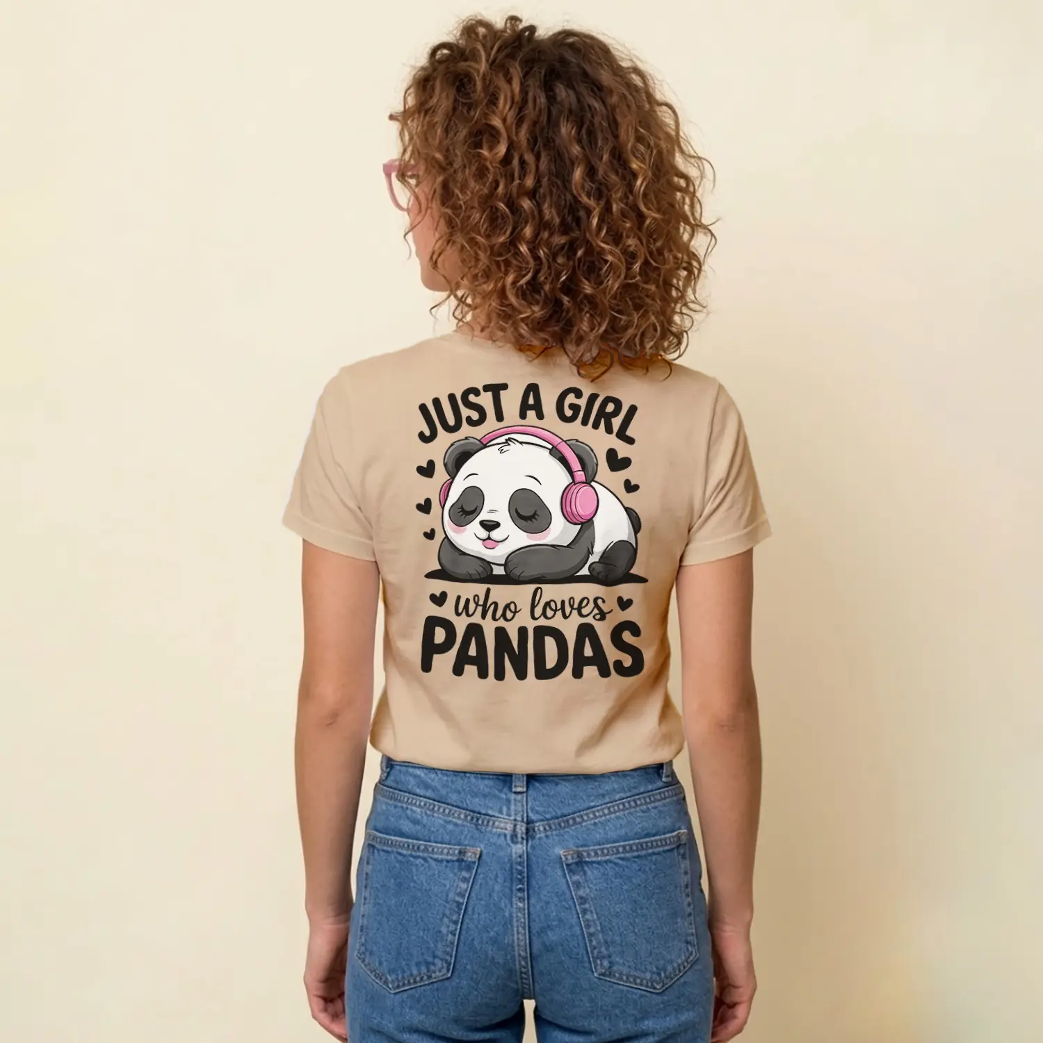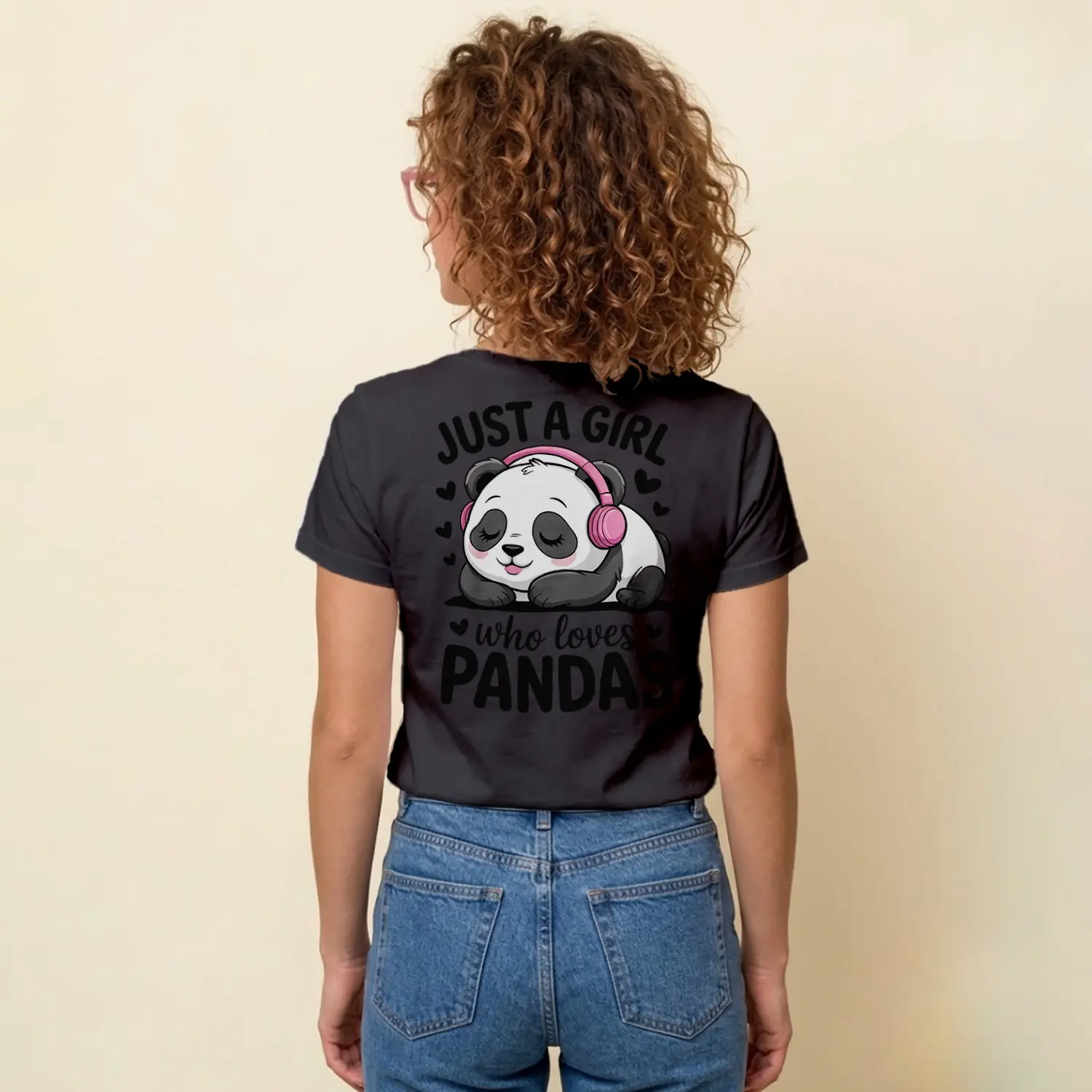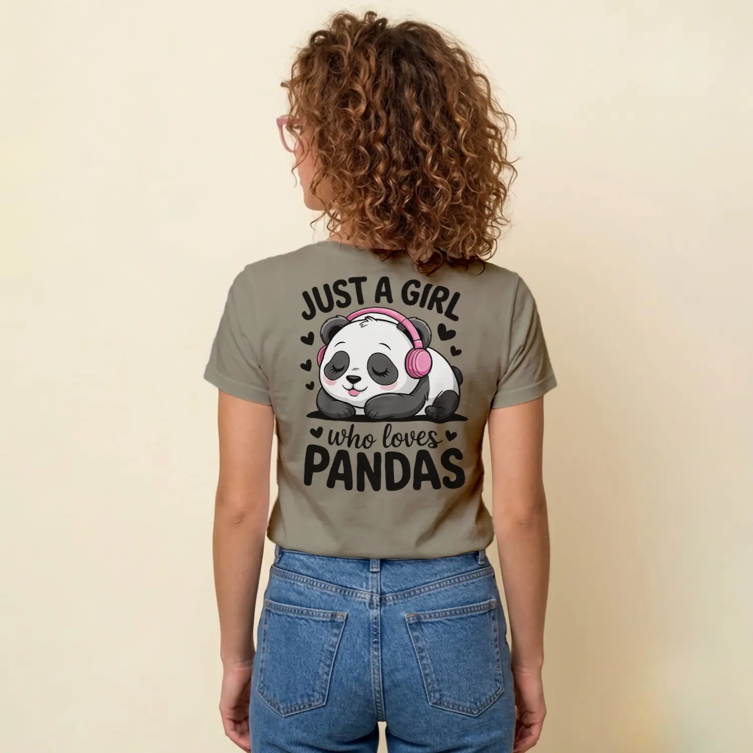 Kulaklikli Sevimli Panda Tasarim Baskılı Kadın Tişörtü
