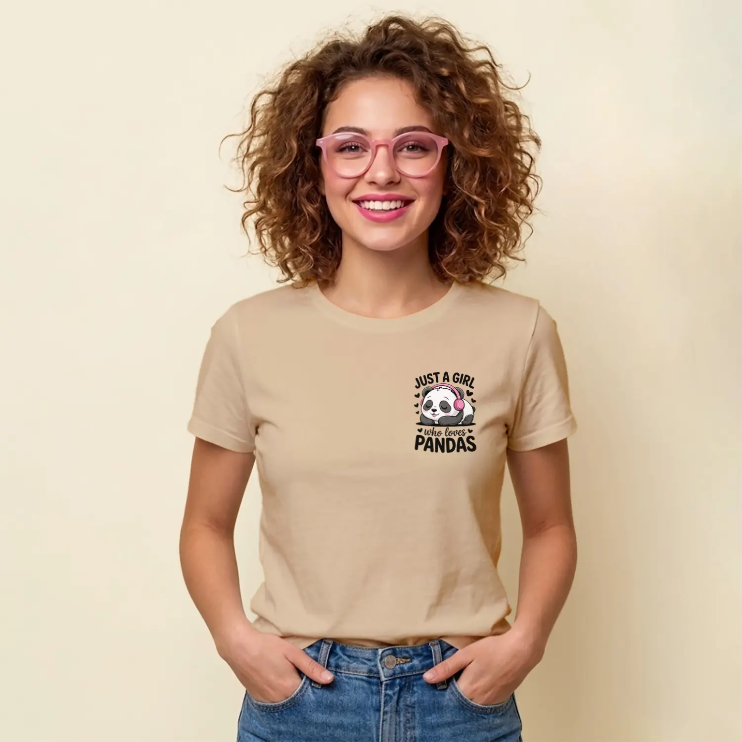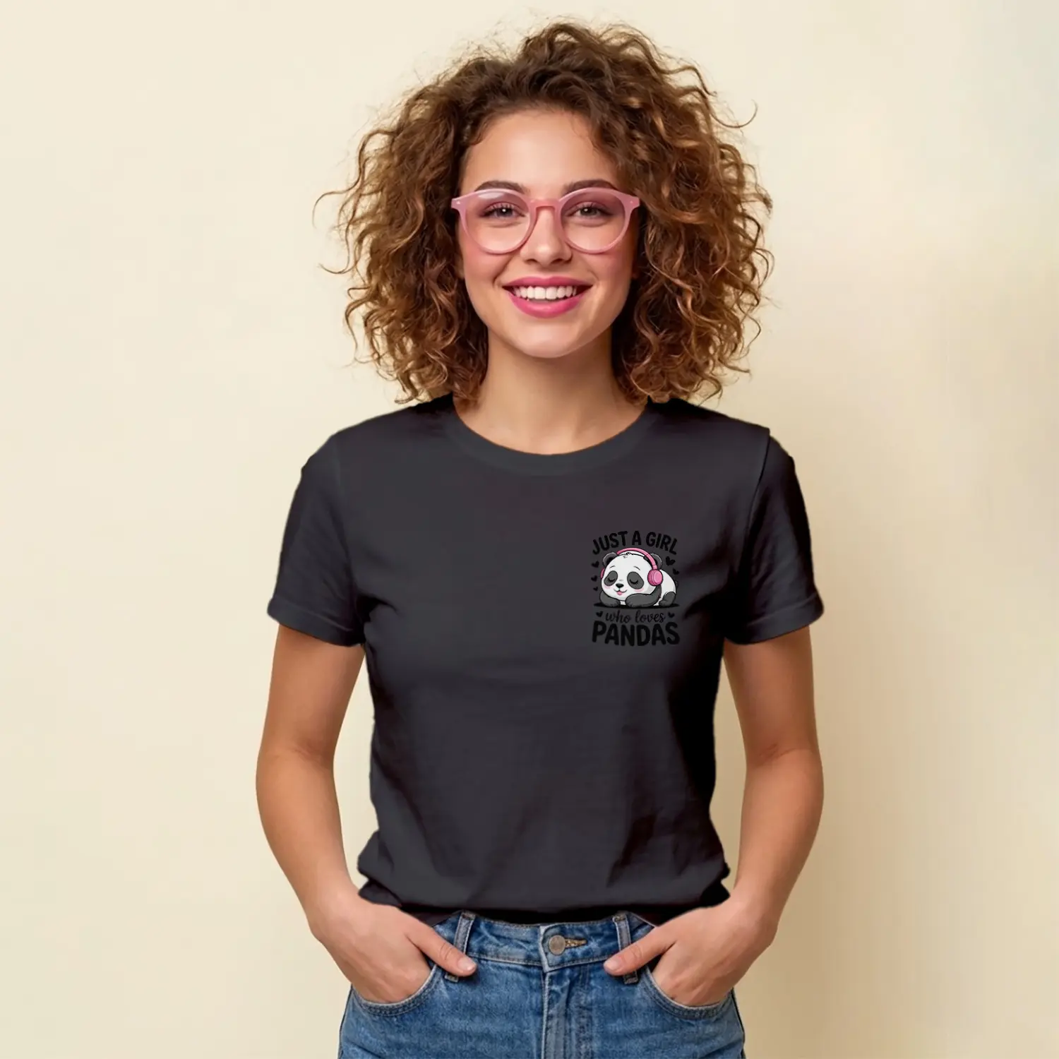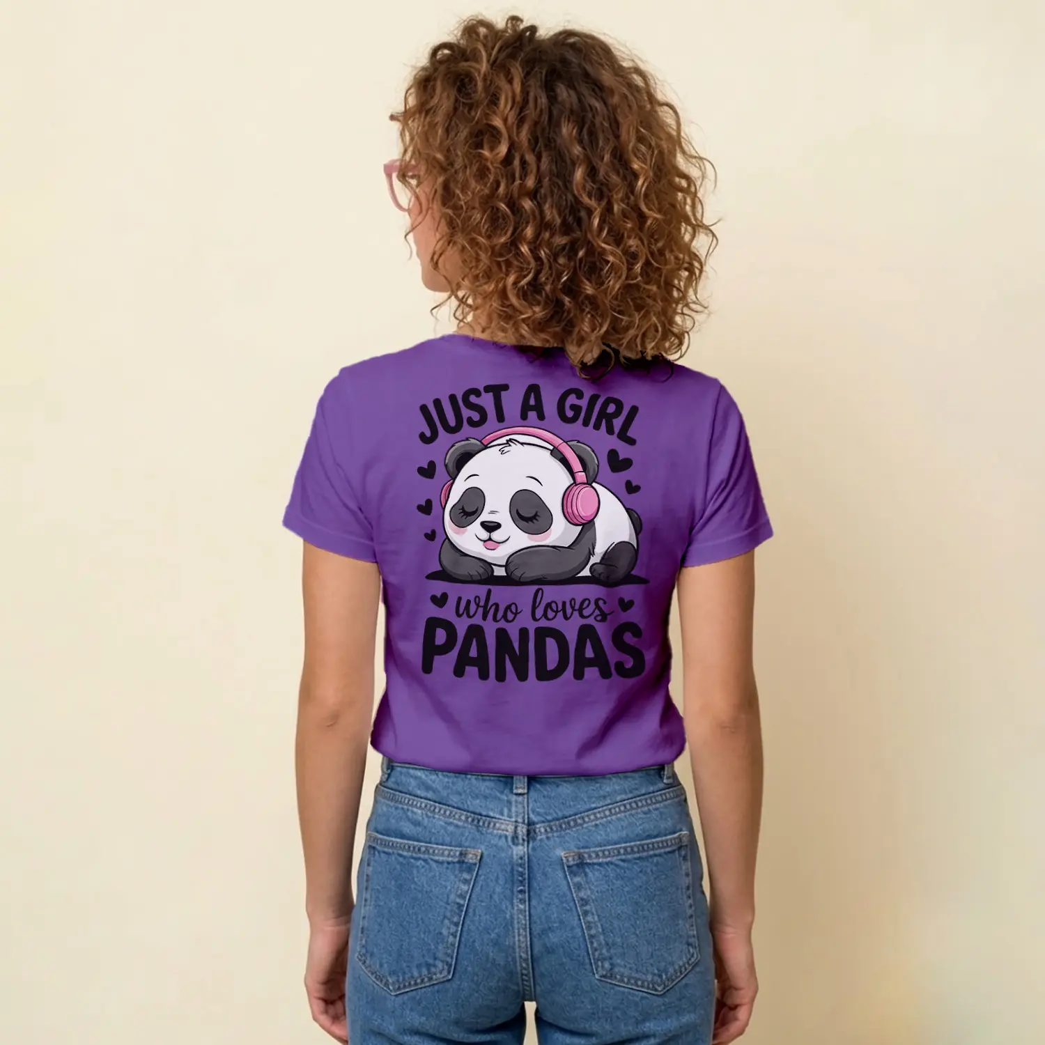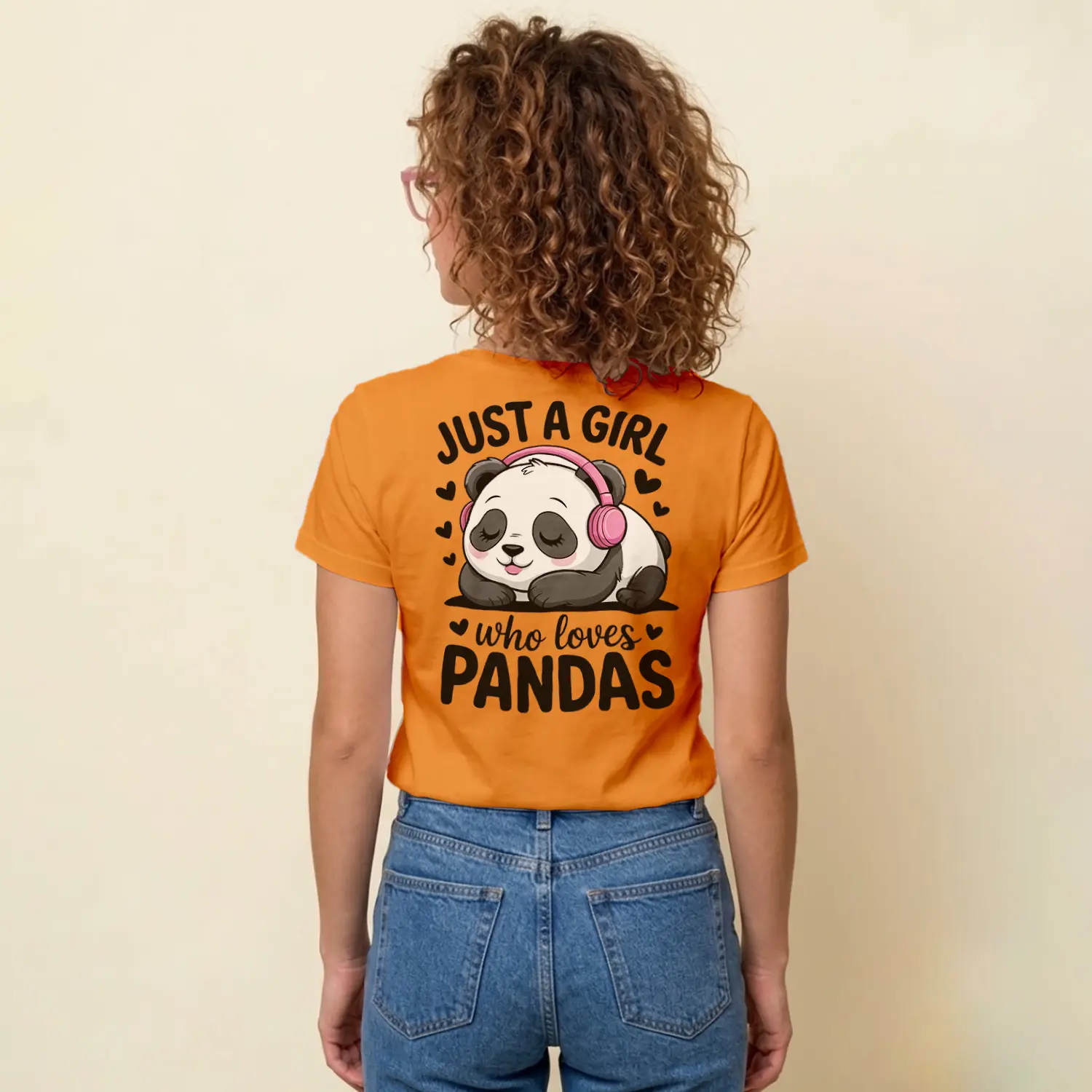 Kulaklikli Sevimli Panda Tasarim Baskılı Kadın Tişörtü