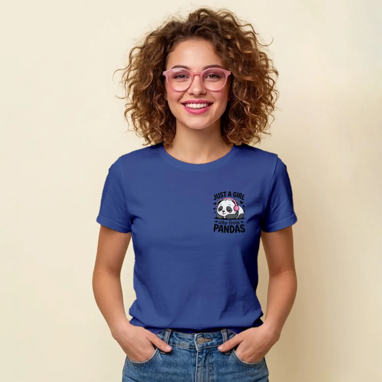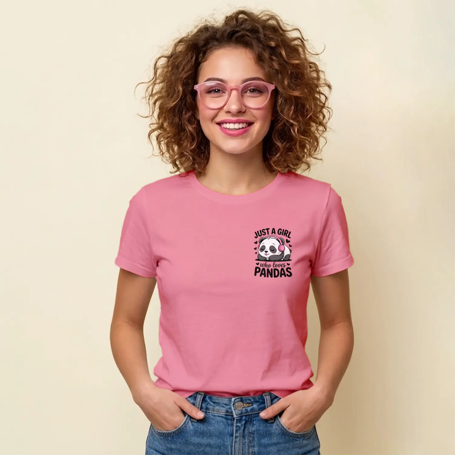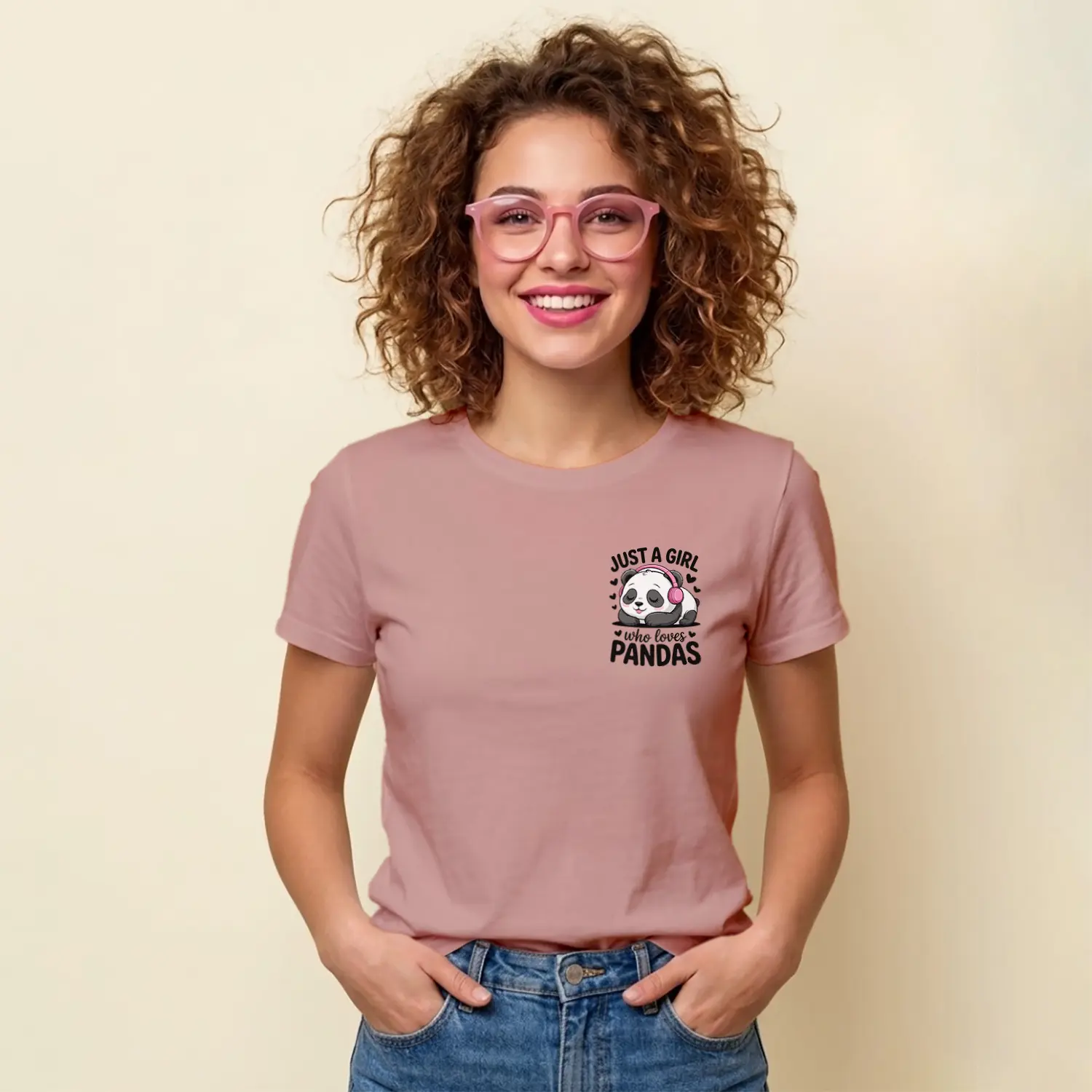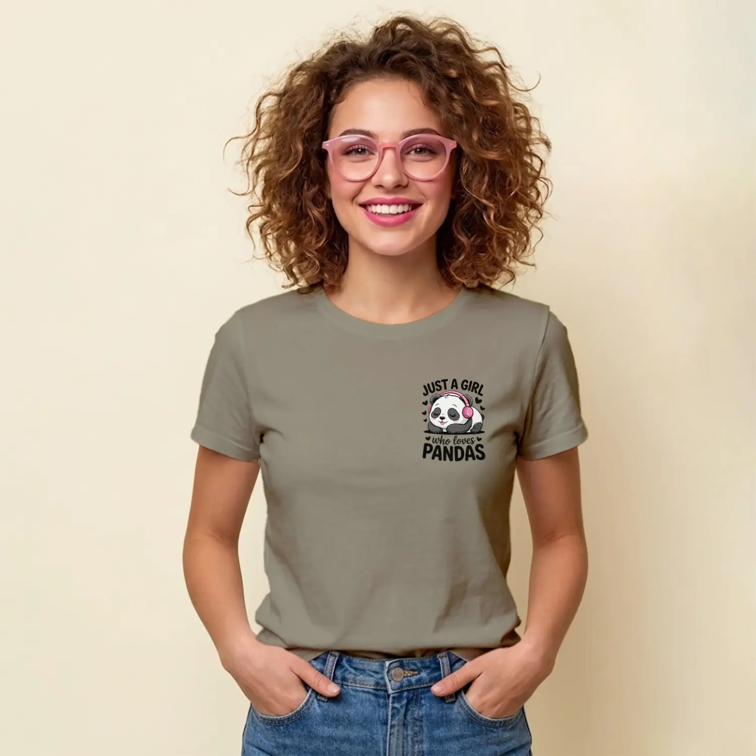 Kulaklikli Sevimli Panda Tasarim Baskılı Kadın Tişörtü