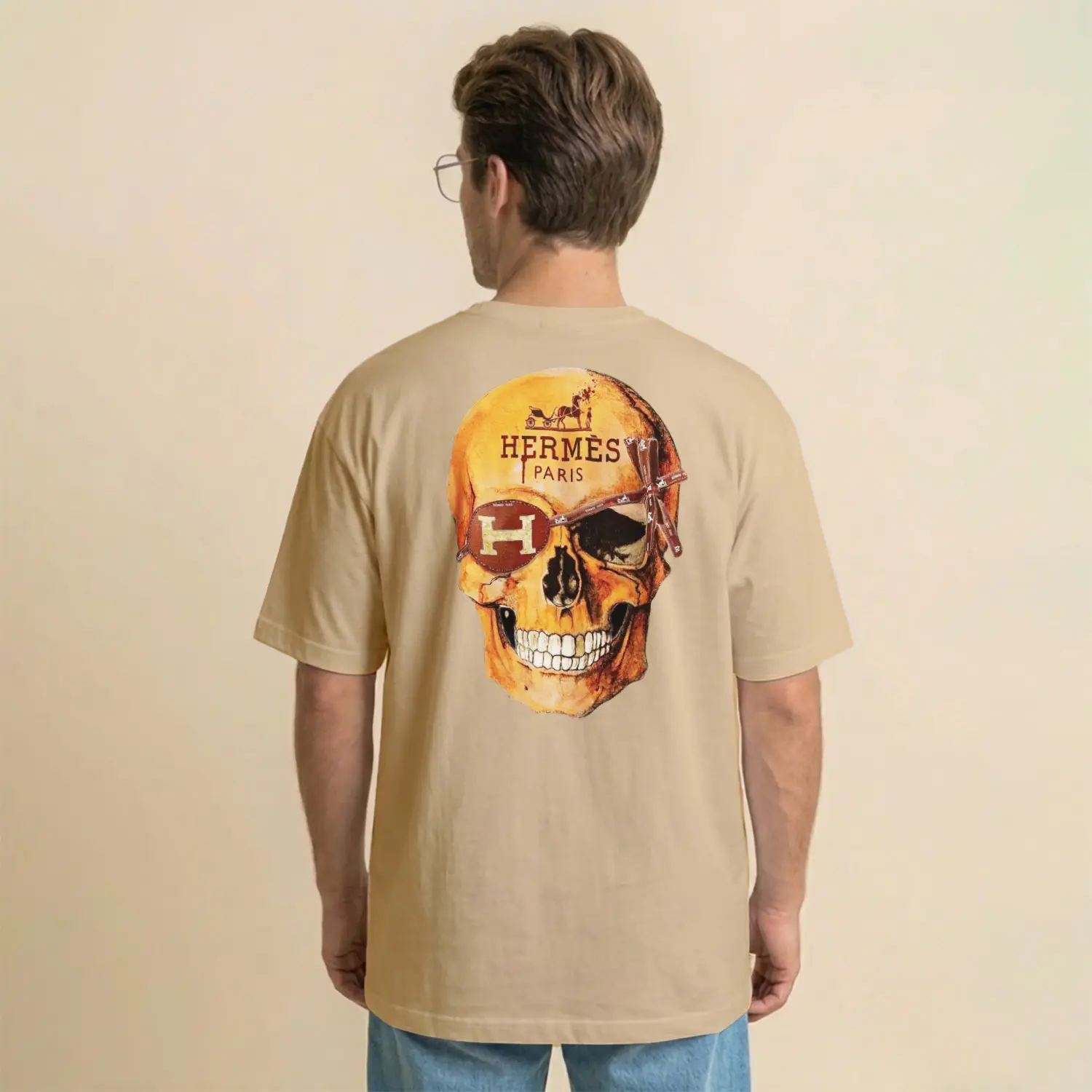 Kurukafa ve Gül Temalı Baskılı Erkek Tişört