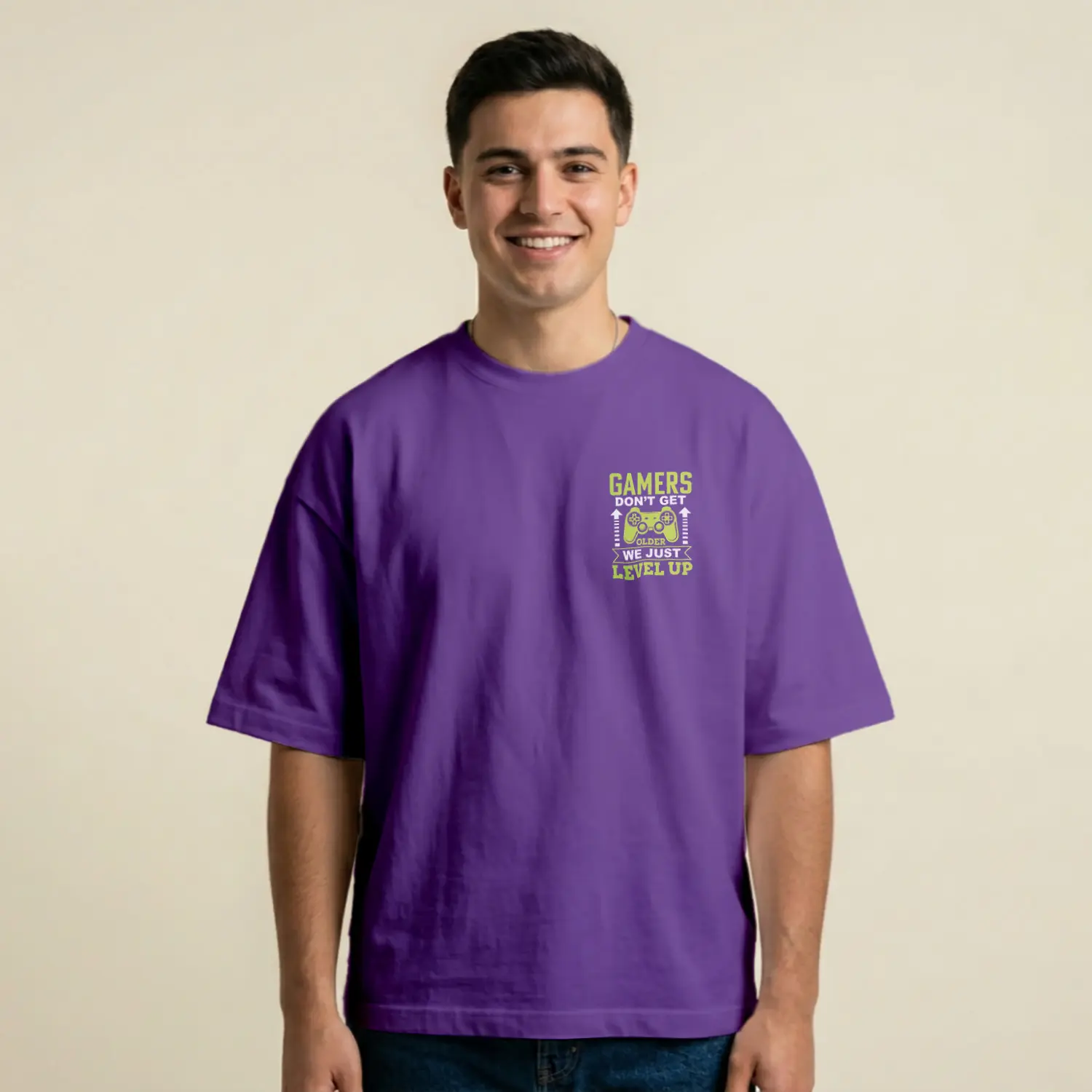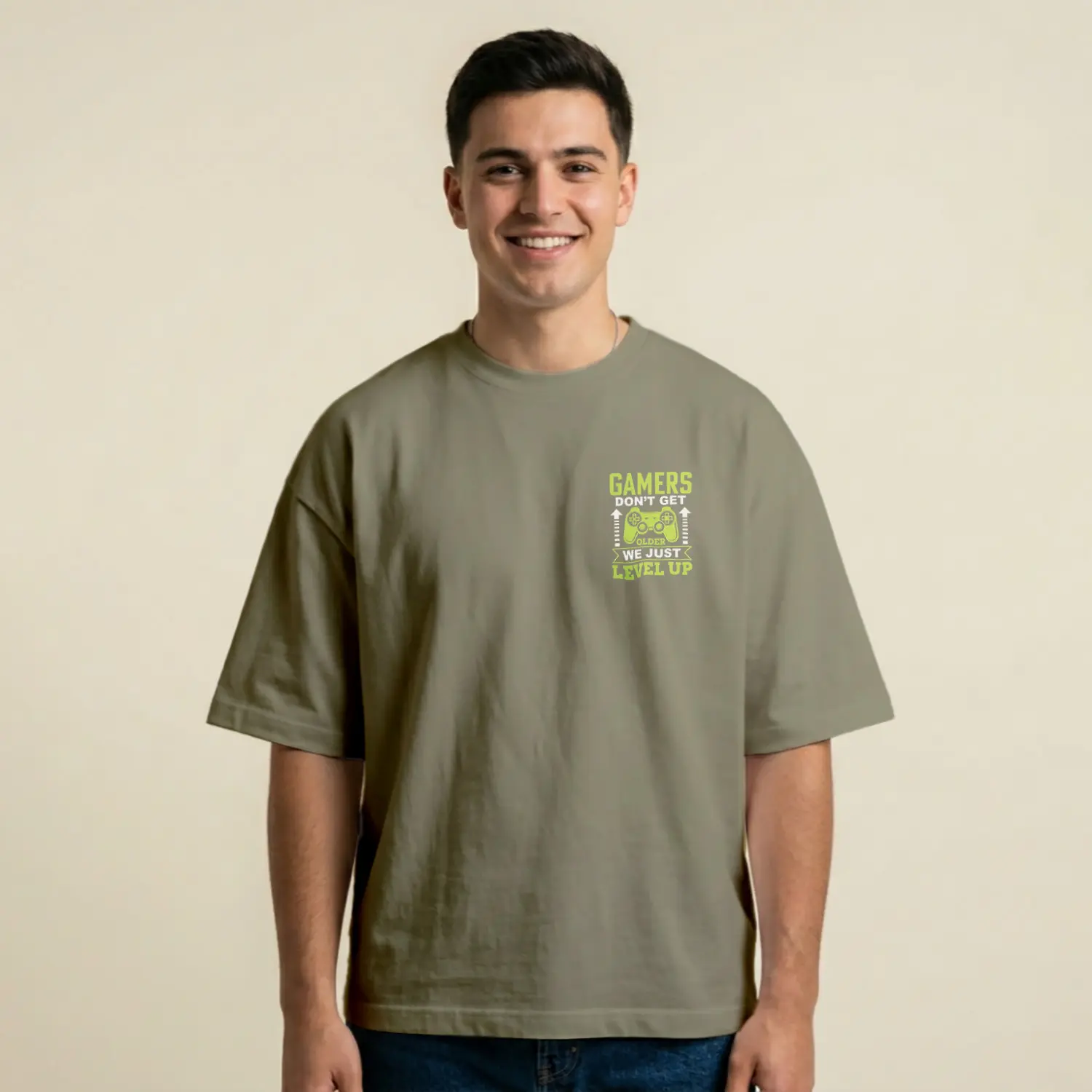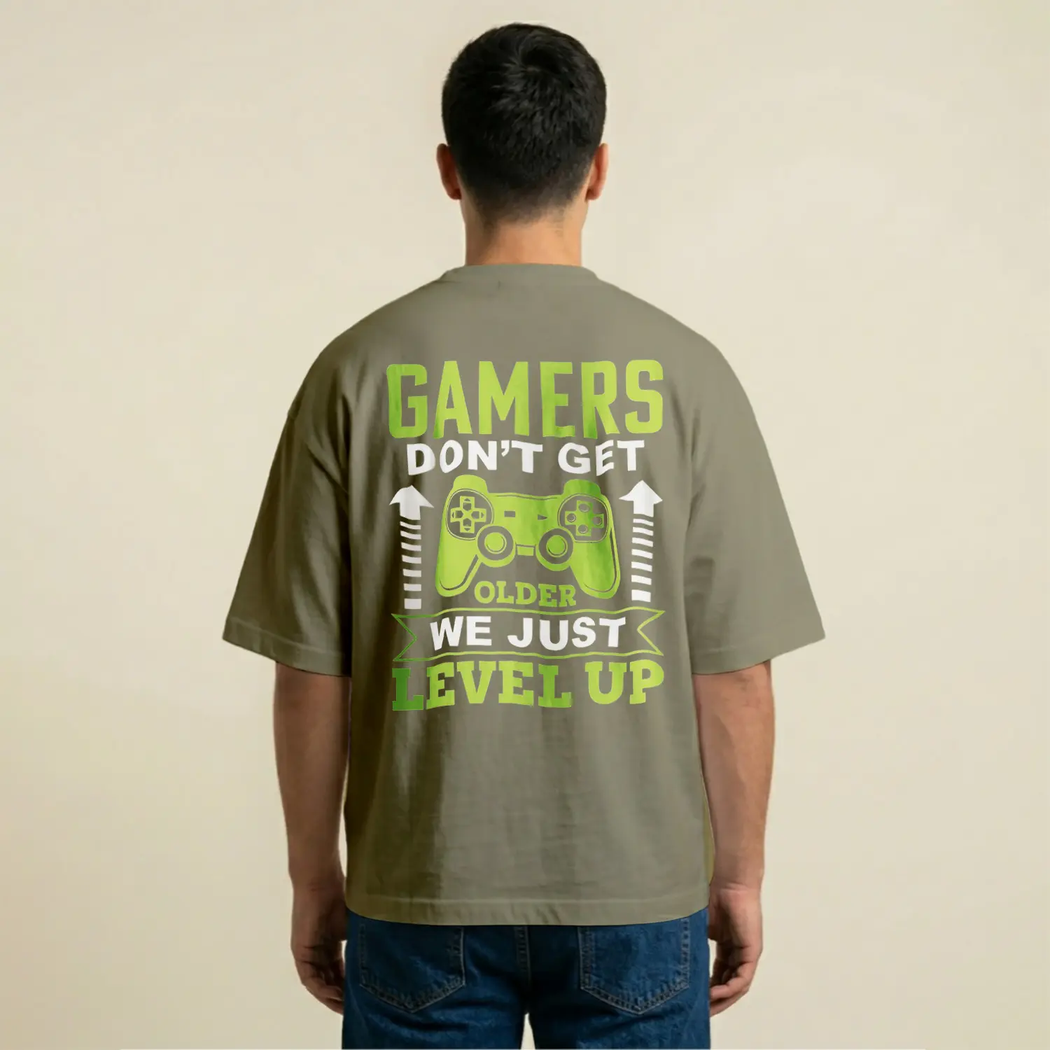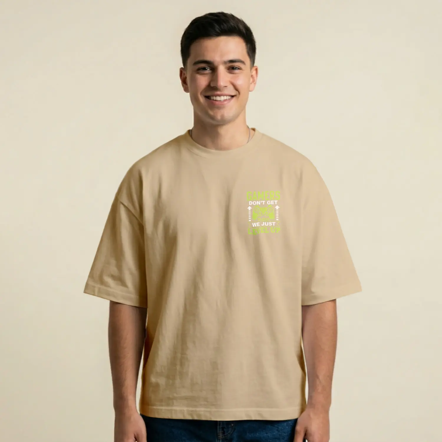 Level Up Temalı Casual Baskılı Erkek Tişörtü