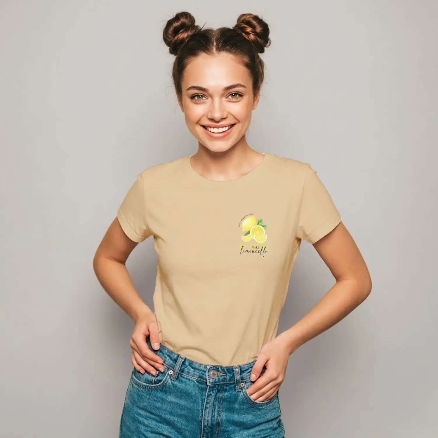 Limon Desenli Ferah Yaz Temalı Baskılı Kadın Tişört Haki 2 Tişörtü