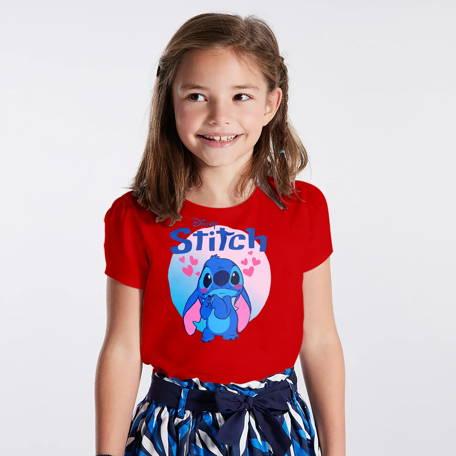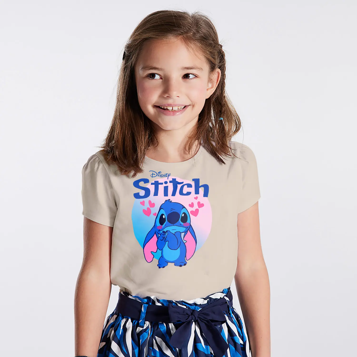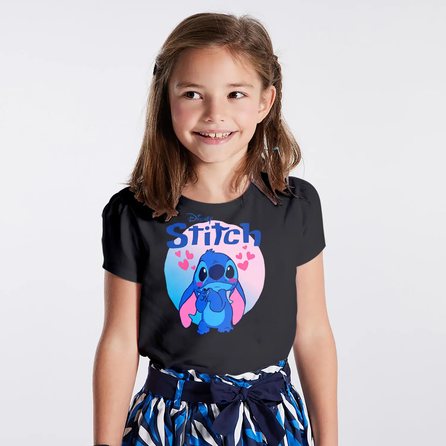 Mavi Uzayli Yaratik Kalpli Figürlü Baskılı Kiz Çocuk Tisortu Tişörtü