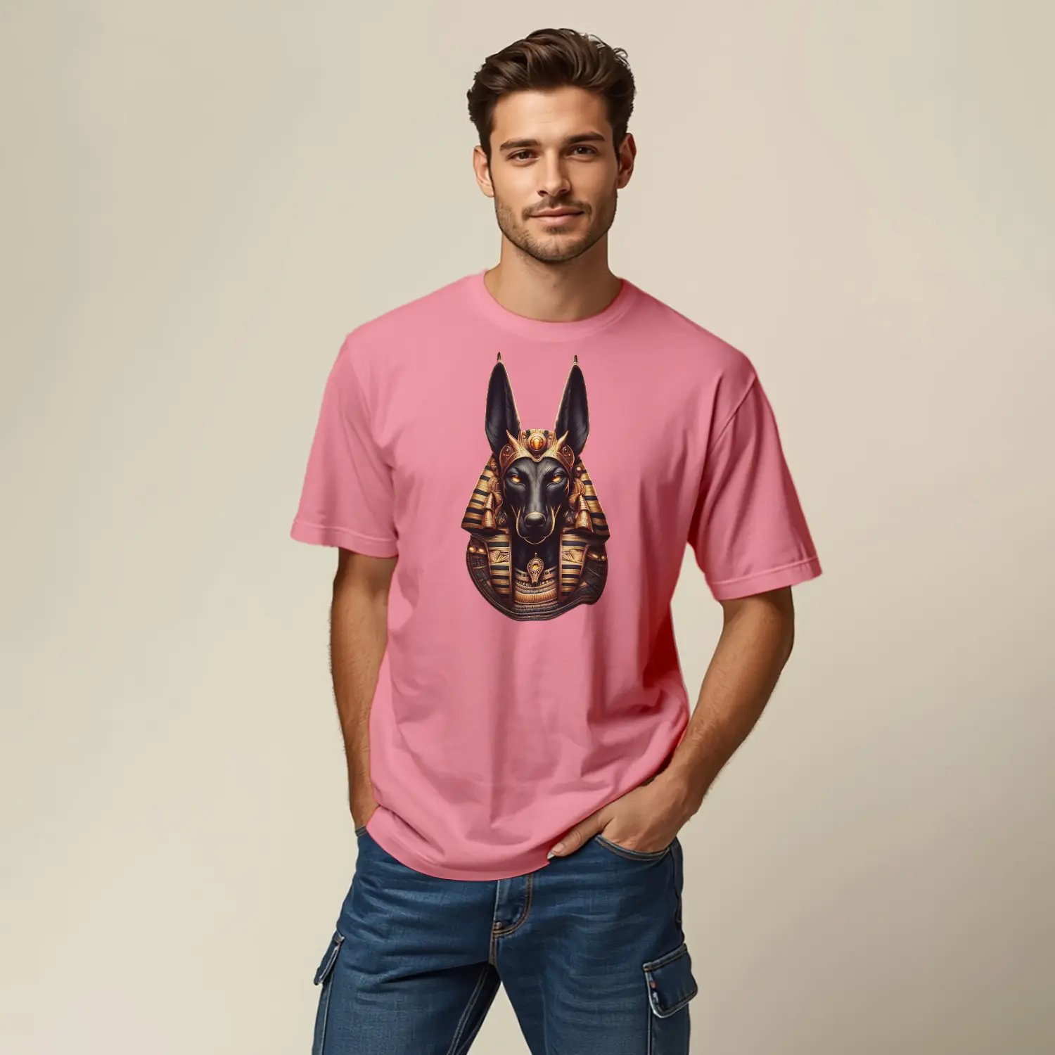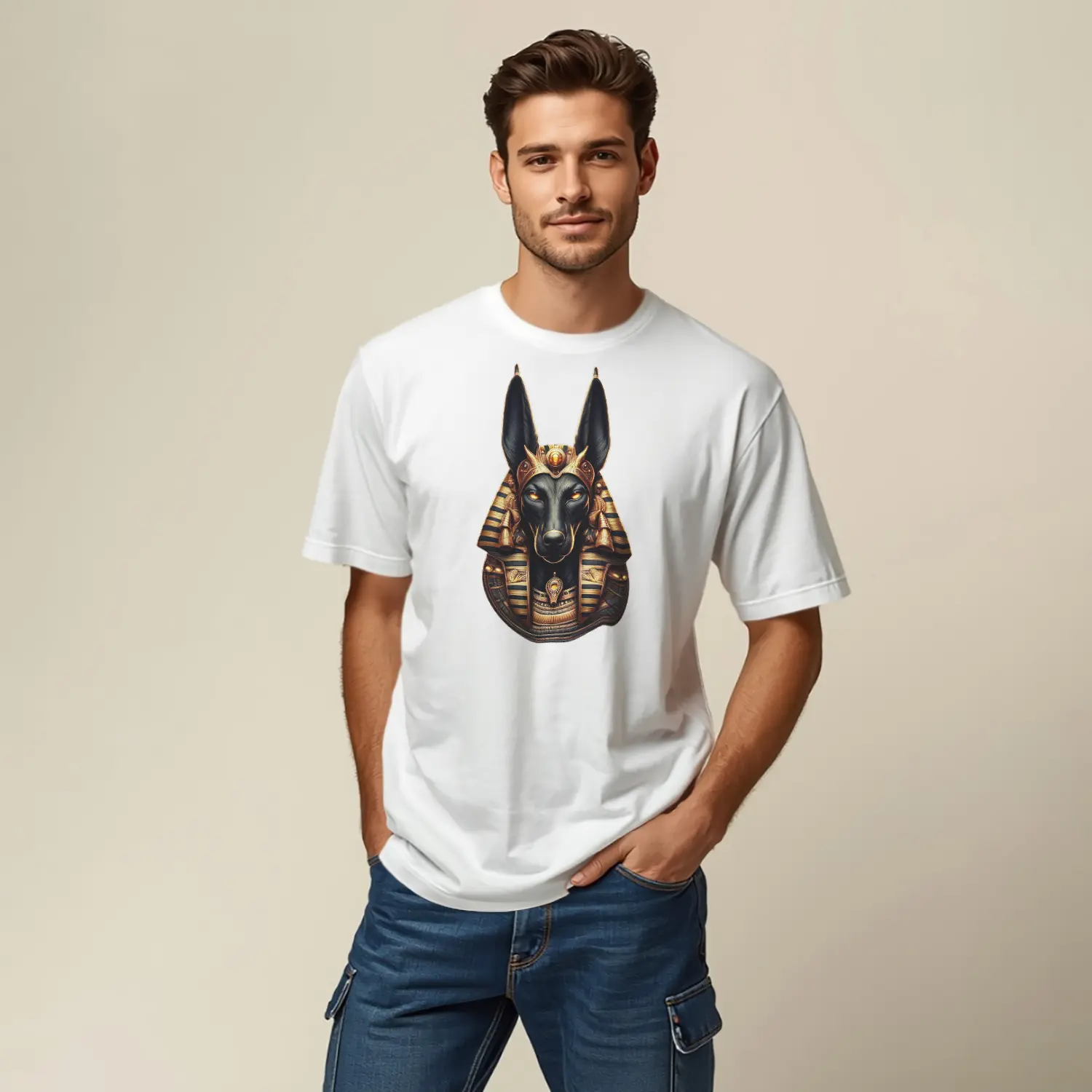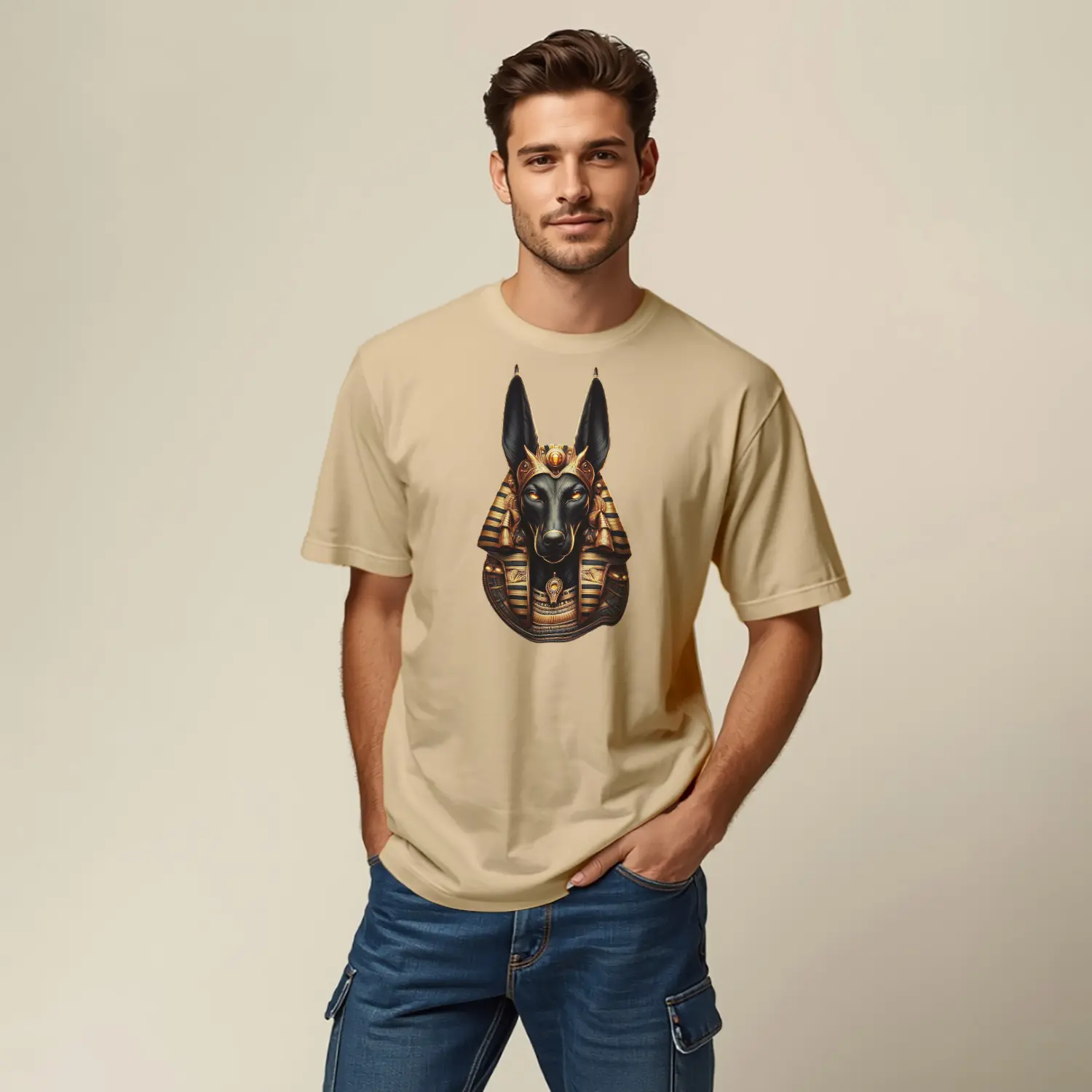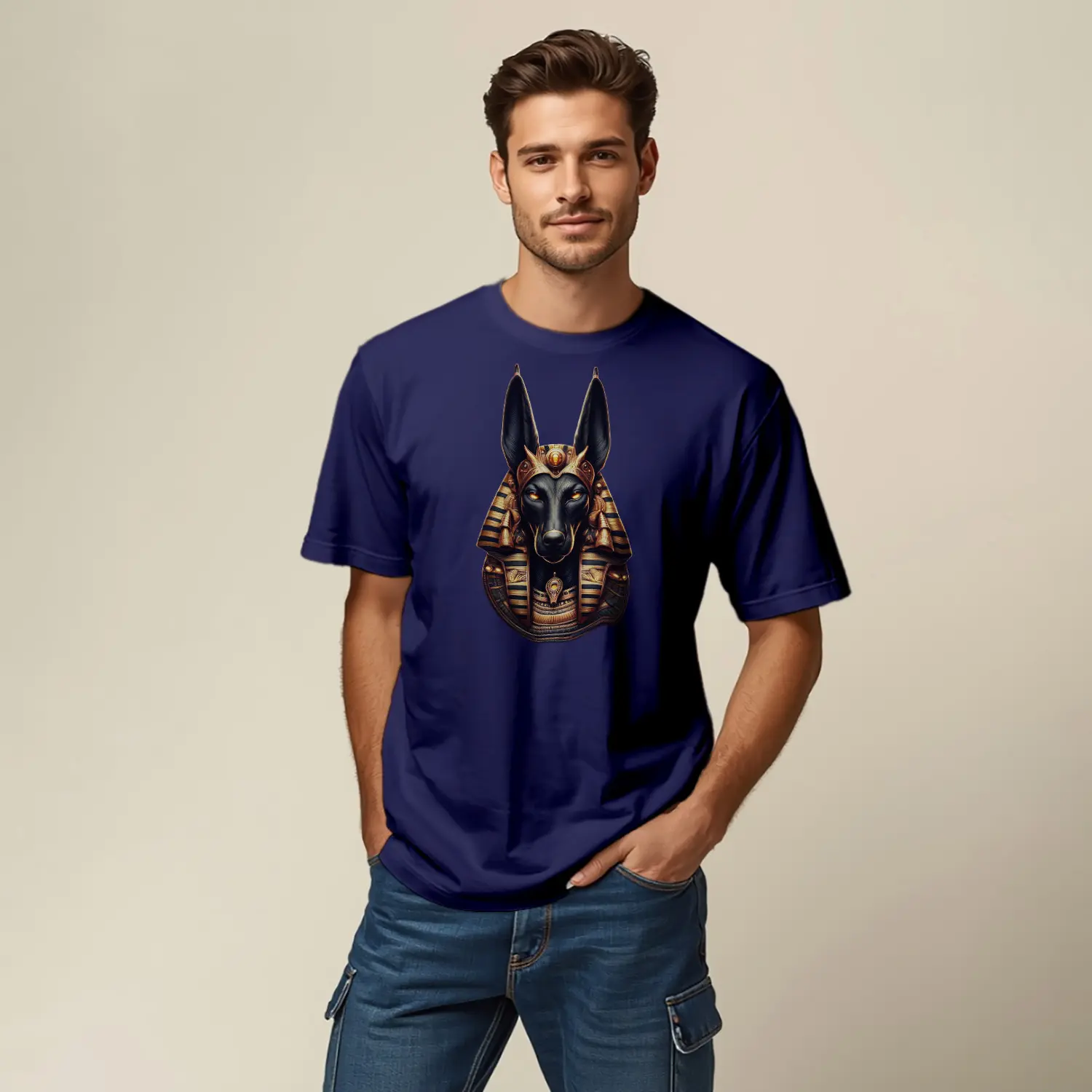 Mistik Anubis Temalı Koyu Tasarim Baskılı Erkek Tişörtü