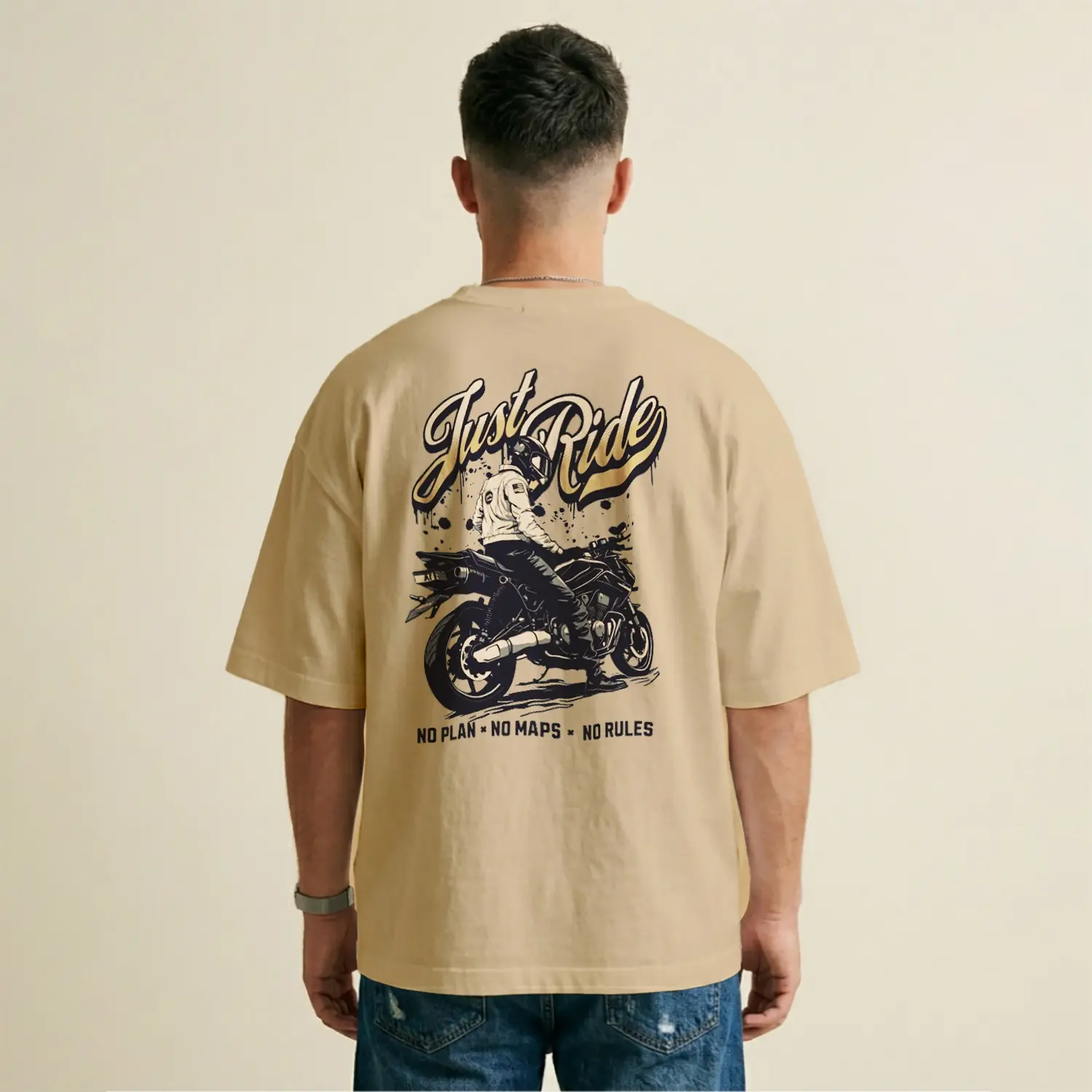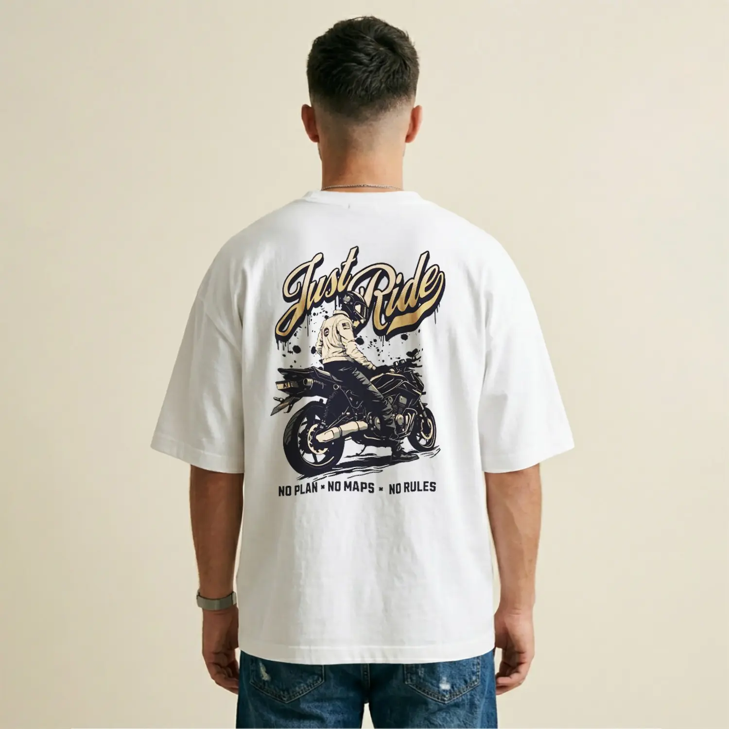 Motosiklet Surucu Desenli Rahat Baskılı Erkek Tişörtü