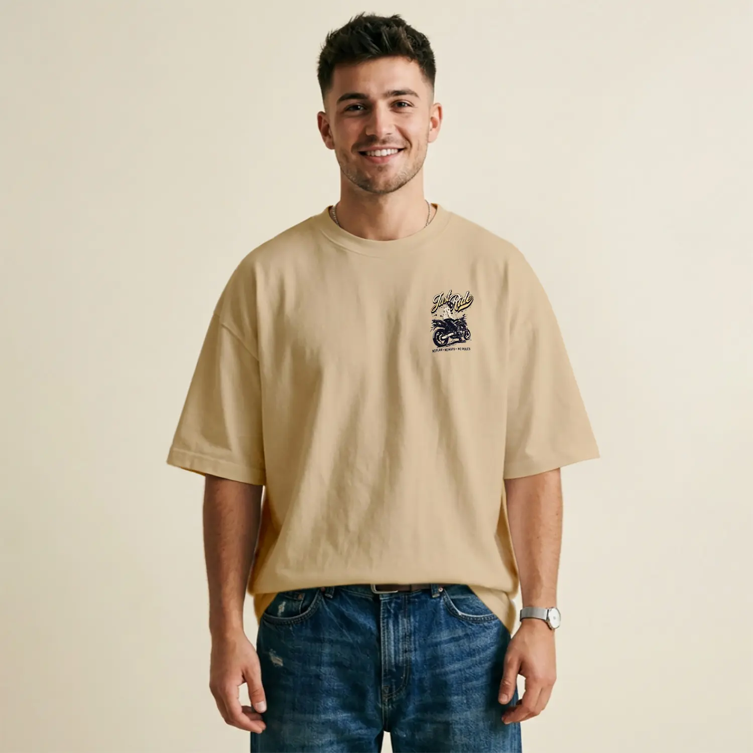 Motosiklet Sürüş Temalı Grafik Baskılı Erkek Tişört