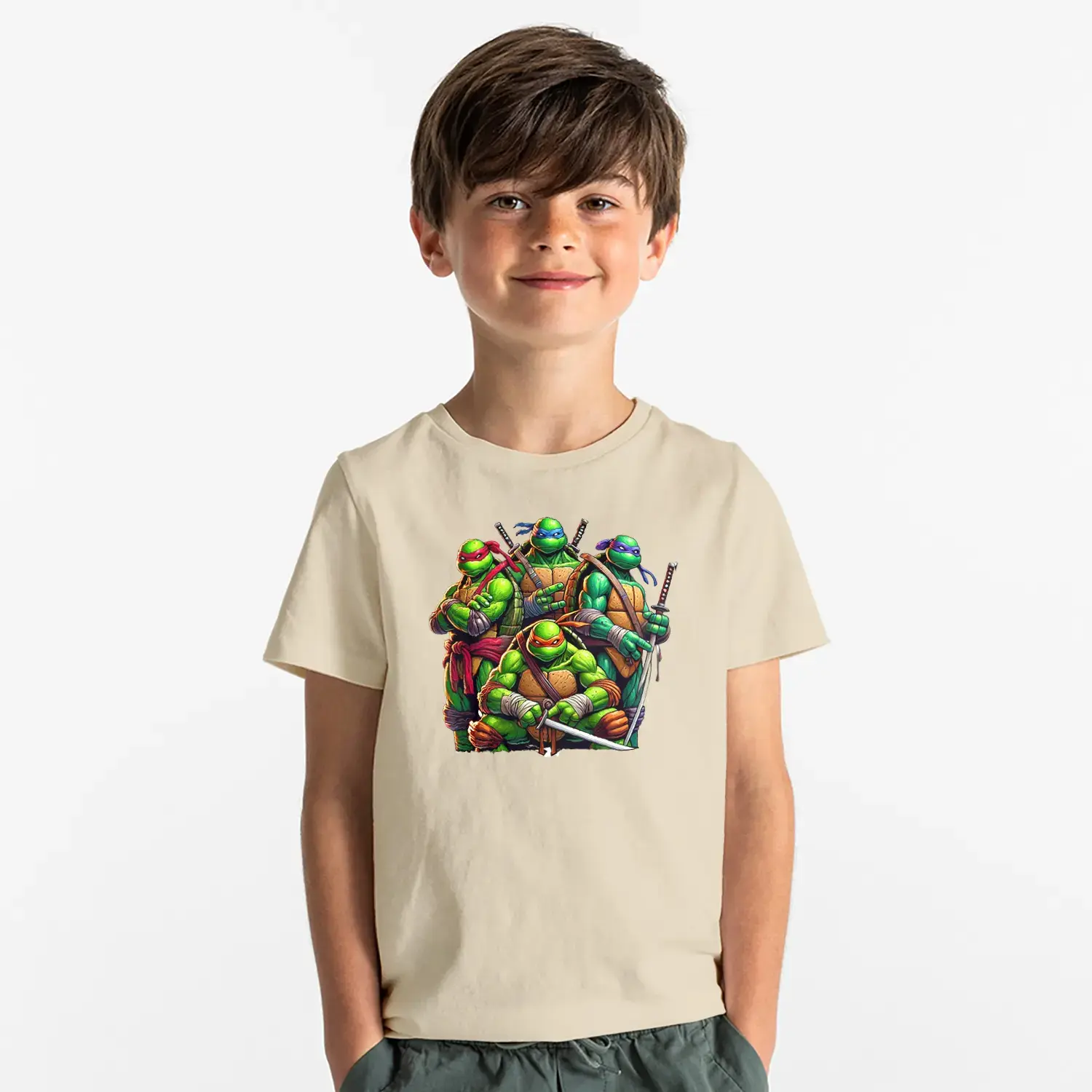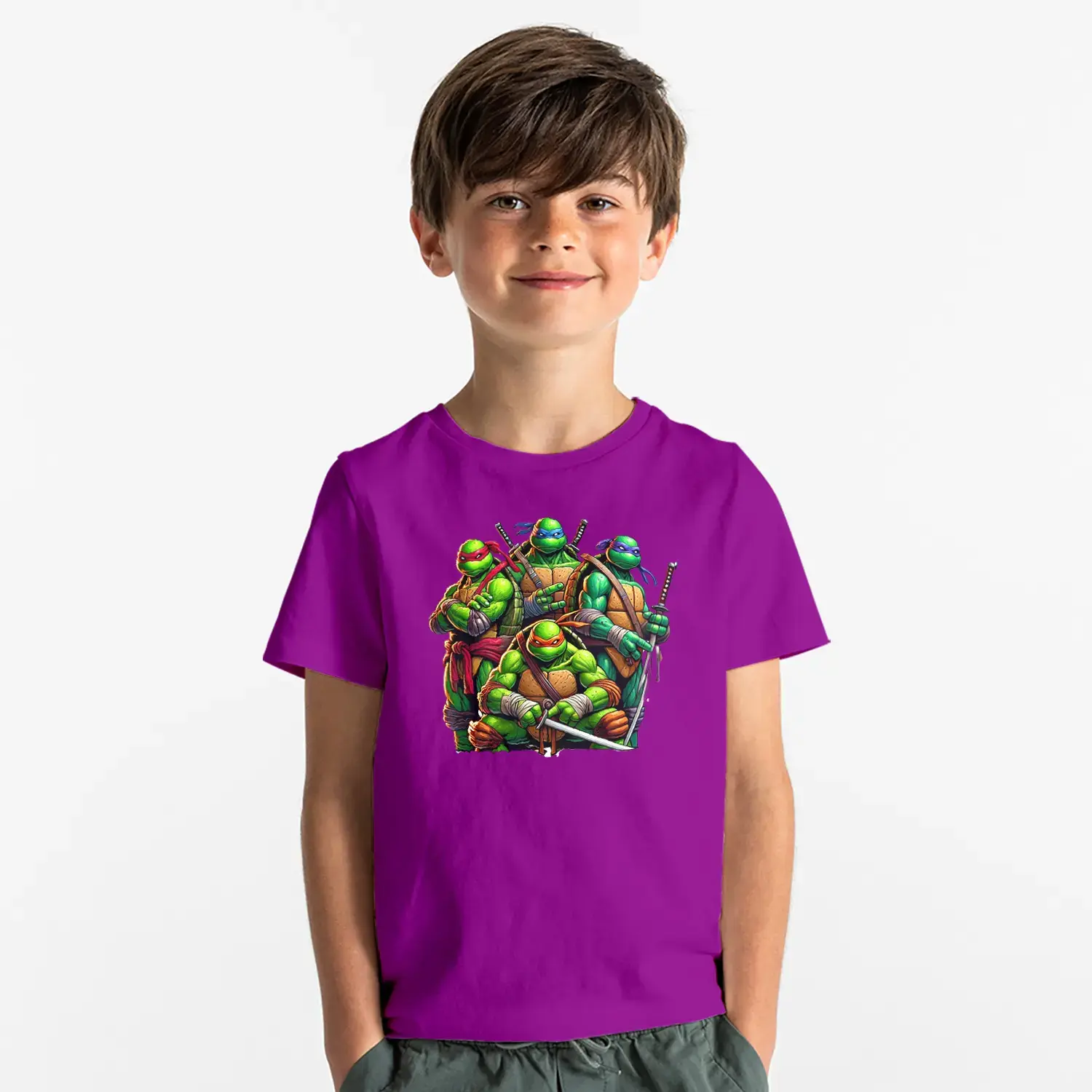 Ninja Kaplumbaga Dortlusu Aksiyon Baskılı Erkek Çocuk Tişörtü