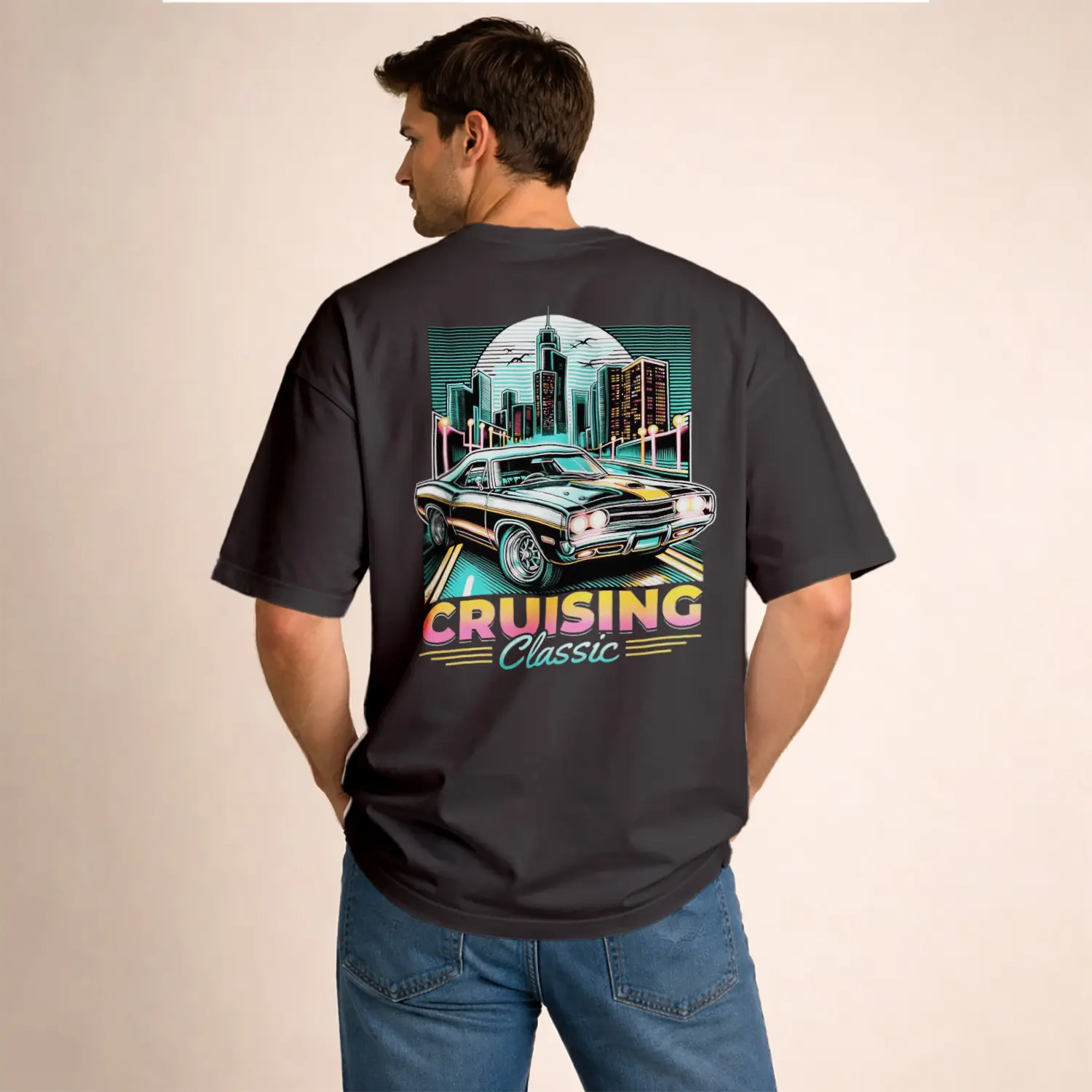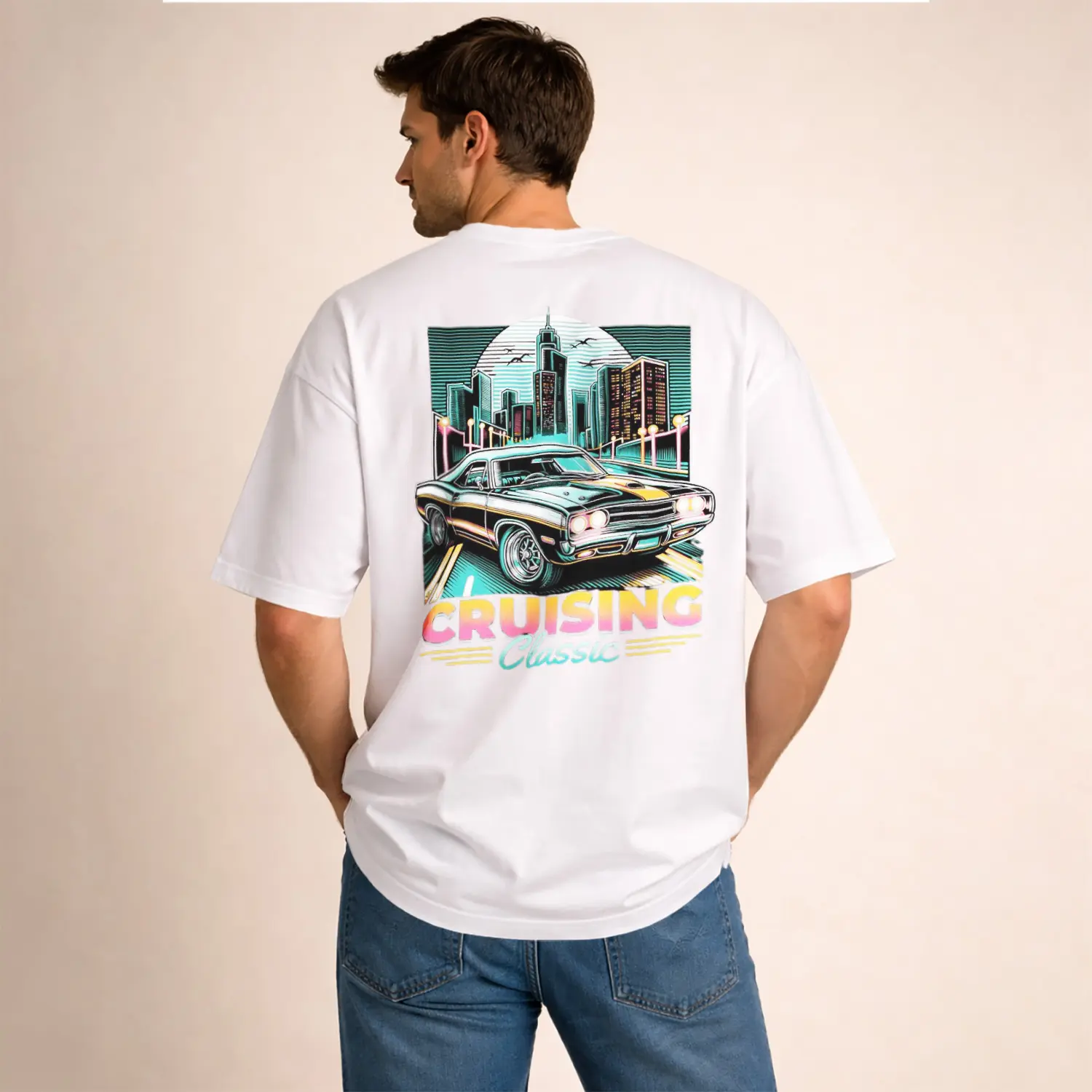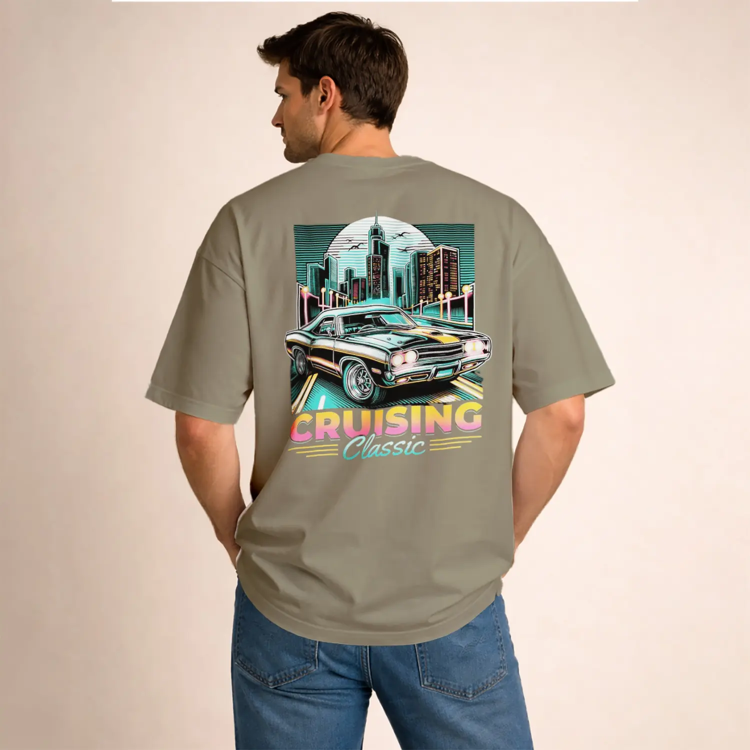 Nostaljik Araba ve Şehir Baskılı Erkek Tişört