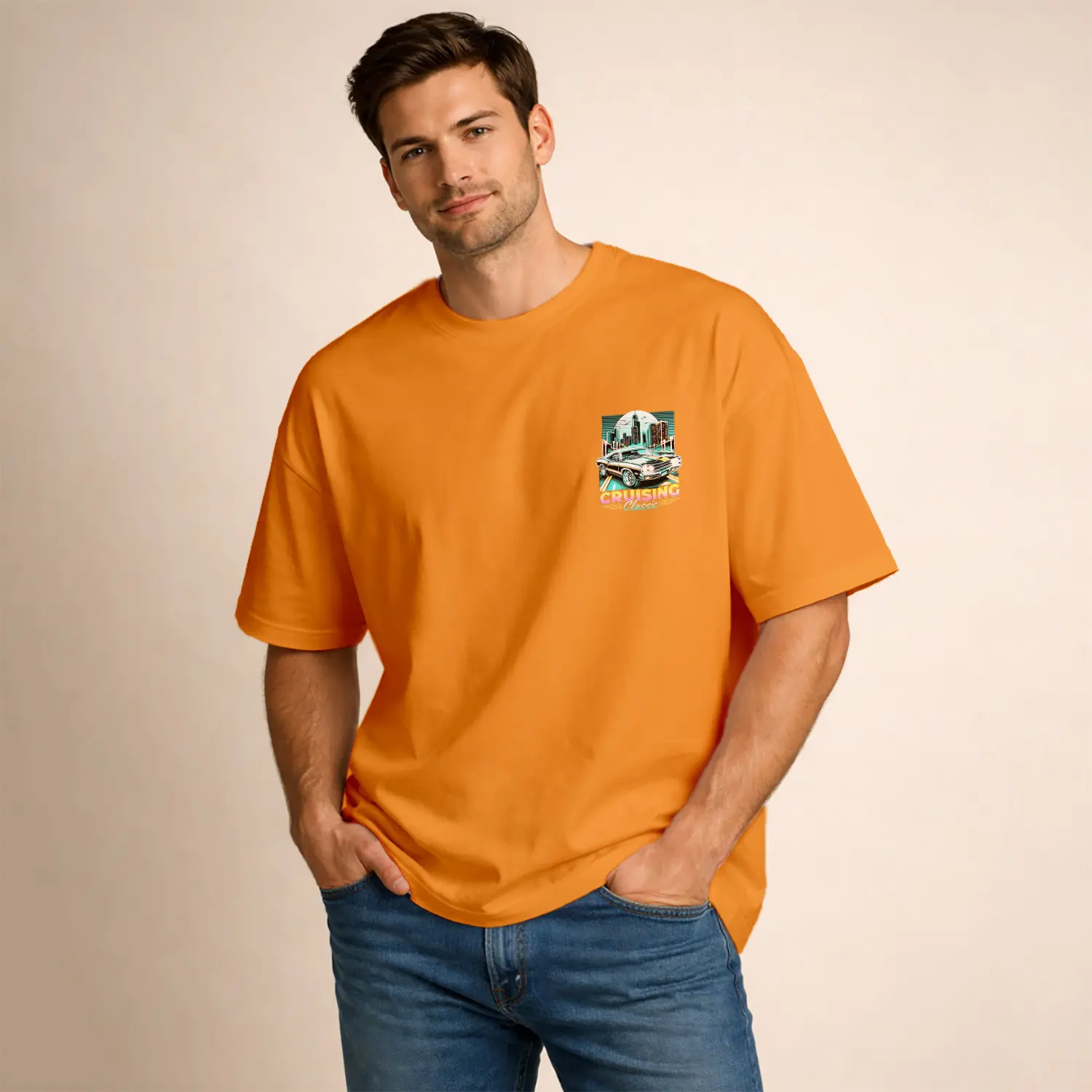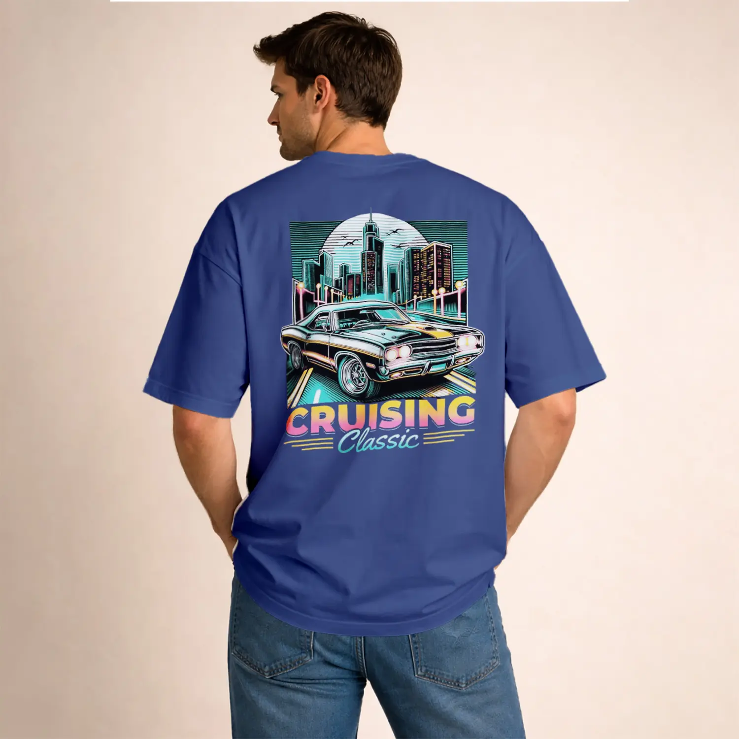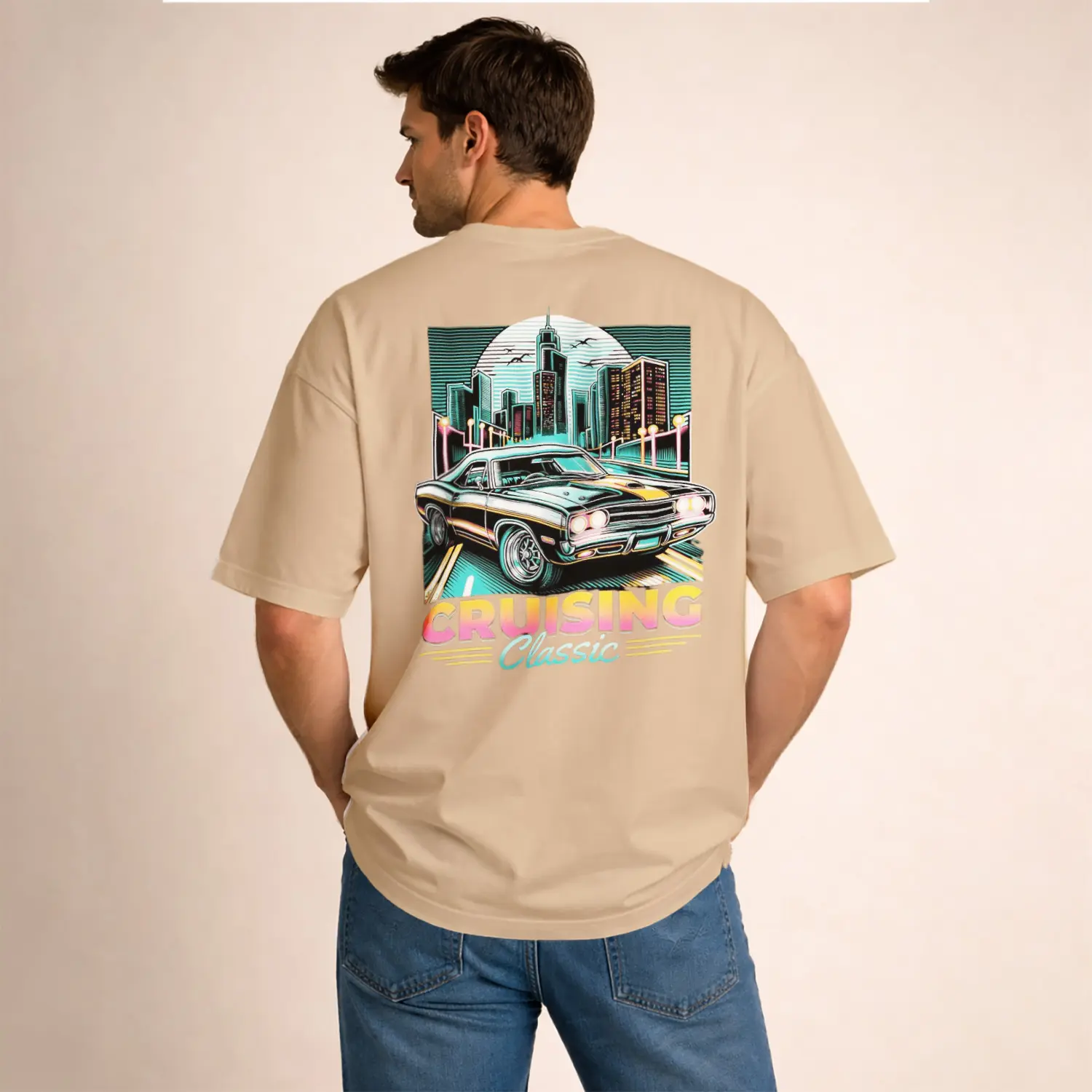 Nostaljik Araba ve Şehir Baskılı Erkek Tişört