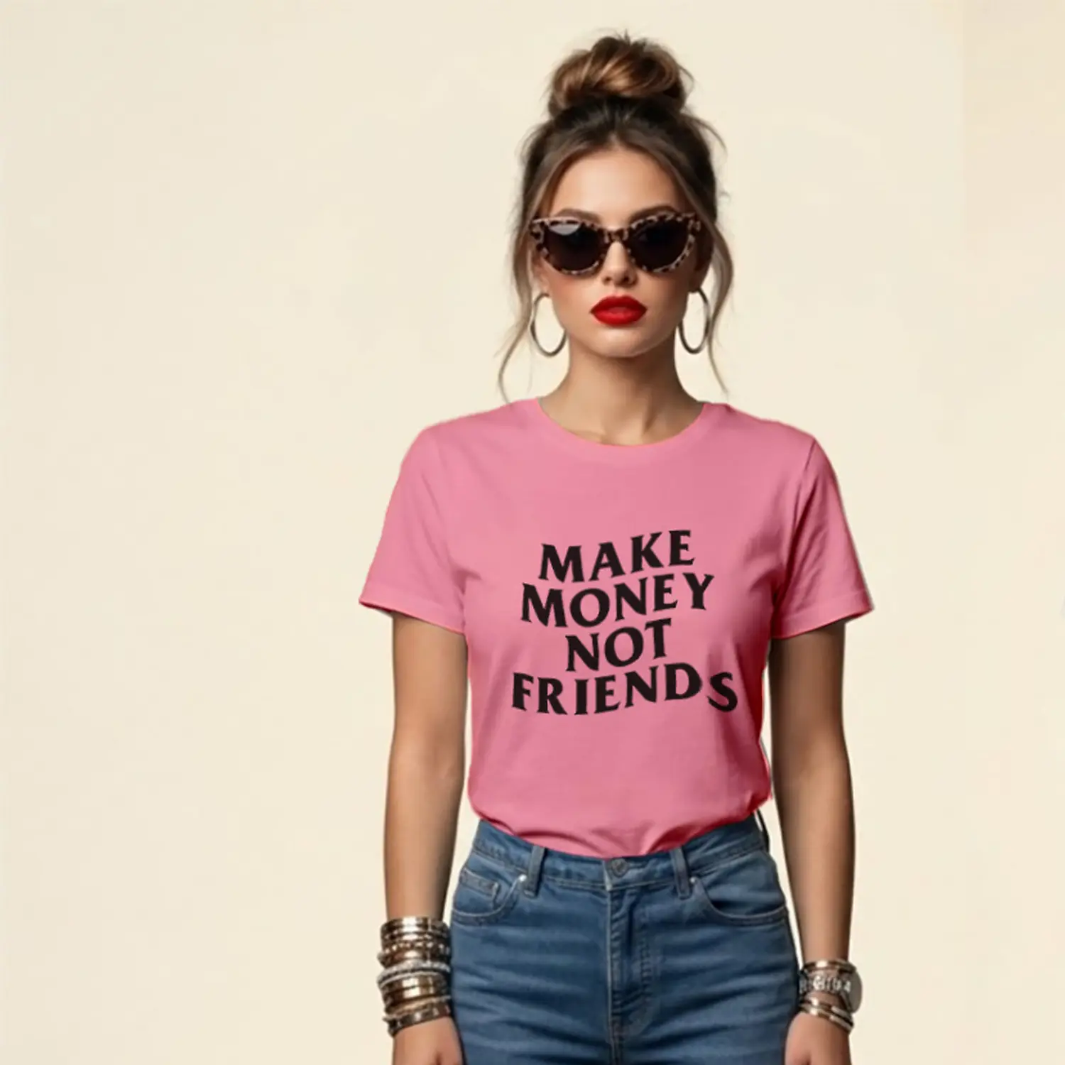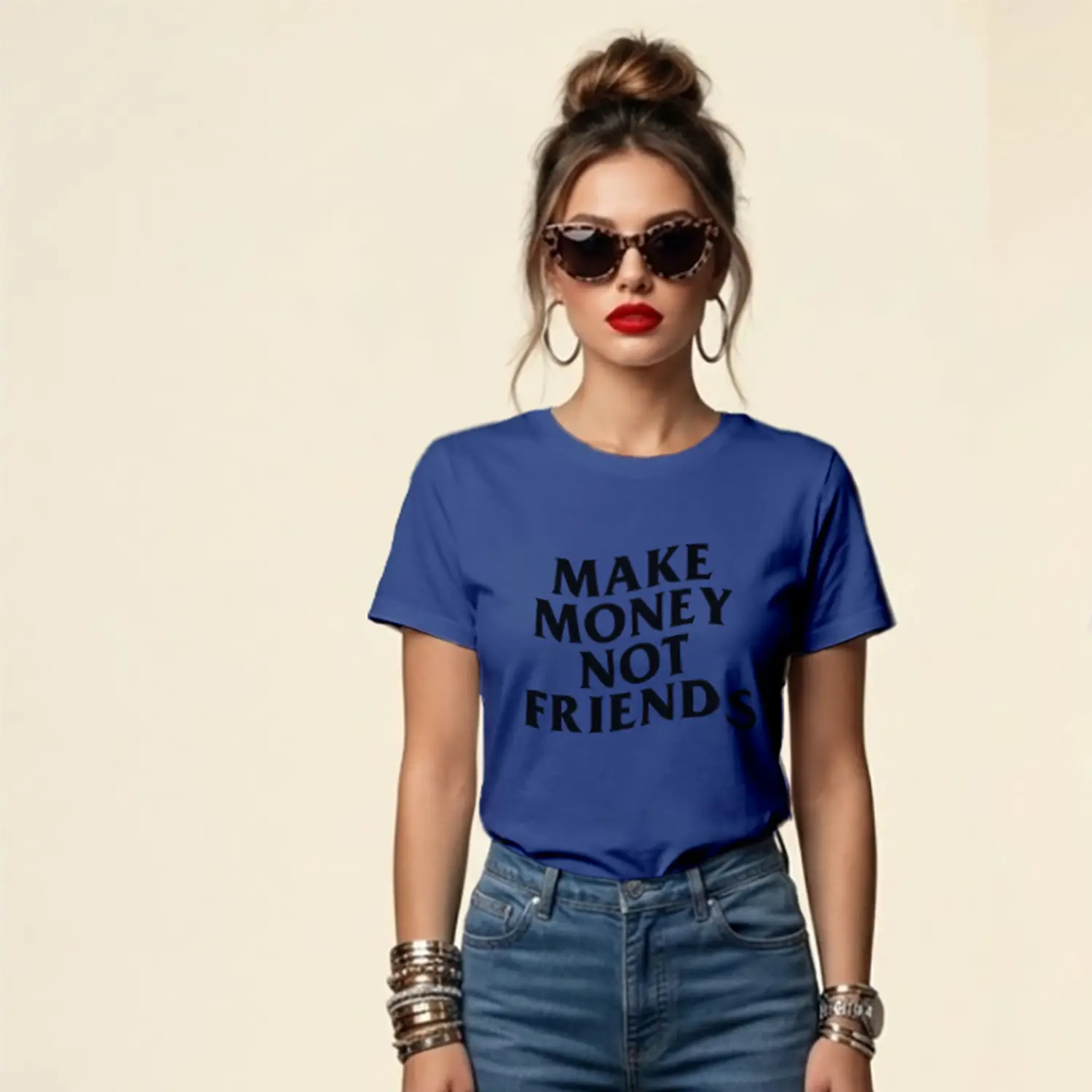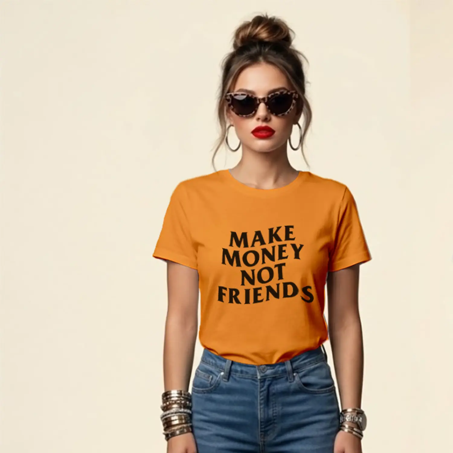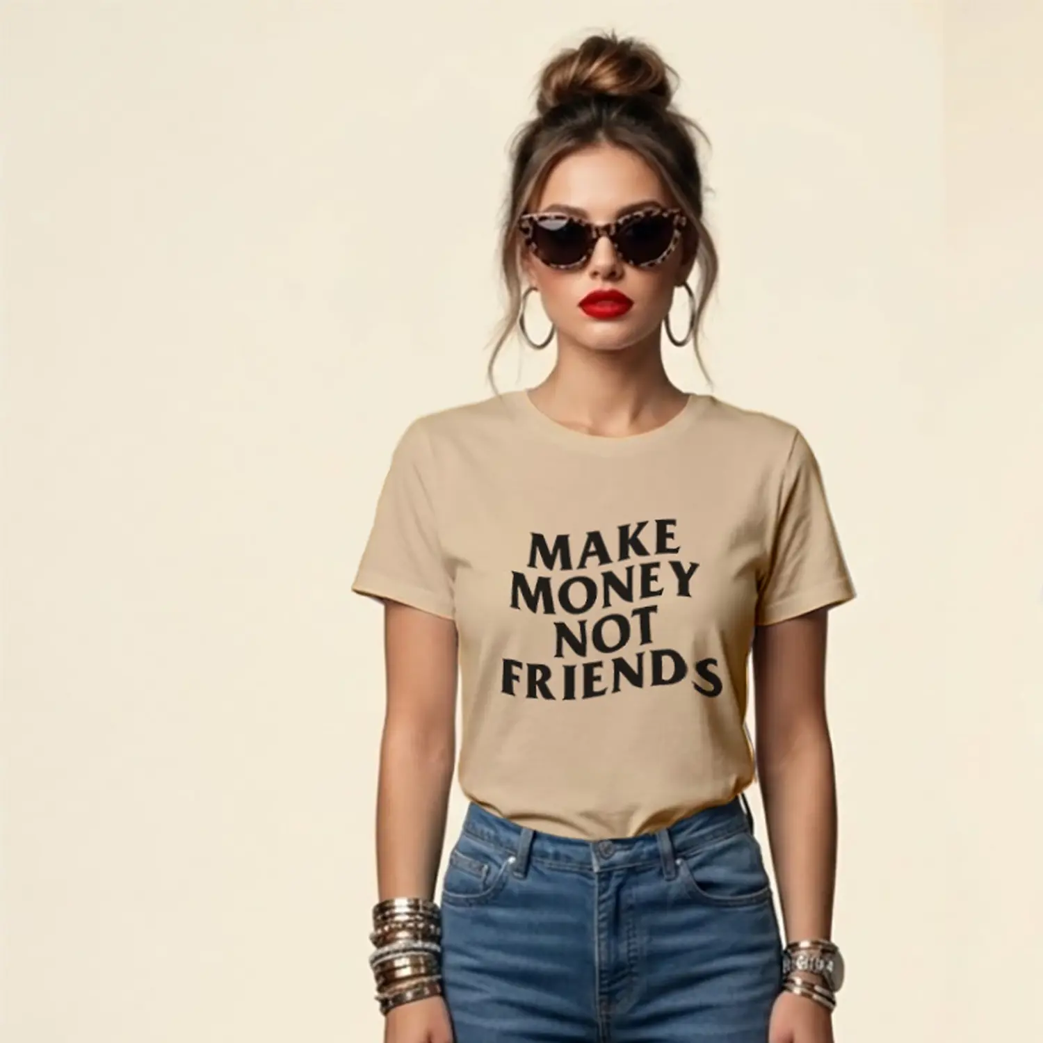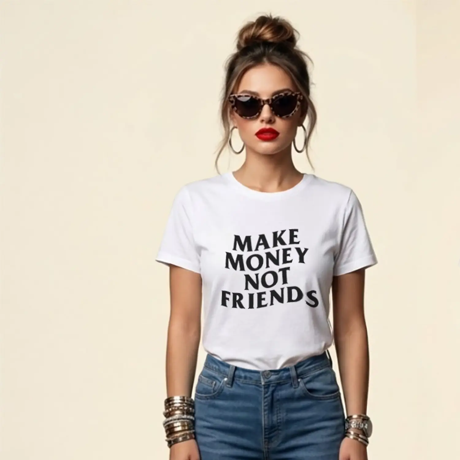 Para Odaklı Yazılı Baskılı Kadın Tişört