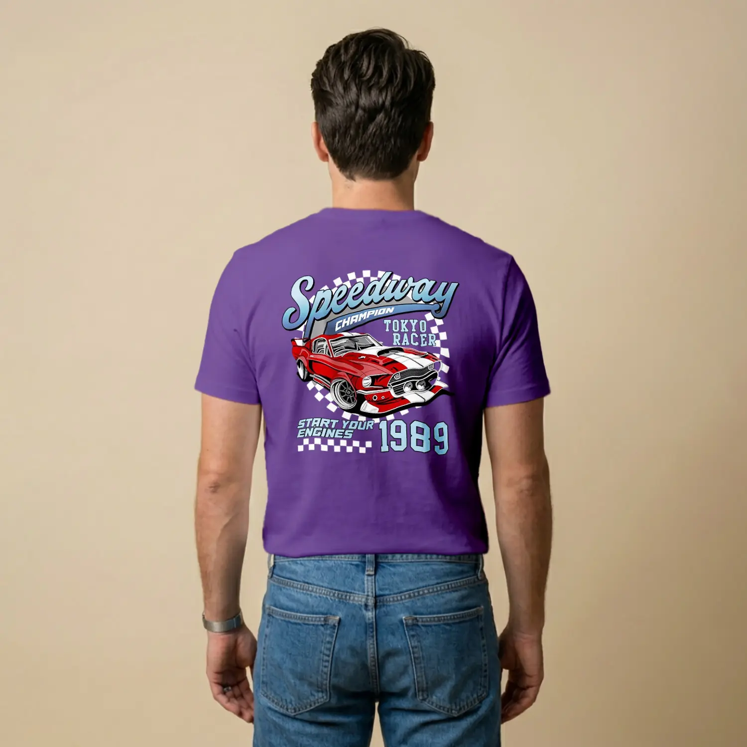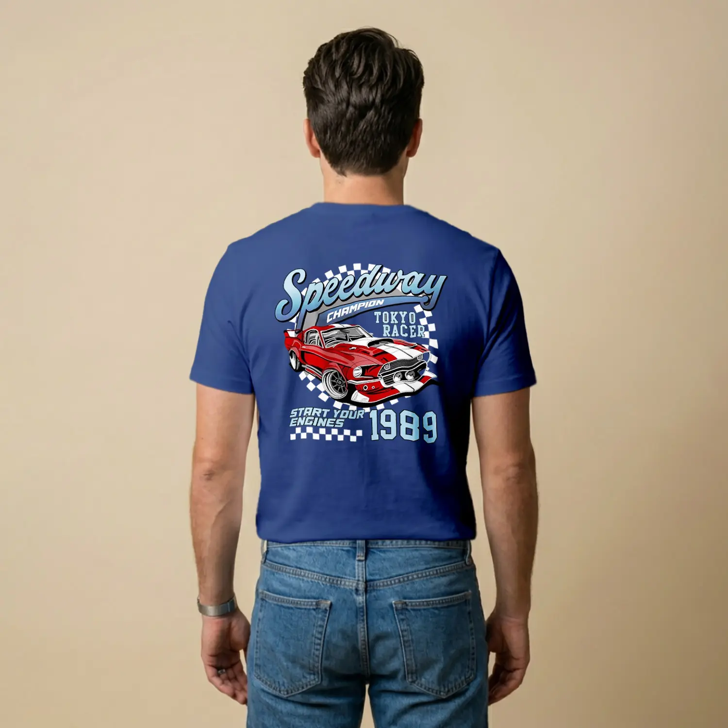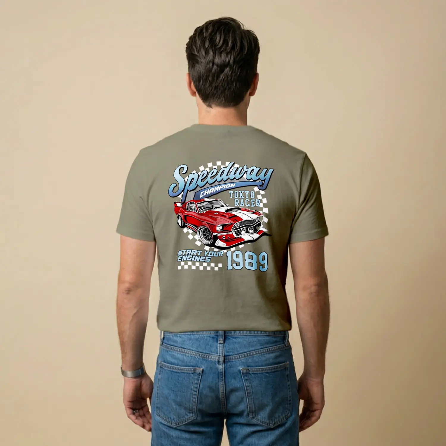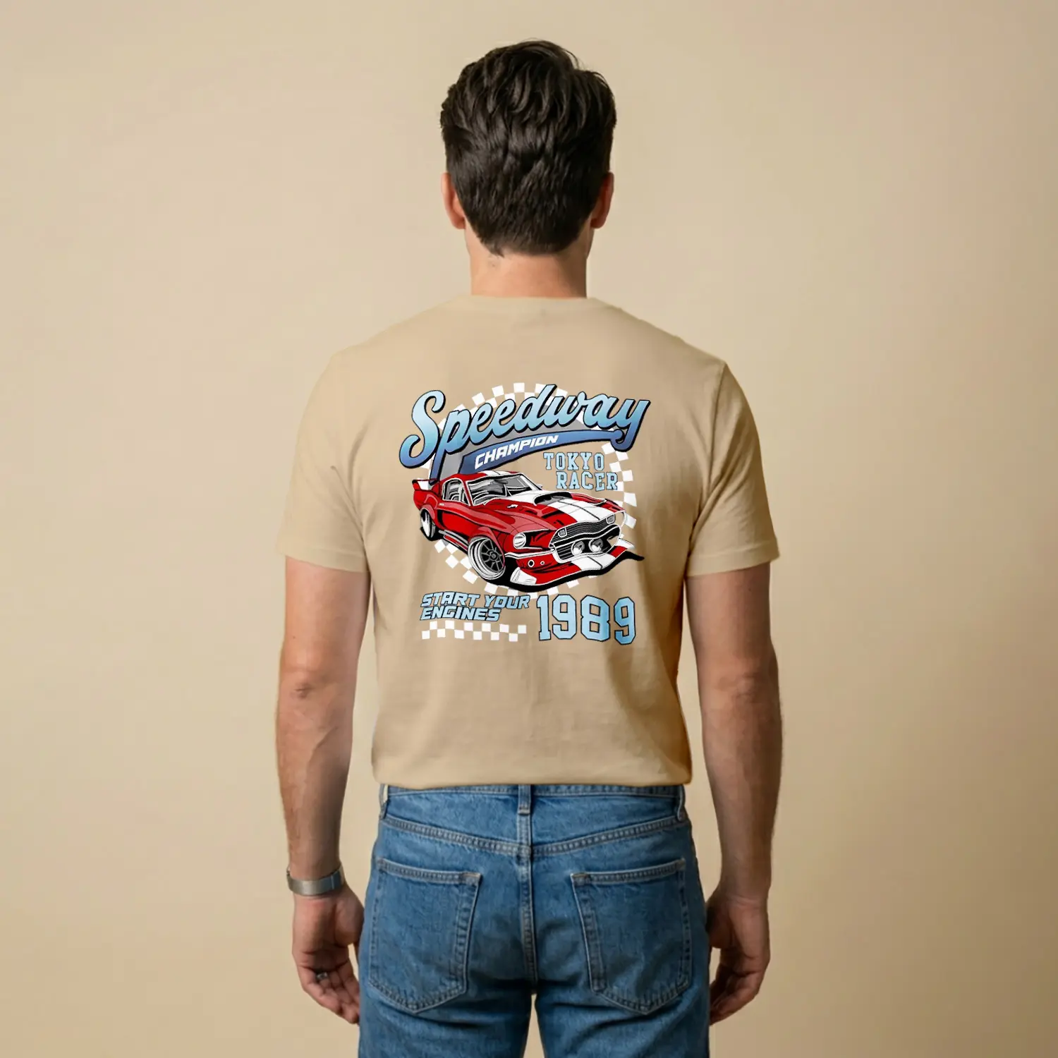 Retro Yaris Arabasi Desenli Baskılı Erkek Tişörtü