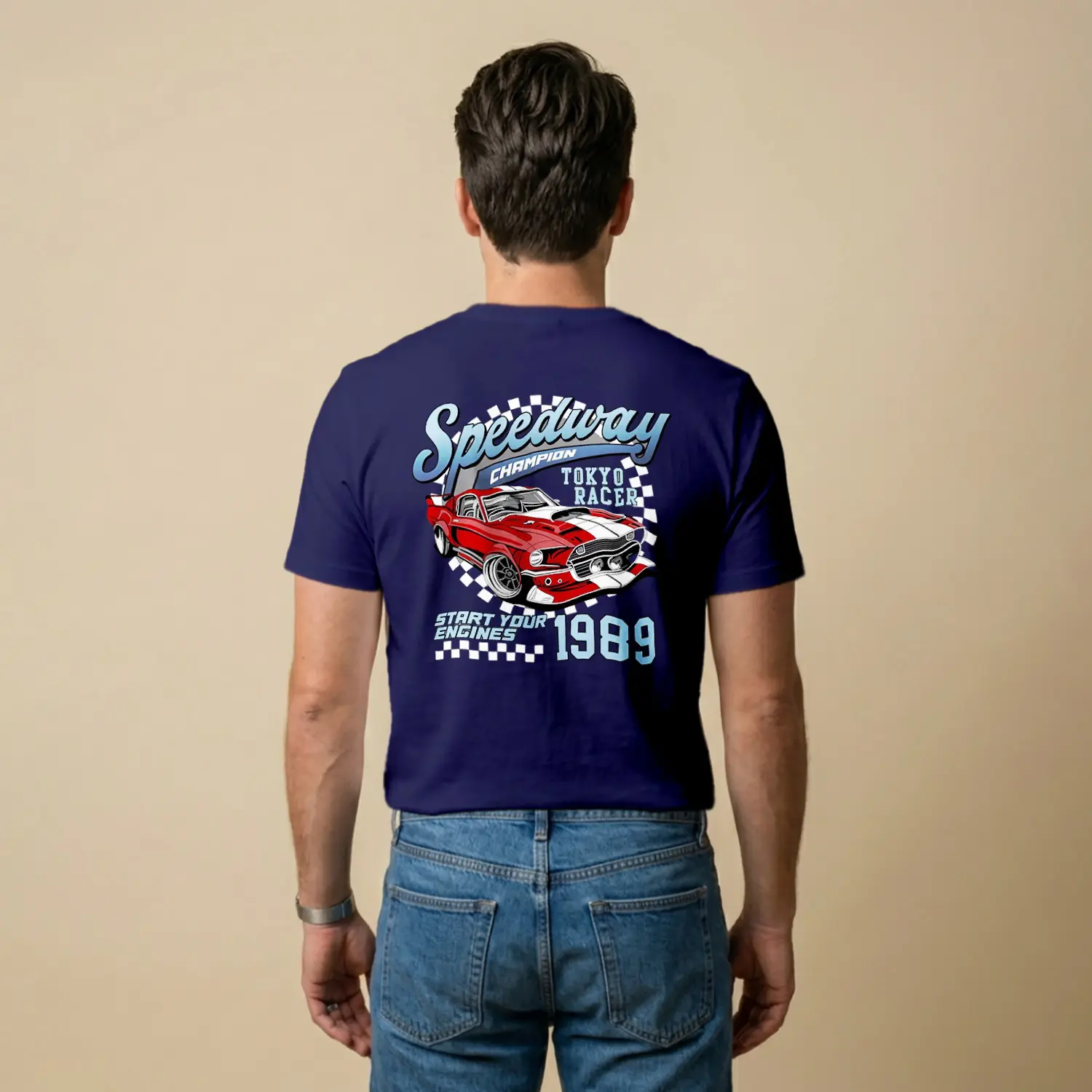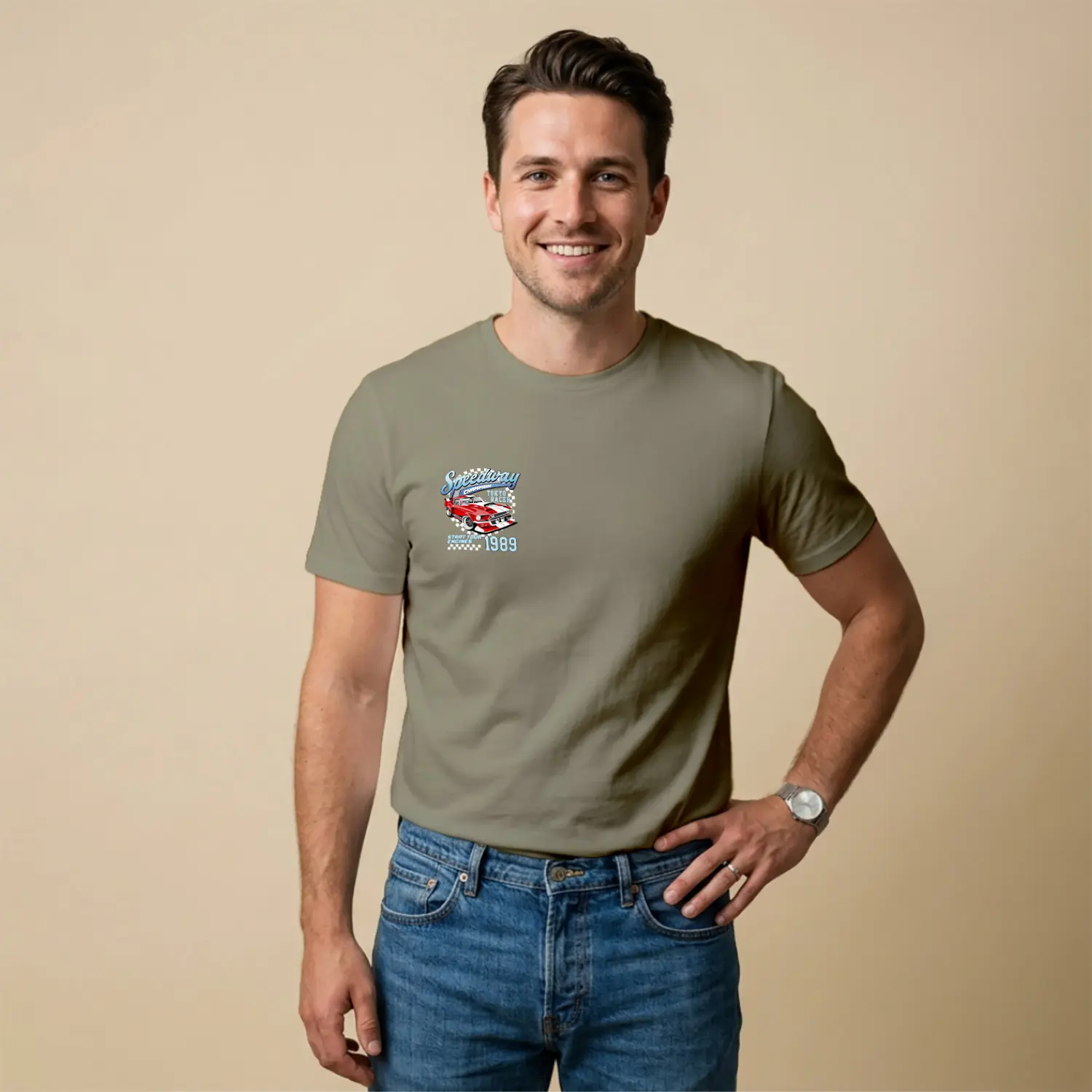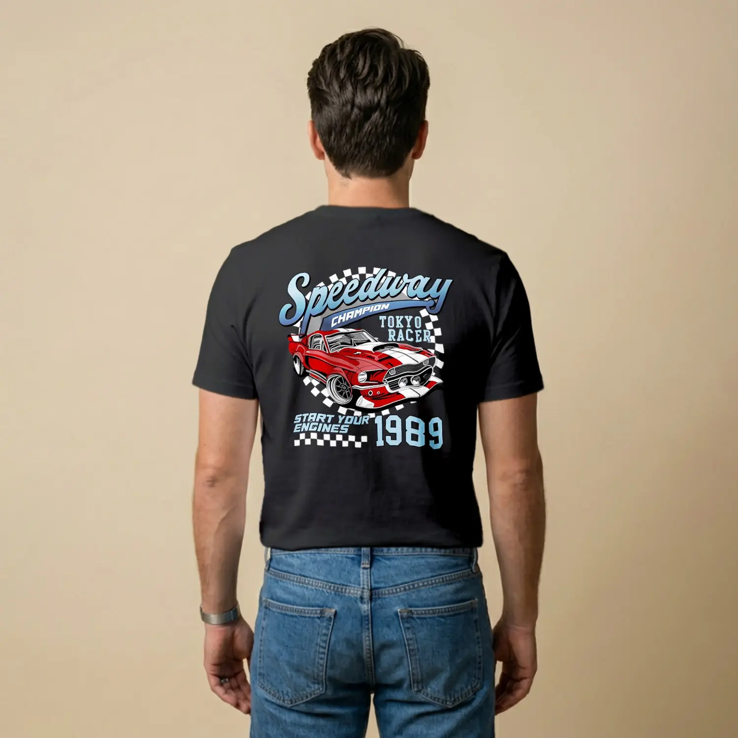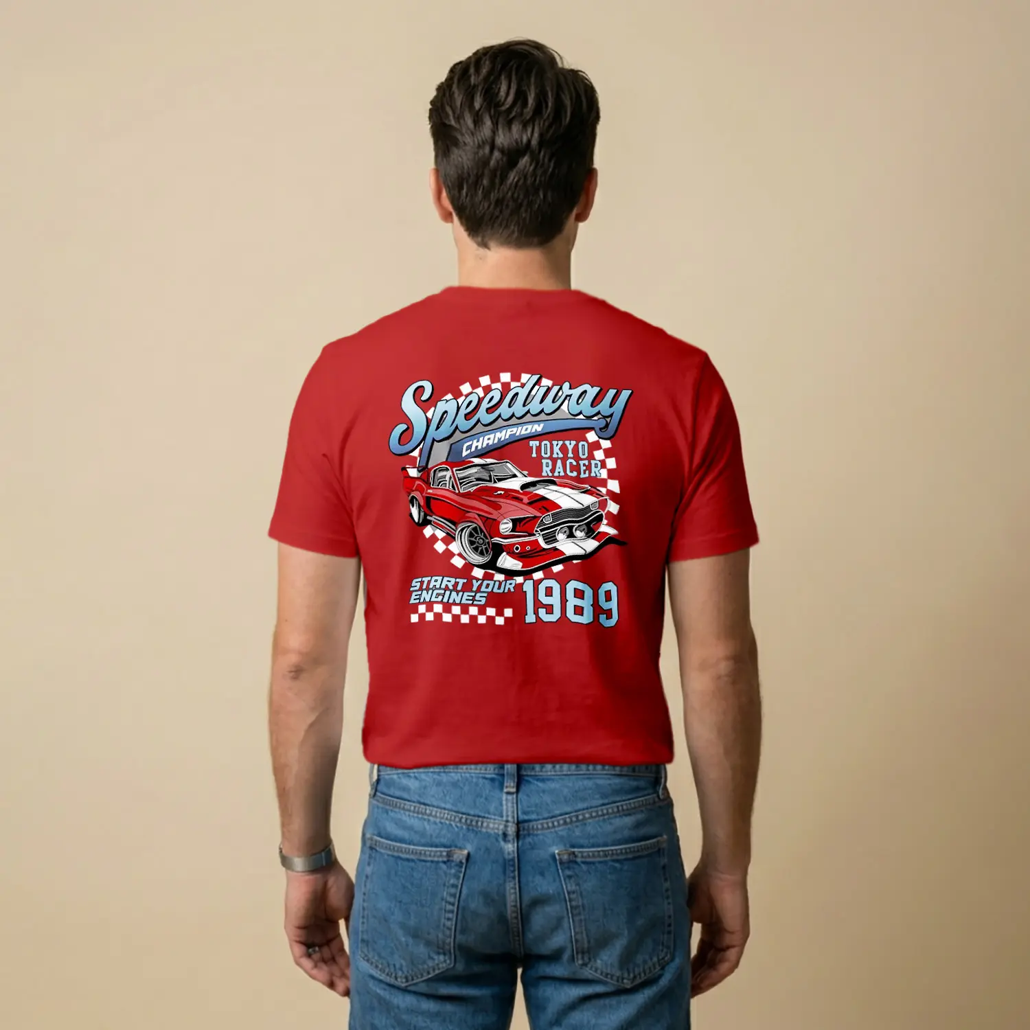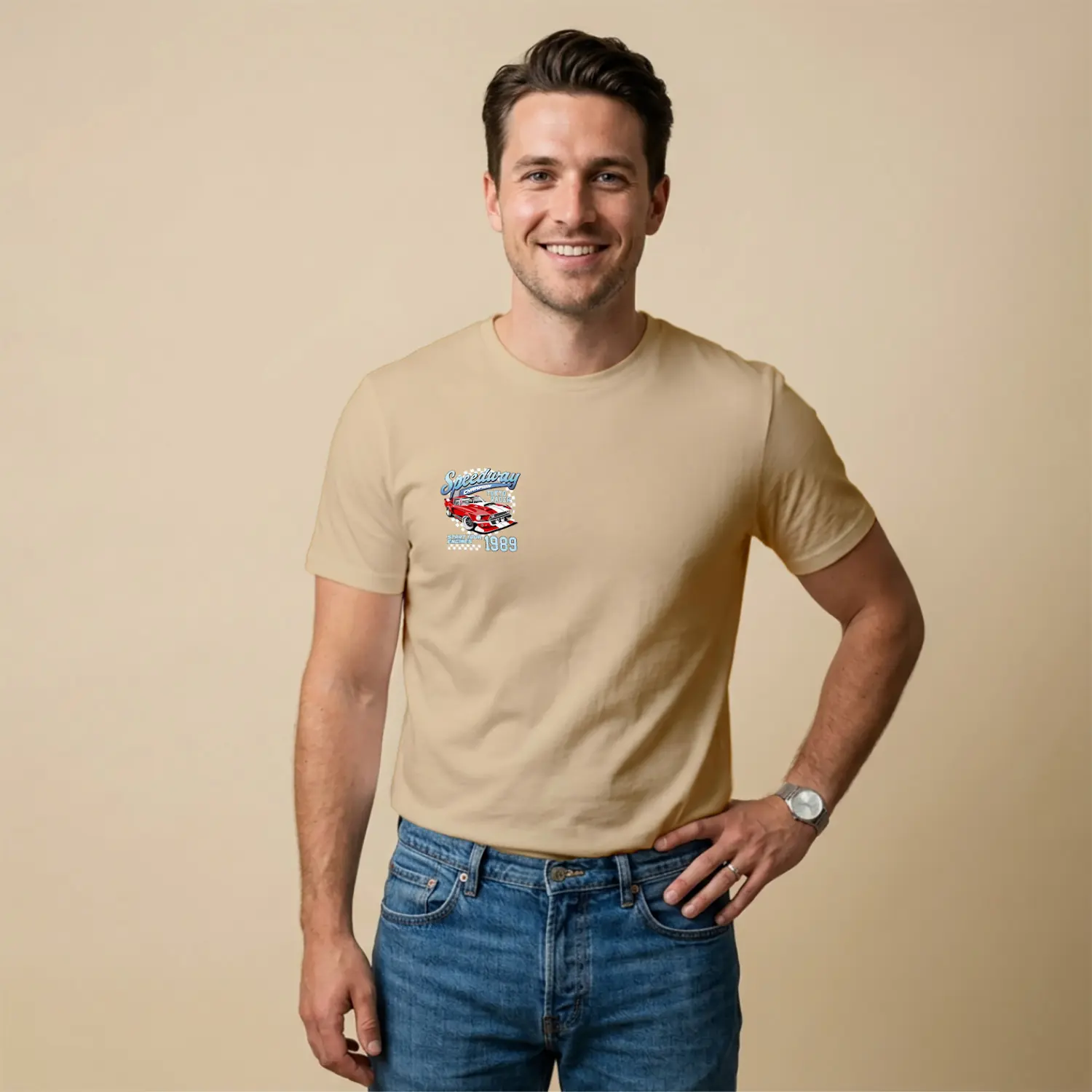 Retro Yaris Arabasi Desenli Baskılı Erkek Tişörtü