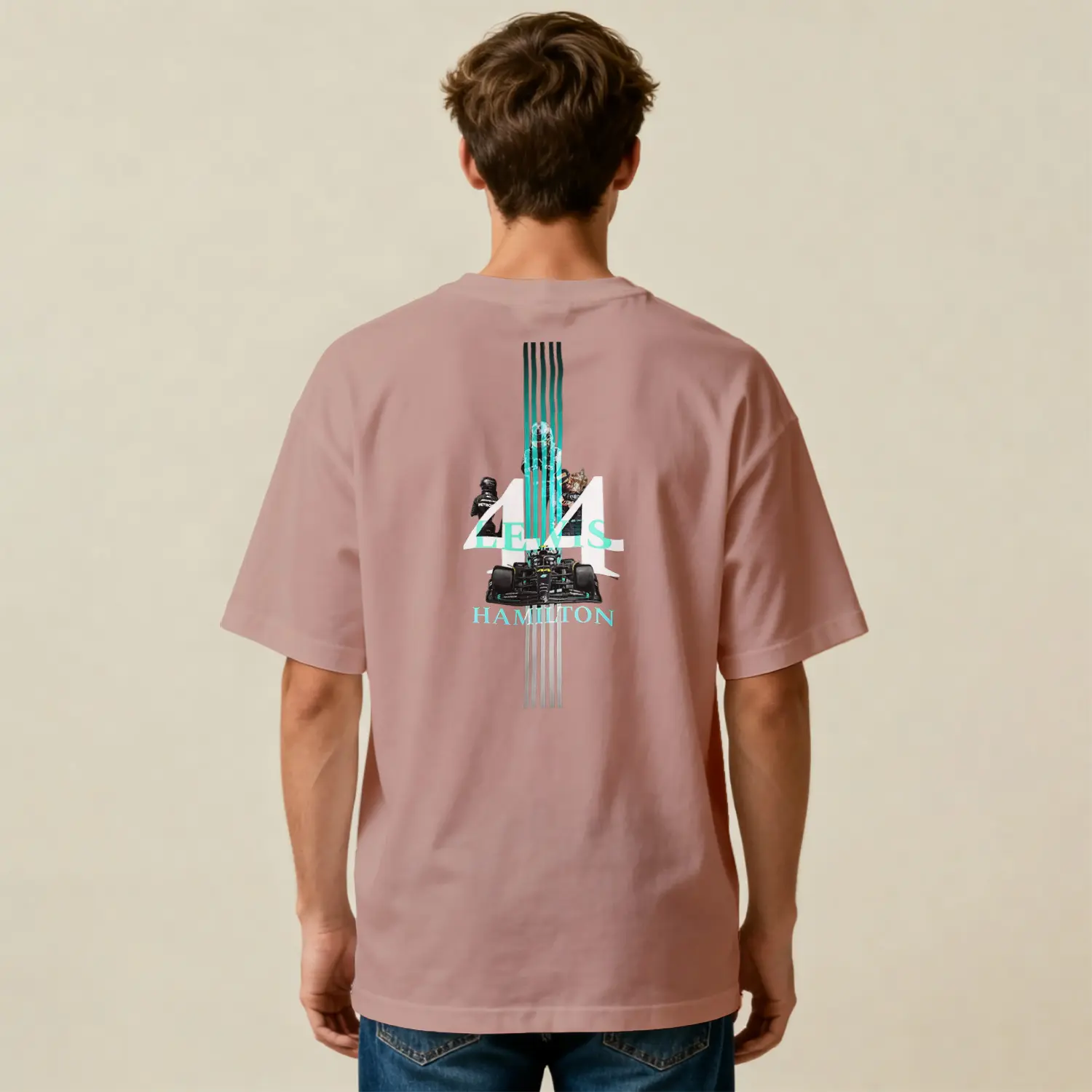 Retro Yaris Arabasi Temalı Pembe Baskılı Erkek Tişörtü