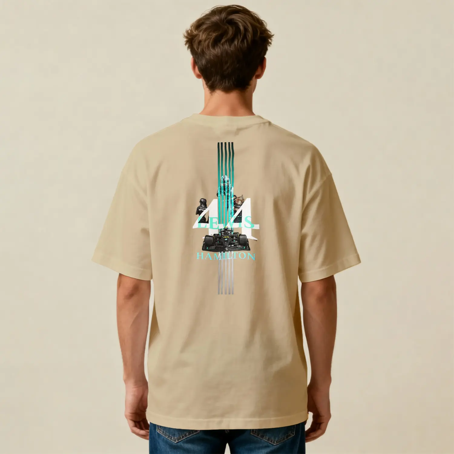 Retro Yaris Temalı Bej Renk Baskılı Erkek Tişörtü