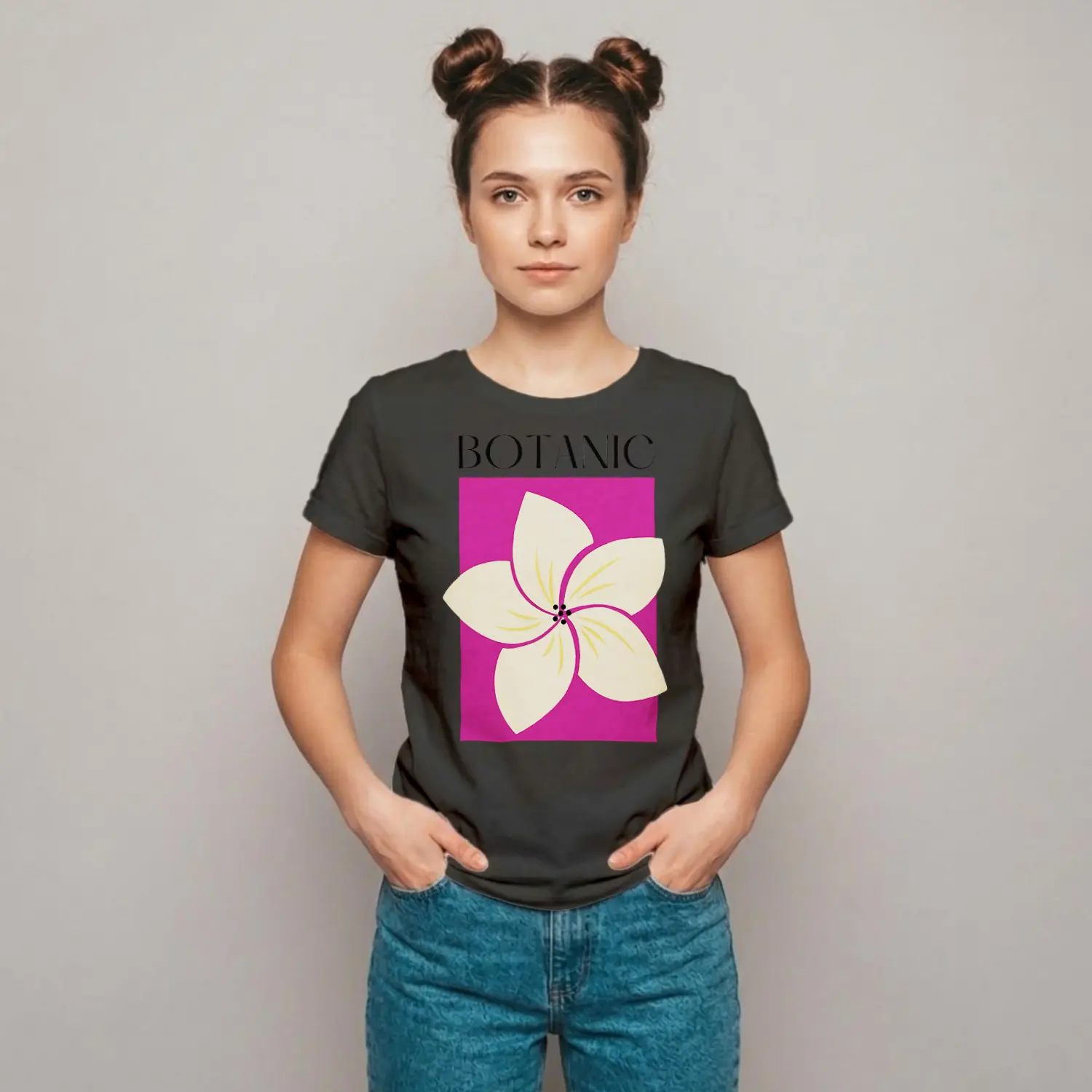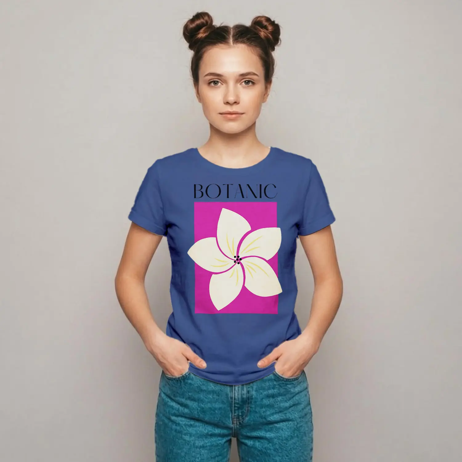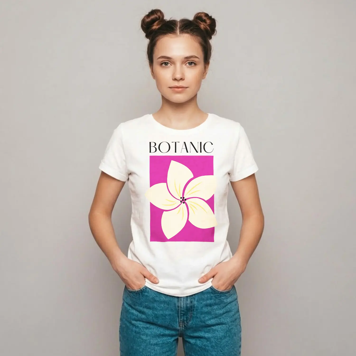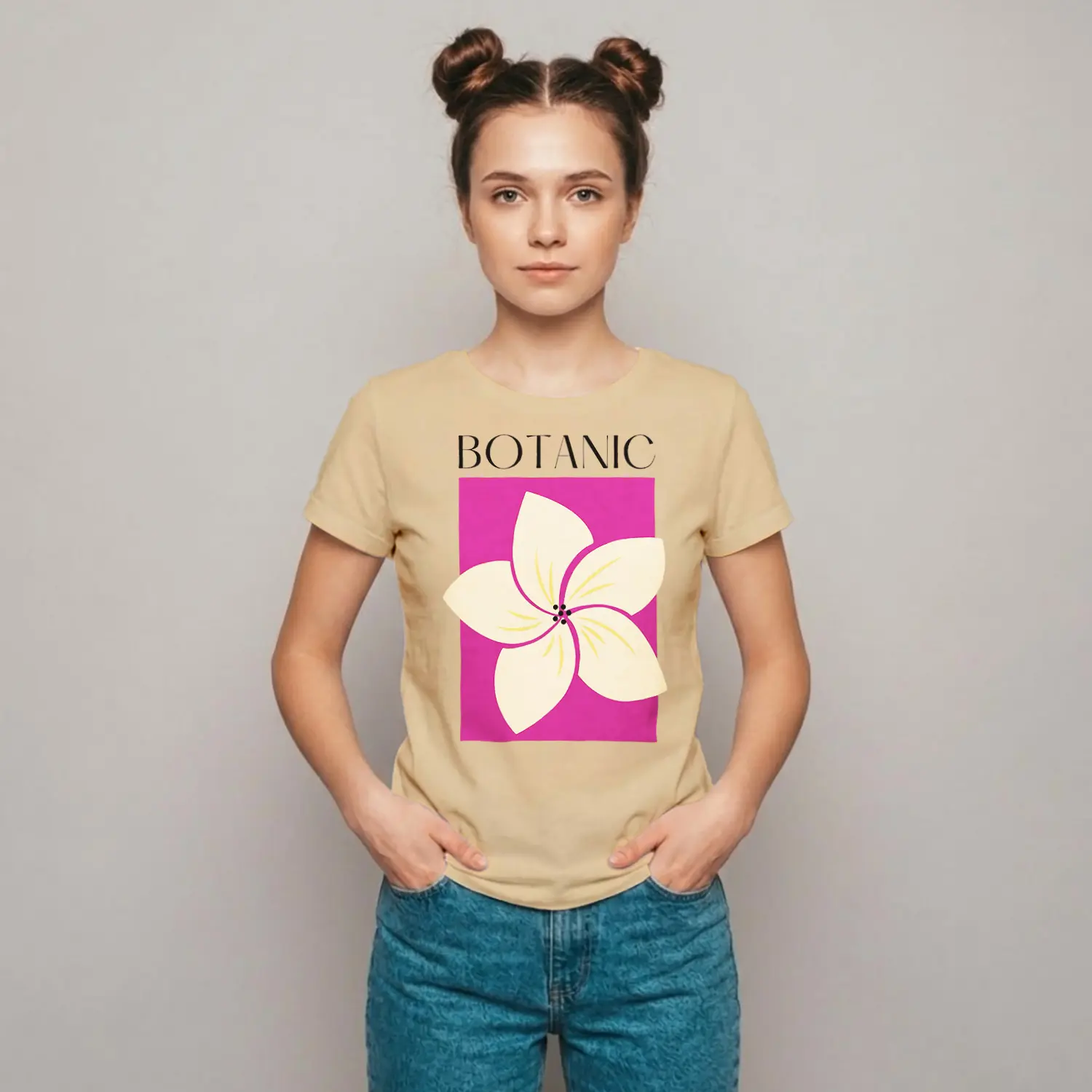 Sade Çiçek Desenli Botanik Baskılı Kadın Tişört
