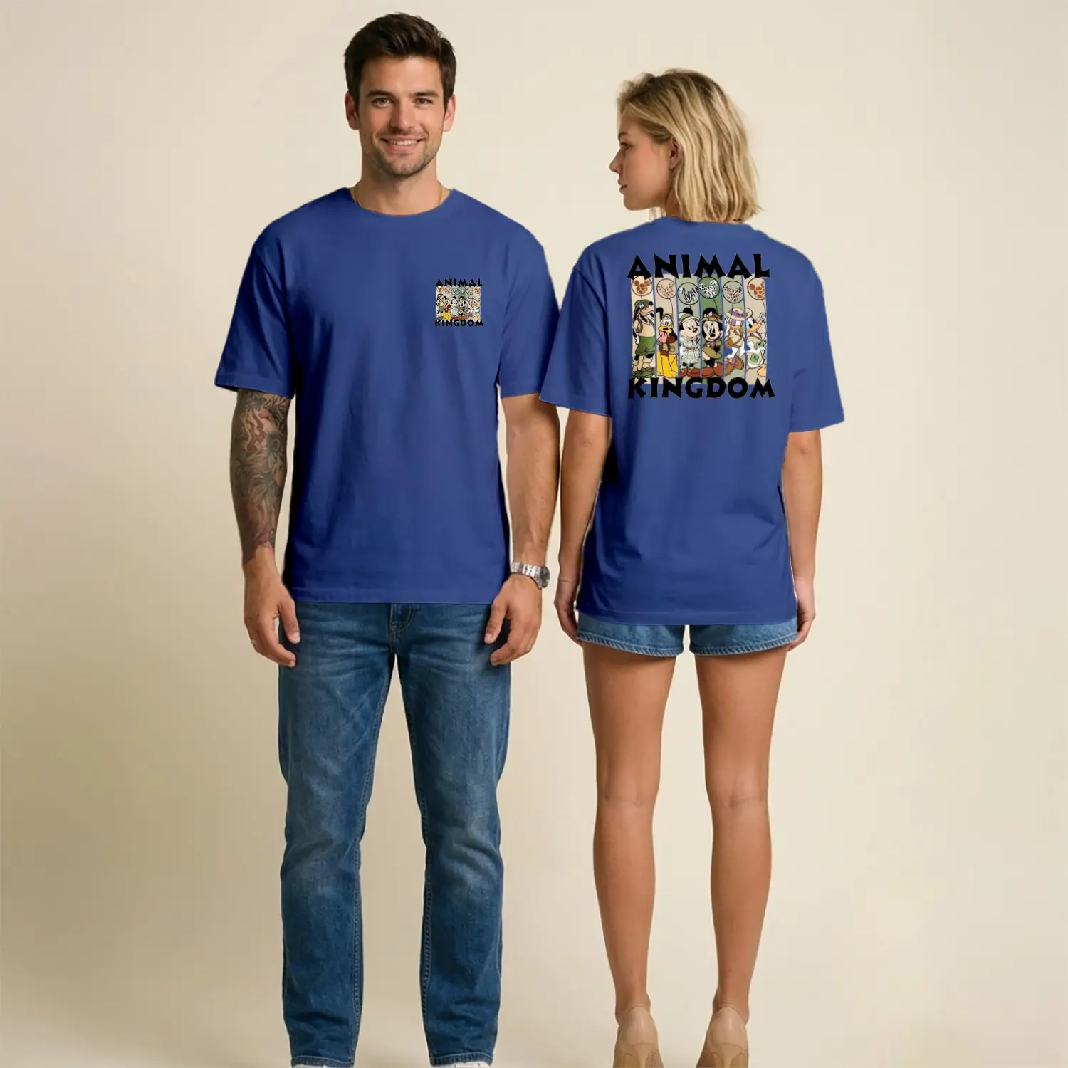 Safari Temalı Karikatur Karakterler Figürlü On Arka Baskılı Unisex Tişörtü