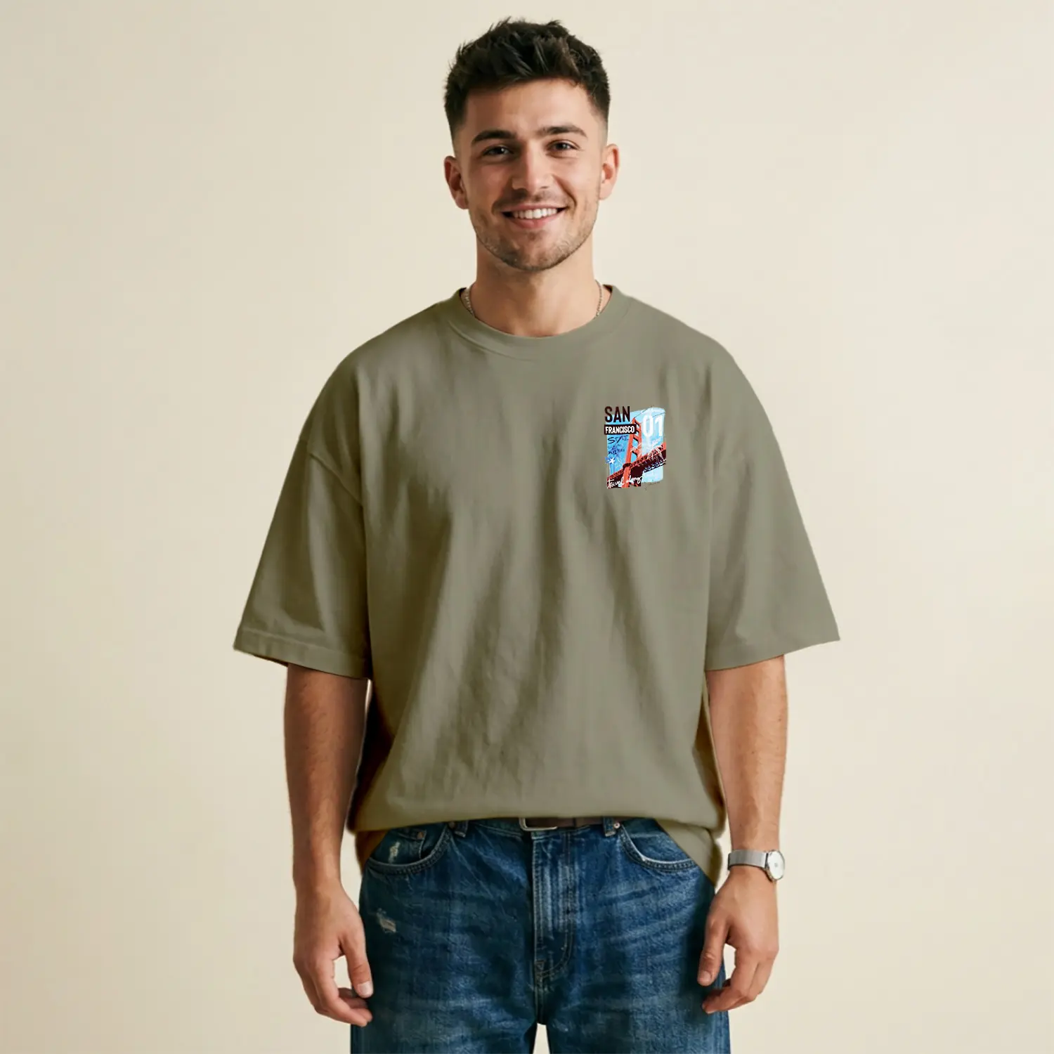 San Francisco Köprü Temalı Baskılı Erkek Tişört