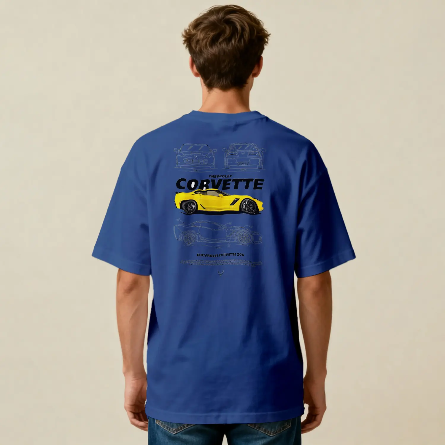 Sarı Spor Araba Grafik Baskılı Erkek Tişört