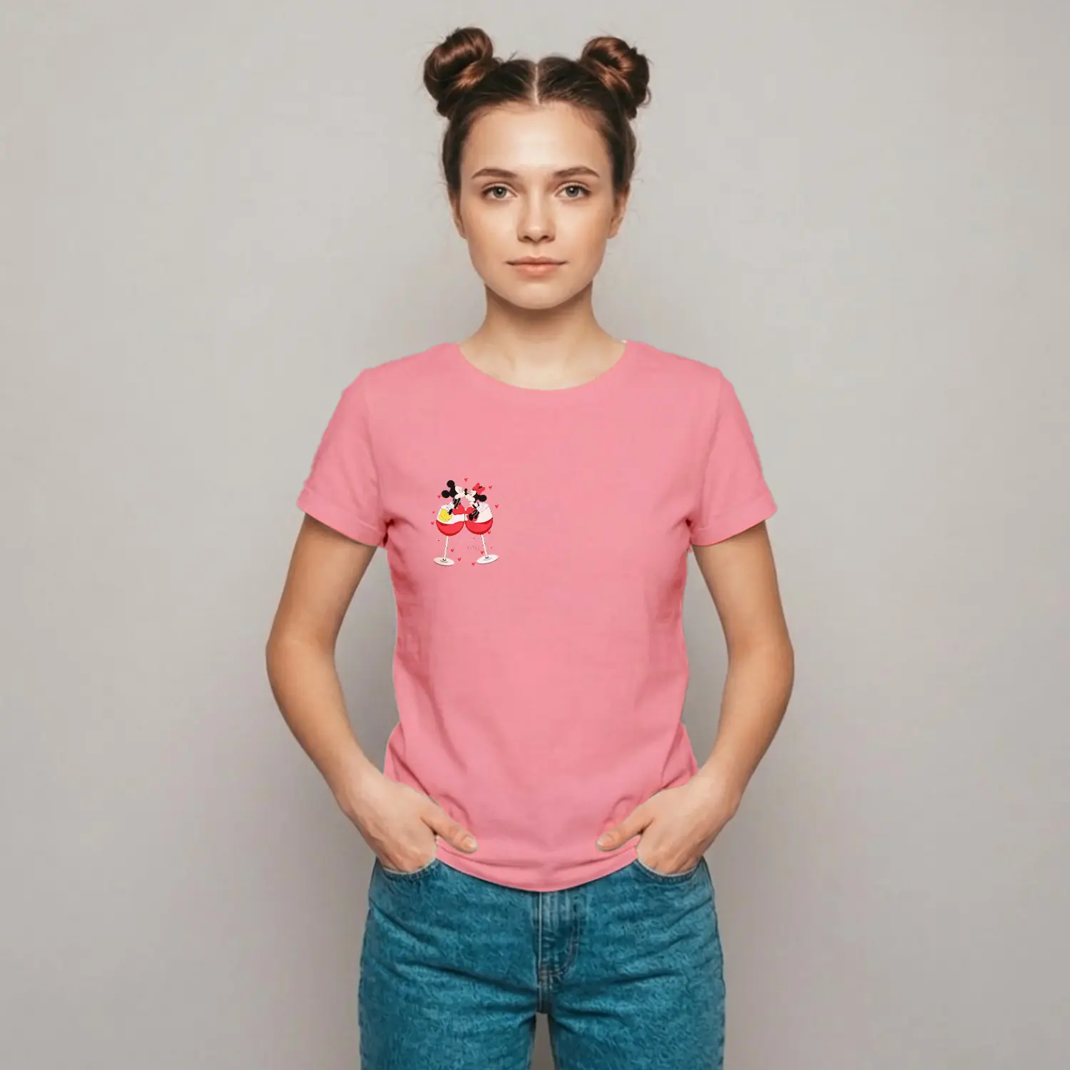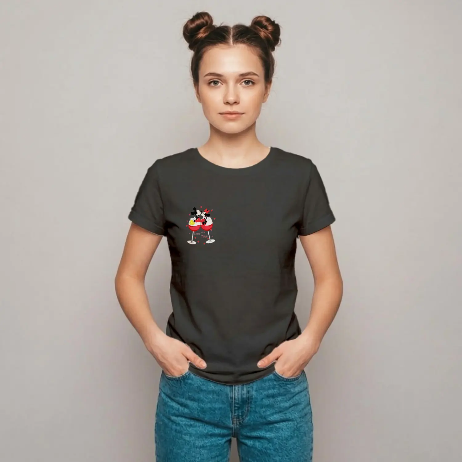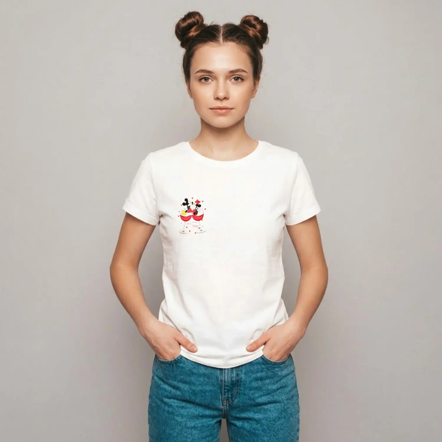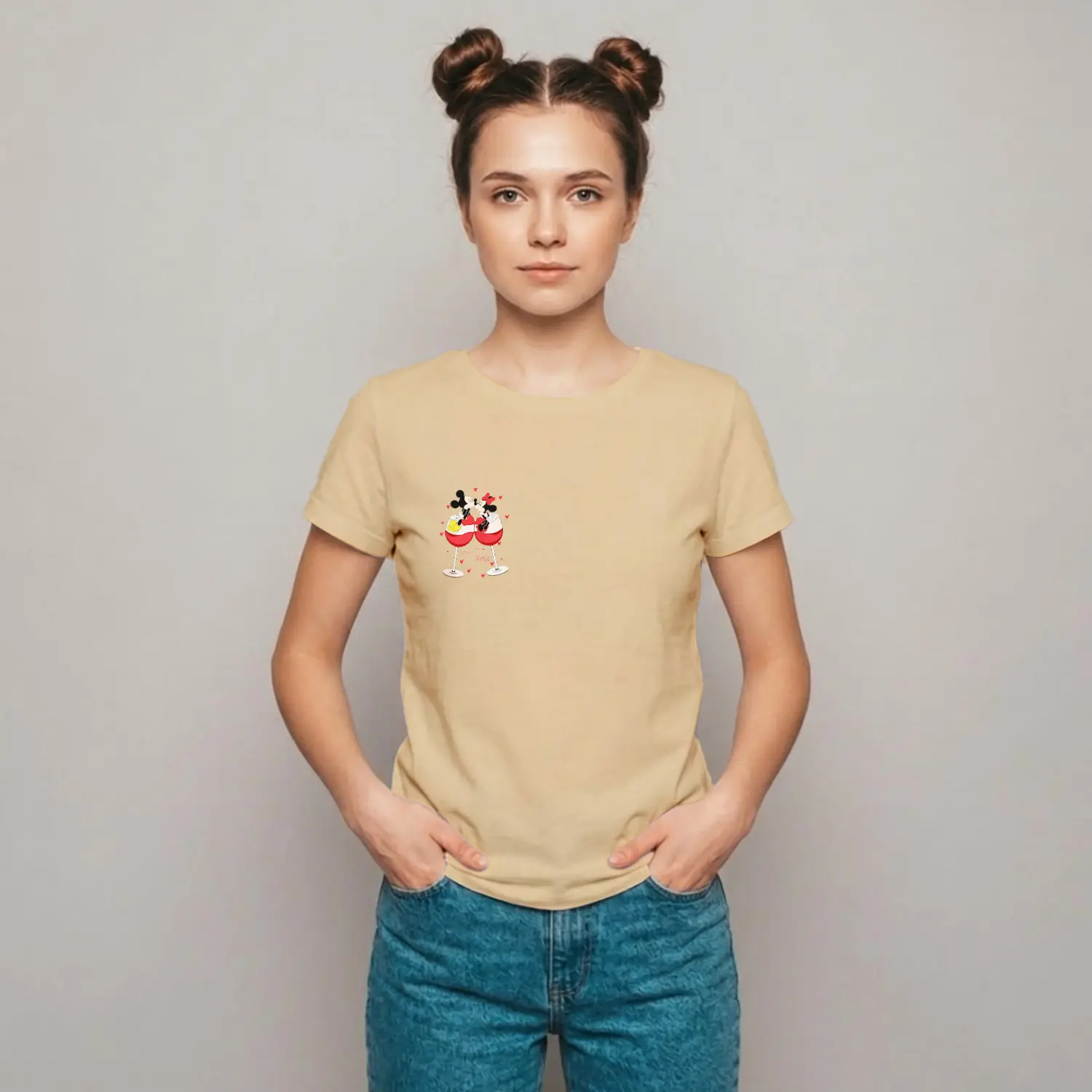 Sevimli Aşıklar Temalı Baskılı Kadın Tişört