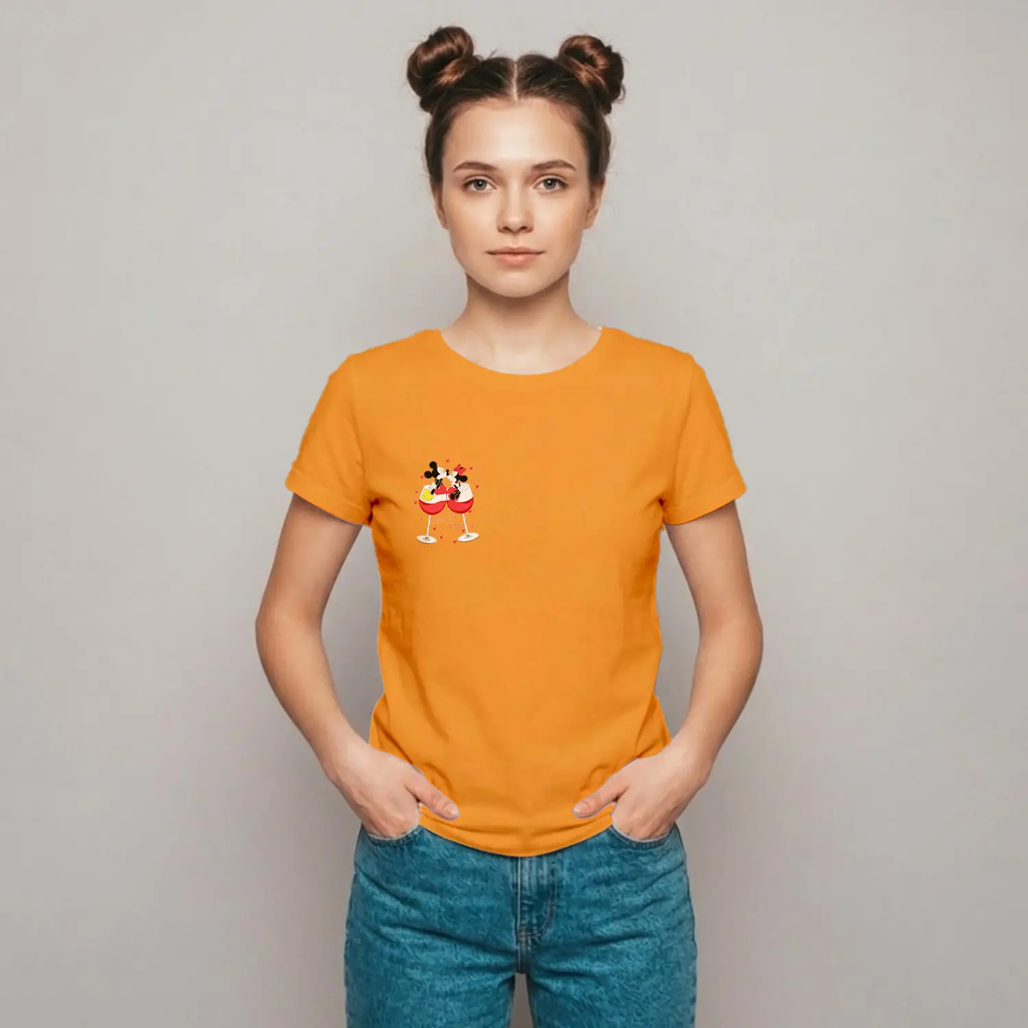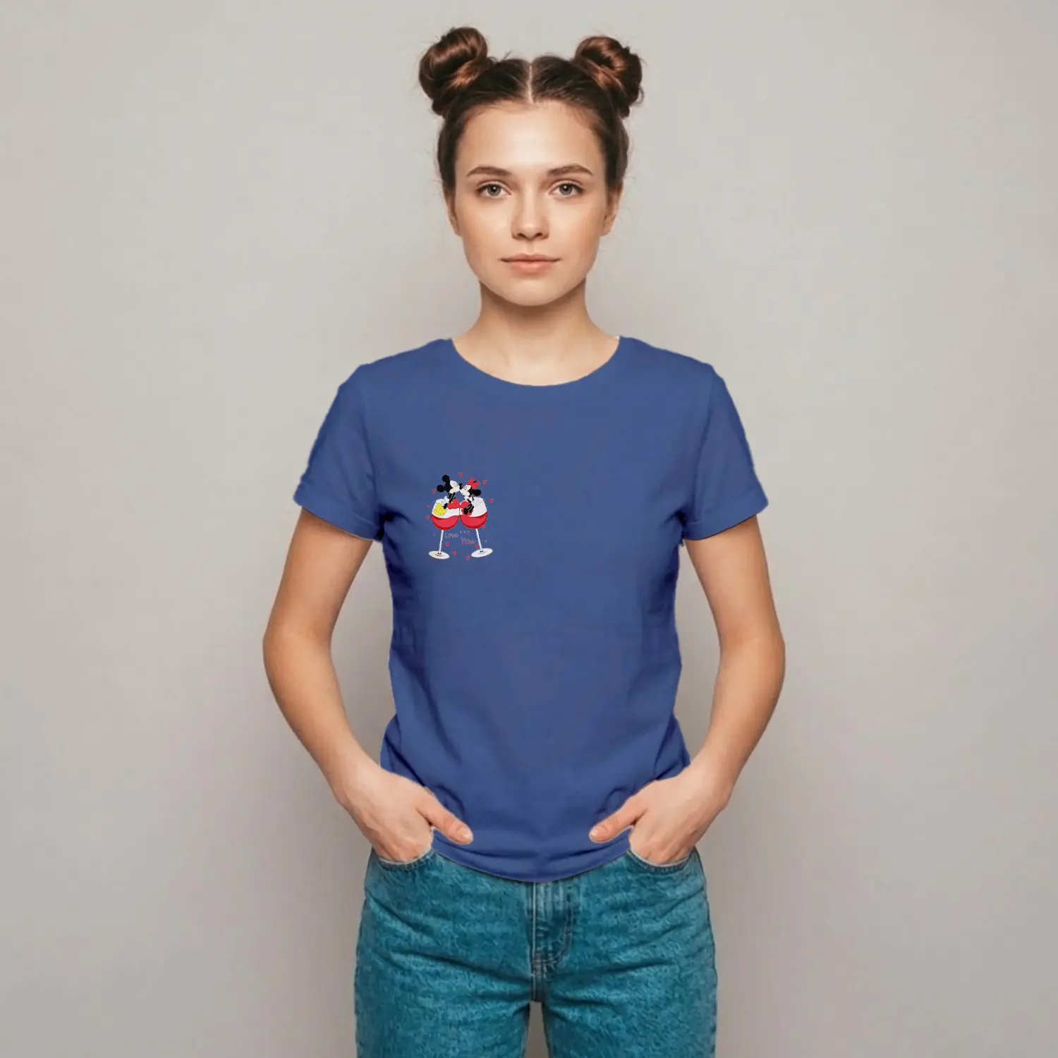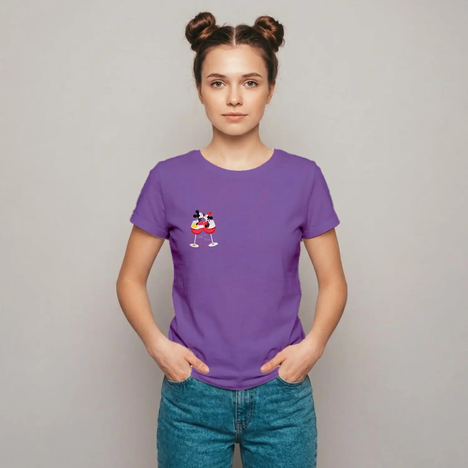 Sevimli Aşıklar Temalı Baskılı Kadın Tişört