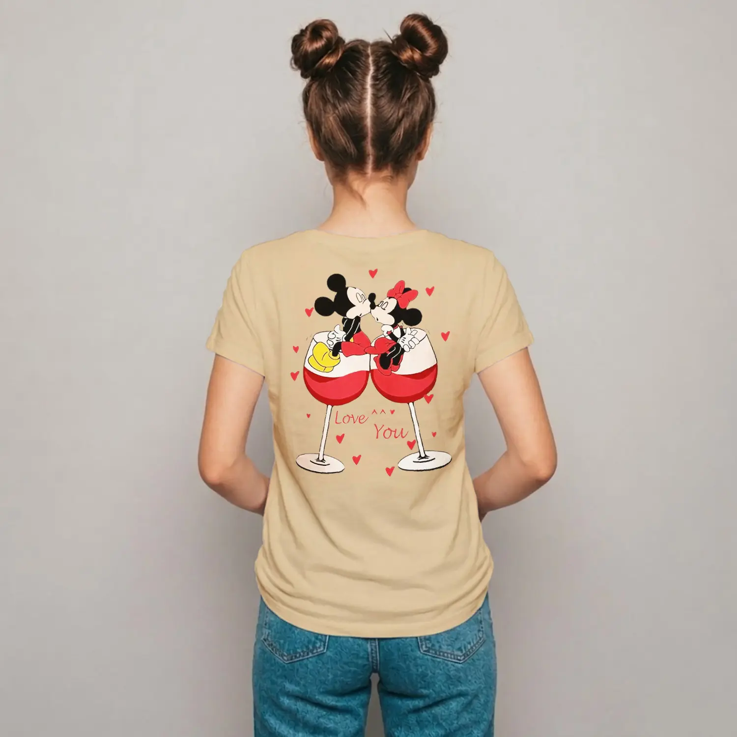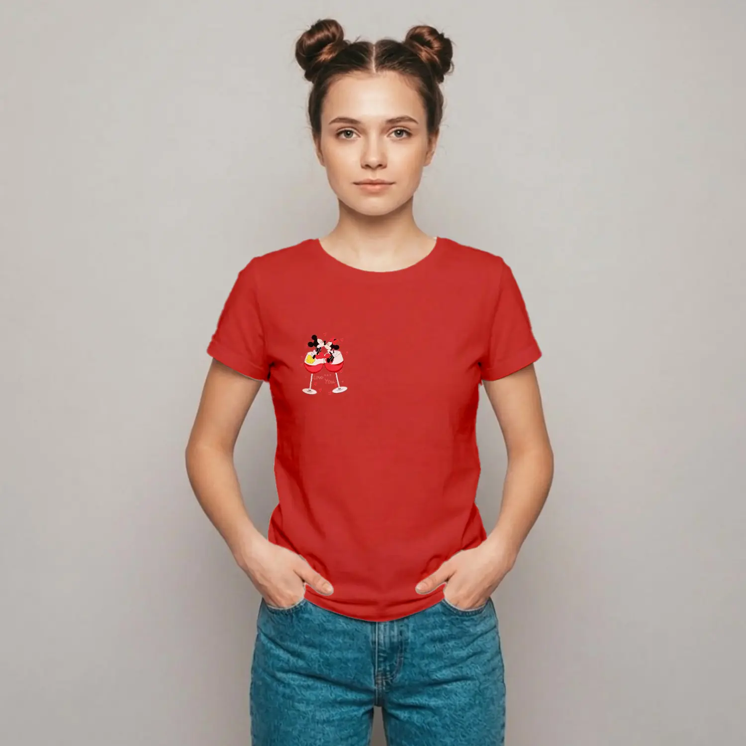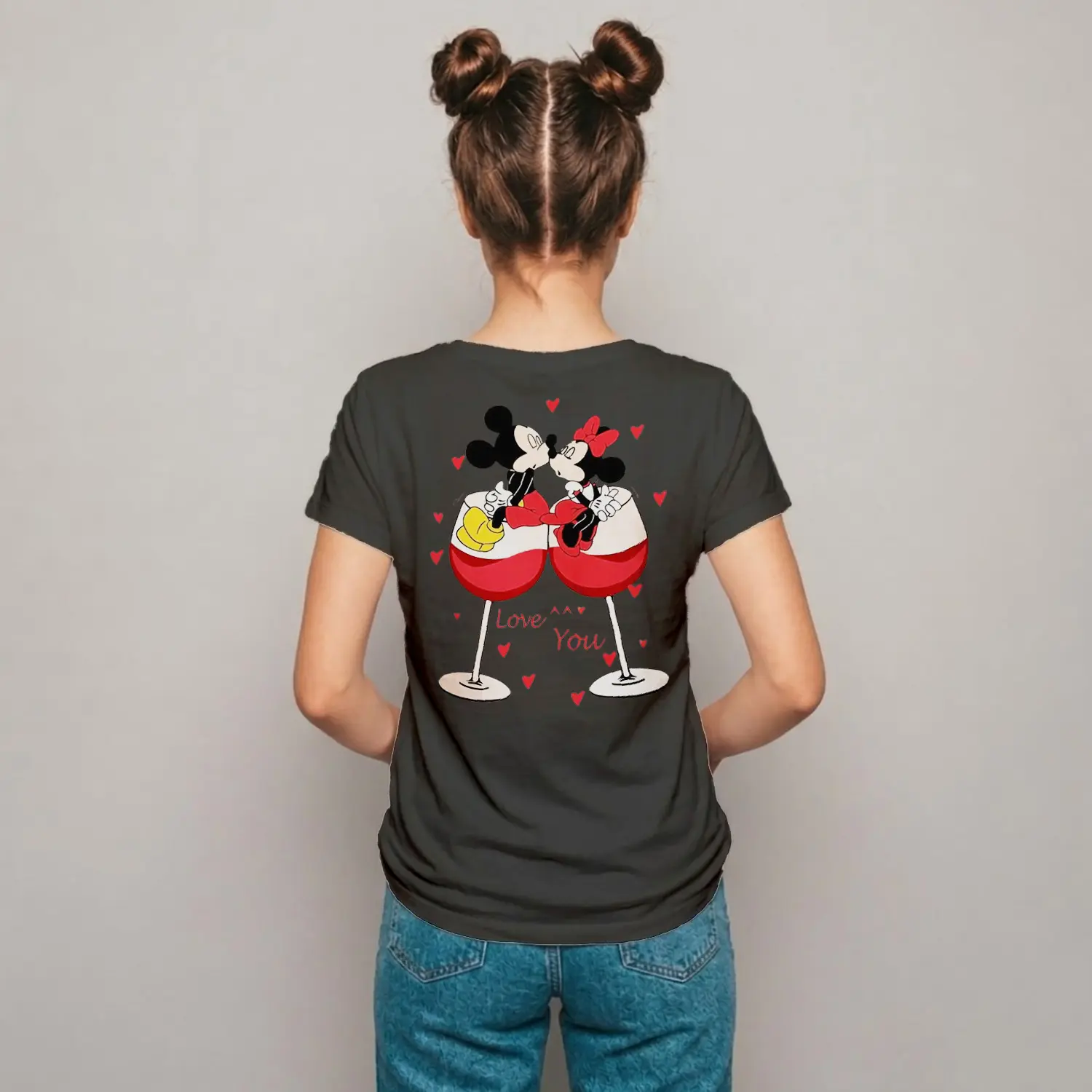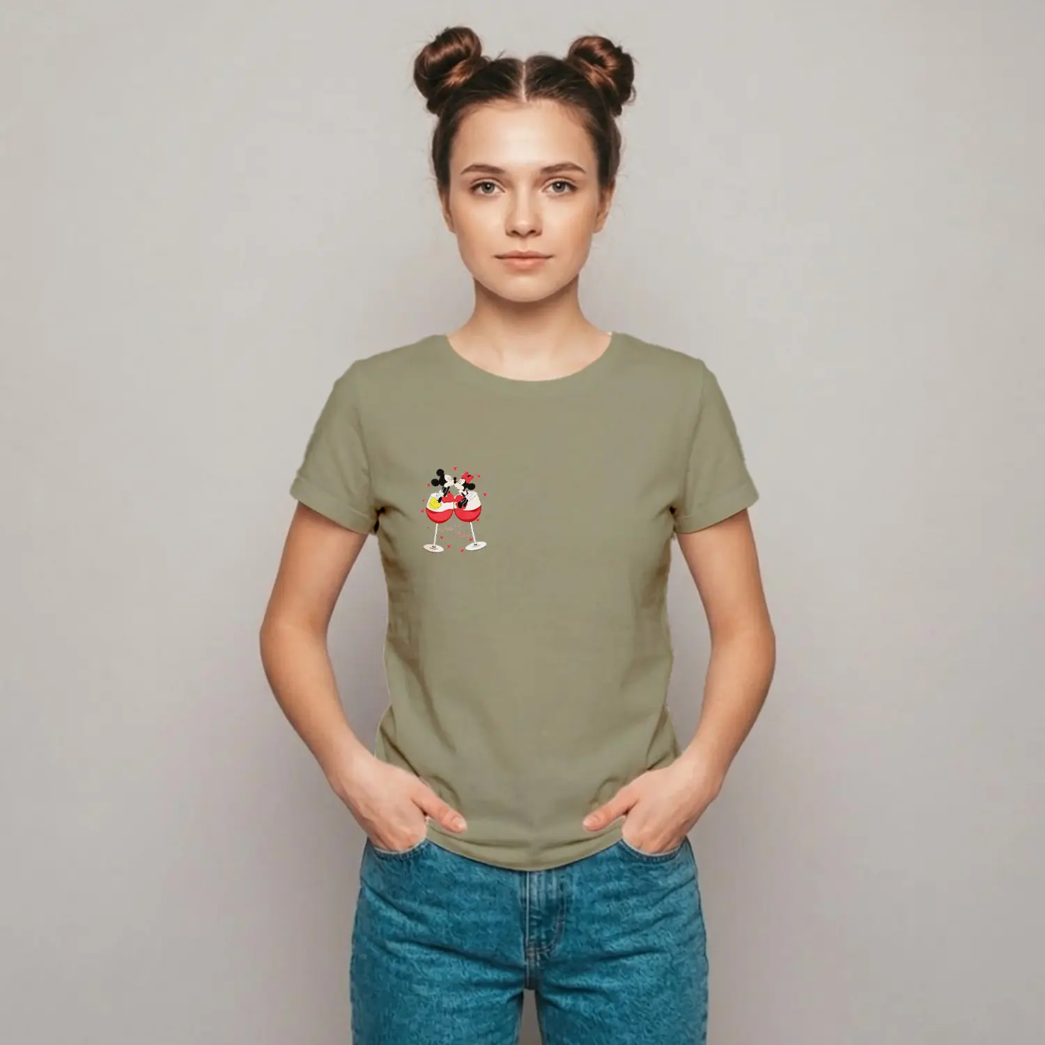 Sevimli Aşıklar Temalı Baskılı Kadın Tişört