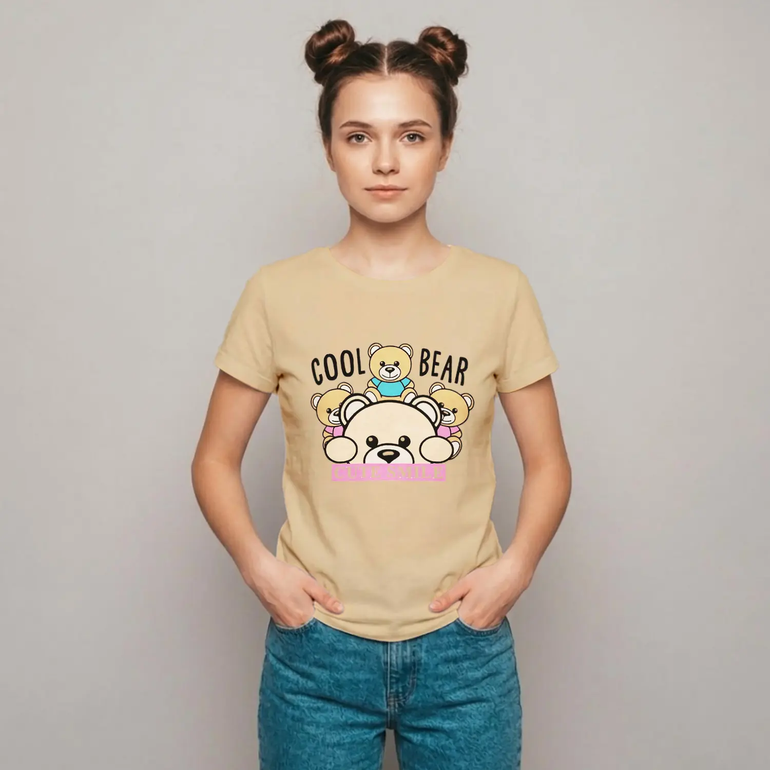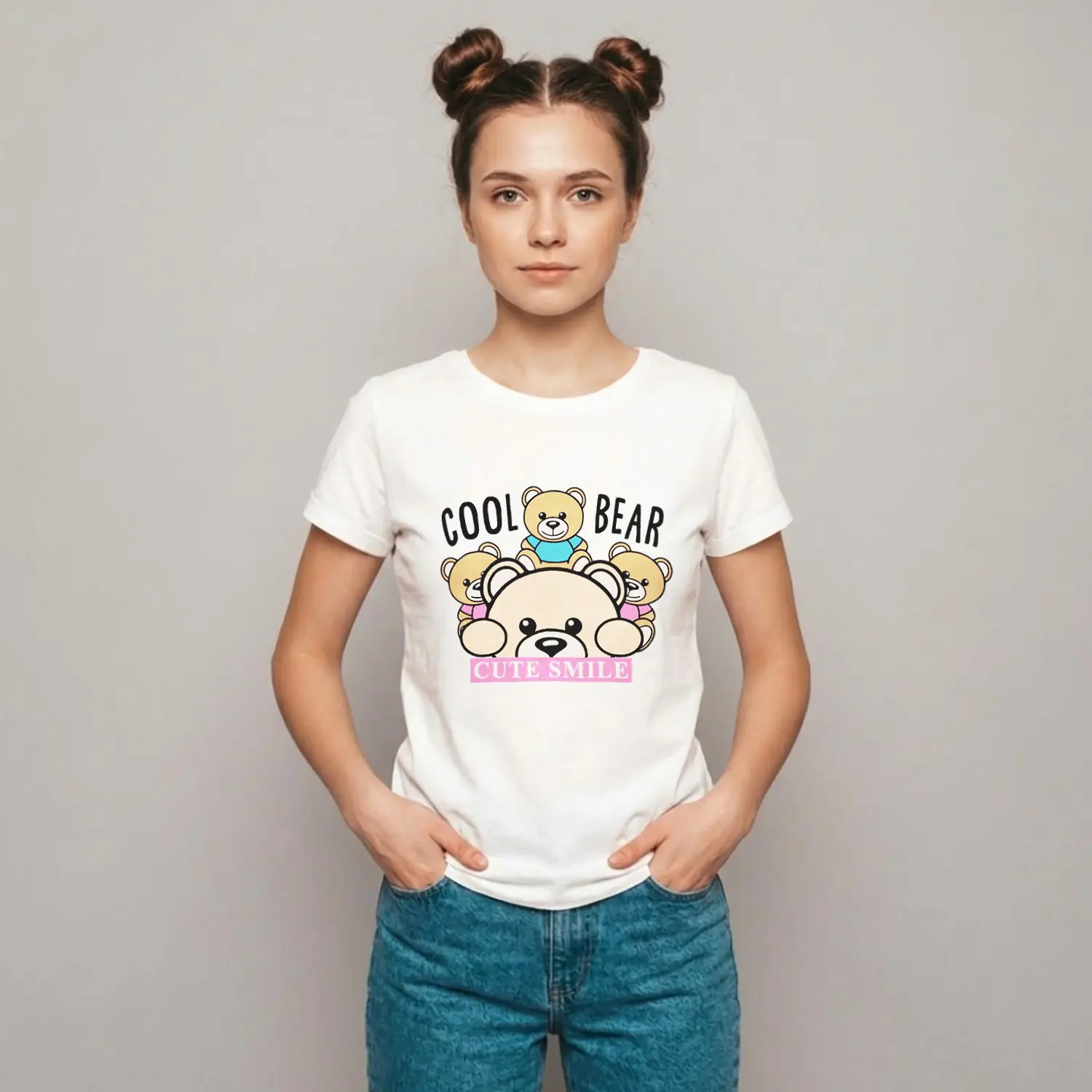 Sevimli Ayıcıklar Baskılı Kadın Tişört